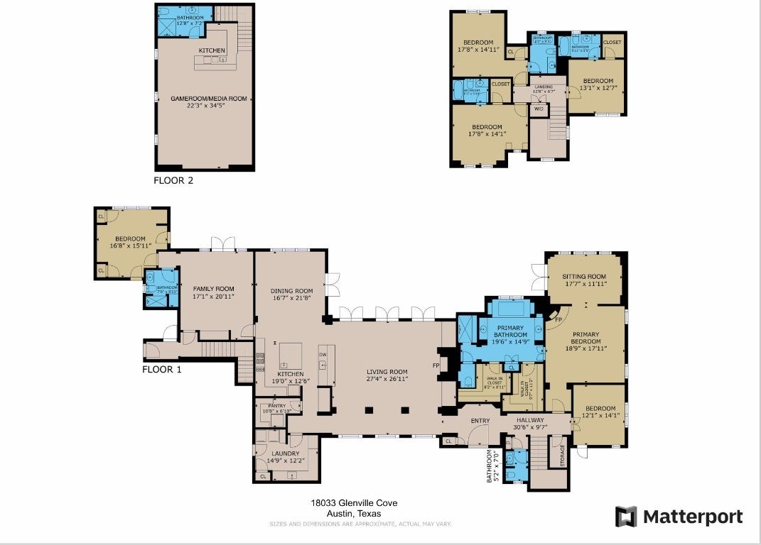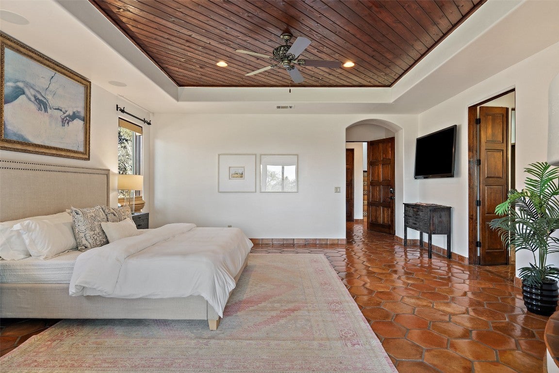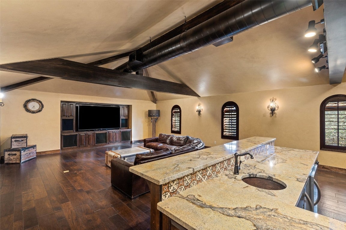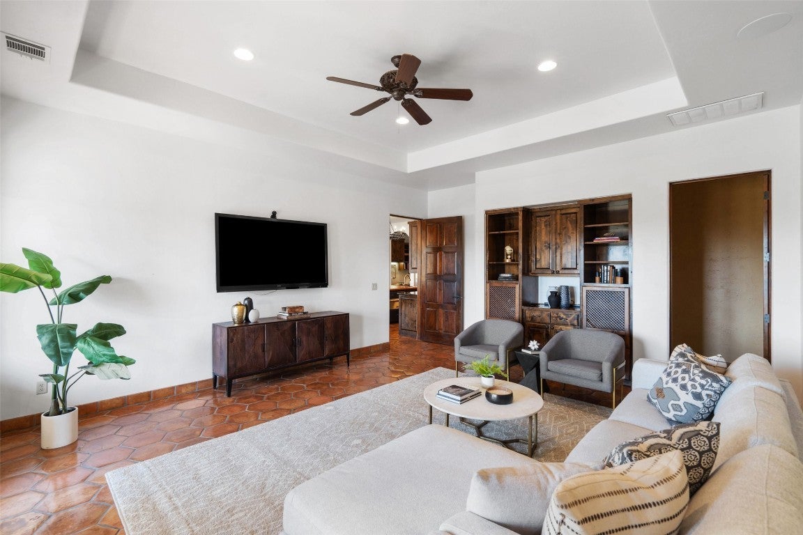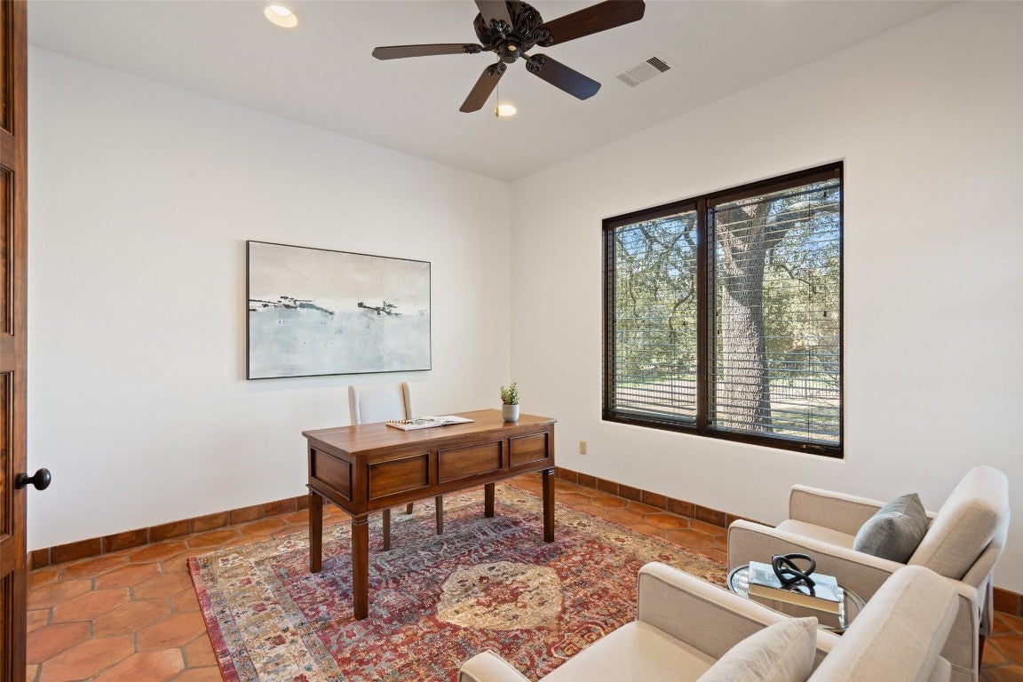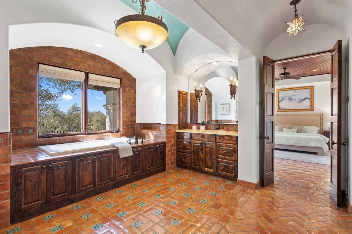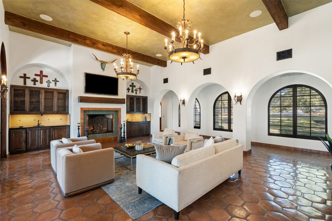 Substantial Price Improvement! Discover the epitome of luxury living in this stunning Santa Barbara-style estate, where every detail showcases exceptional craftsmanship. Elegant features such as knotty alder doors, custom tile work, and unique light fixtures highlight the thoughtful design throughout. The chef's kitchen is a culinary dream, equipped with Viking appliances, including a 48” cooktop, ice maker, warming drawer, built-in refrigerator, and a commercial-grade water treatment system. Enjoy the convenience of an oversized pantry, an additional refrigerator, a spacious utility room, and generous built-in cabinets. The dining room is a bright, inviting space, accentuated by picture windows and a wood tray ceiling. The primary bedroom is your personal retreat, with an adobe-style fireplace, wood tray ceiling, and an expansive sitting area featuring a hand-painted ceiling. The primary bathroom is completed with a jetted tub, dual vanities, walk-in shower, and two large walk-in closets. The main living area captivates with custom tile work around the fireplace, dual chandeliers, a wet bar, ice maker, beamed ceilings, and French doors opening to a covered patio. The additional family room on the lower level offers a built-in Captivate Audio entertainment system and a high-tech video security system. The upstairs media room features a kitchenette with ice maker and a full bathroom, great for entertaining. The upper-level wing includes three ensuite bedrooms, a study area, and a second washer/dryer set, while the lower-level guest room offers privacy with its own entrance and patio access. Outside, enjoy a private pool, sport court, playground, and firepit, creating a perfect outdoor sanctuary. This property is located in the acclaimed Lake Travis ISD school district and has a low tax rate of 1.76%. The community amenities include a lazy river pool, splash pad, fishing pond, 80 acre nature preserve, playscape, sport court, community center, and social events.
