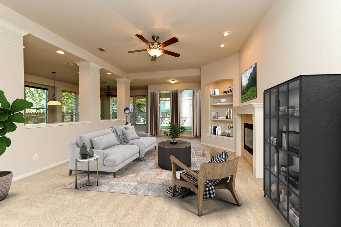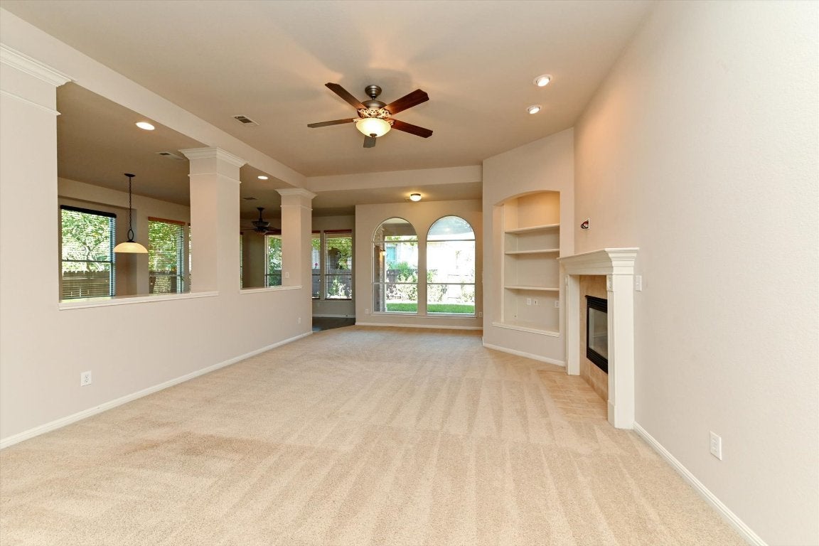Charming One-Story in The Preserve at Westside Buttercup Creek Welcome to this well-maintained, one-owner David Weekley “Fisher” floorplan, nestled in the highly sought-after Preserve at Westside Buttercup Creek. Just steps from Westside Elementary, this beautiful home is also close to two Owners’ Association pools, hike-and-bike trails, and cave preserve areas, making it ideal for nature lovers and active lifestyles. This thoughtfully designed one-story layout offers 3 bedrooms with an option for 4th bedroom conversion of the flex room, a dedicated separate office with French Doors, and a formal dining room highlighted by graceful arched brick columns that add a touch of Mediterranean elegance. A butler’s pantry connects the dining room to the open-concept gourmet kitchen, which boasts extensive cabinetry and overlooks the spacious main living area—perfect for entertaining. A central flex/game room separates the secondary bedrooms, creating a versatile space for work, play, or relaxation. The Fisher Plan also includes an option for an upstairs bonus room or fourth bedroom if expansion is desired. Enjoy the outdoors year-round on the large covered patio, and take advantage of the oversized garage with a bonus storage nook—great for a workshop or extra organization. Situated in an established community featuring a community pool and play area, and extra bonus is this is near the new Bell District and Cedar Park Library, this home combines modern comfort with access to Cedar Park’s best amenities. A true gem ready for move-in!