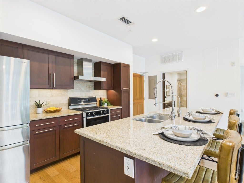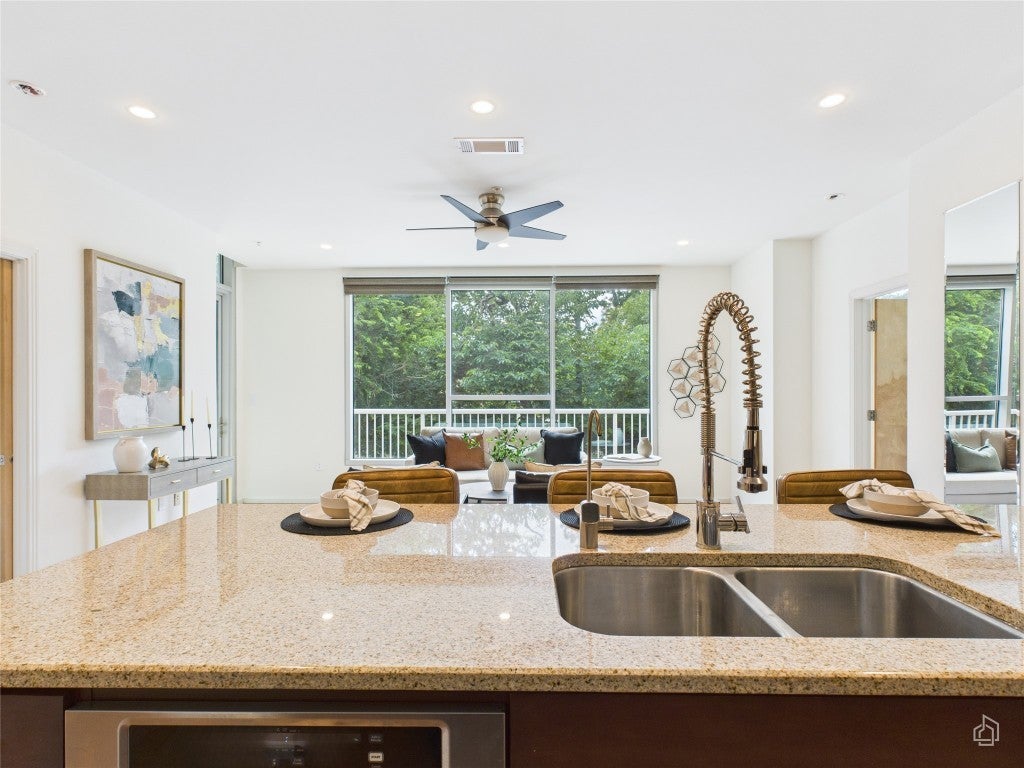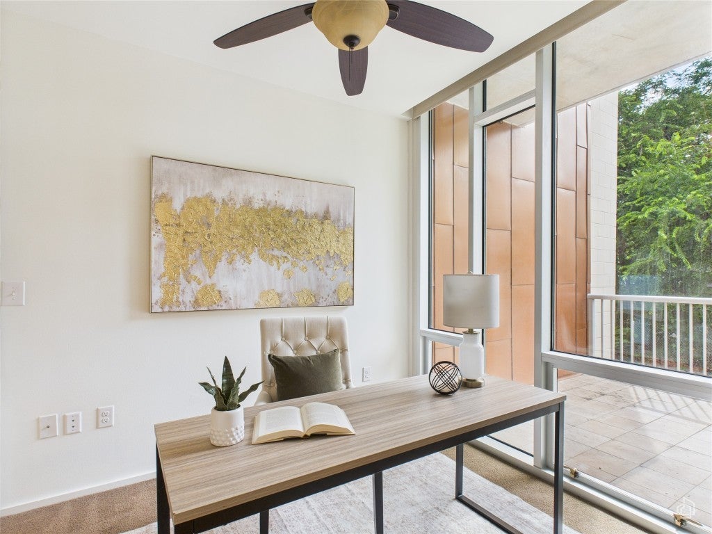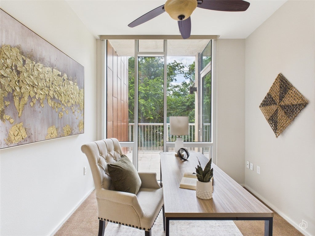Experience elevated Austin living just steps from Barton Springs, Zilker Park, and Town Lake. This beautifully appointed 2-bedroom, 2-bath residence offers the perfect blend of function, comfort, and walkable convenience in one of Austin’s most sought-after communities—BartonPlace. Positioned for effortless access to Barton Springs and Lou’s, this unit enjoys an abundance of natural light and a smart, open layout designed for both relaxation and entertaining. The kitchen features custom storage organization, a gas range, and modern finishes that flow seamlessly into the living and dining areas. Step outside to enjoy your rare double balcony—a unique feature in the community—complete with a true storage closet, perfect for everyday essentials or outdoor gear. The spacious primary suite includes a soaking tub, walk-in shower, and a large vanity with ample storage. A second bedroom and full bath offer flexibility for guests, work-from-home, or additional living space. For added convenience, this home includes two reserved parking spaces located just steps from the elevator, along with a dedicated storage unit near the parking area—ideal for bikes, seasonal items, or bulky belongings. As a resident of BartonPlace, you’ll enjoy resort-style amenities including a heated saltwater pool, four rooftop terraces with grilling areas, a fitness gym, dog run, community garden, guest suite, and an owner’s lounge with kitchenette—all within a secure, gated community with attentive 24-hour concierge service. Whether you're looking for a lock-and-leave lifestyle or a vibrant city home with seamless access to nature and nightlife, this condo offers the best of both worlds.