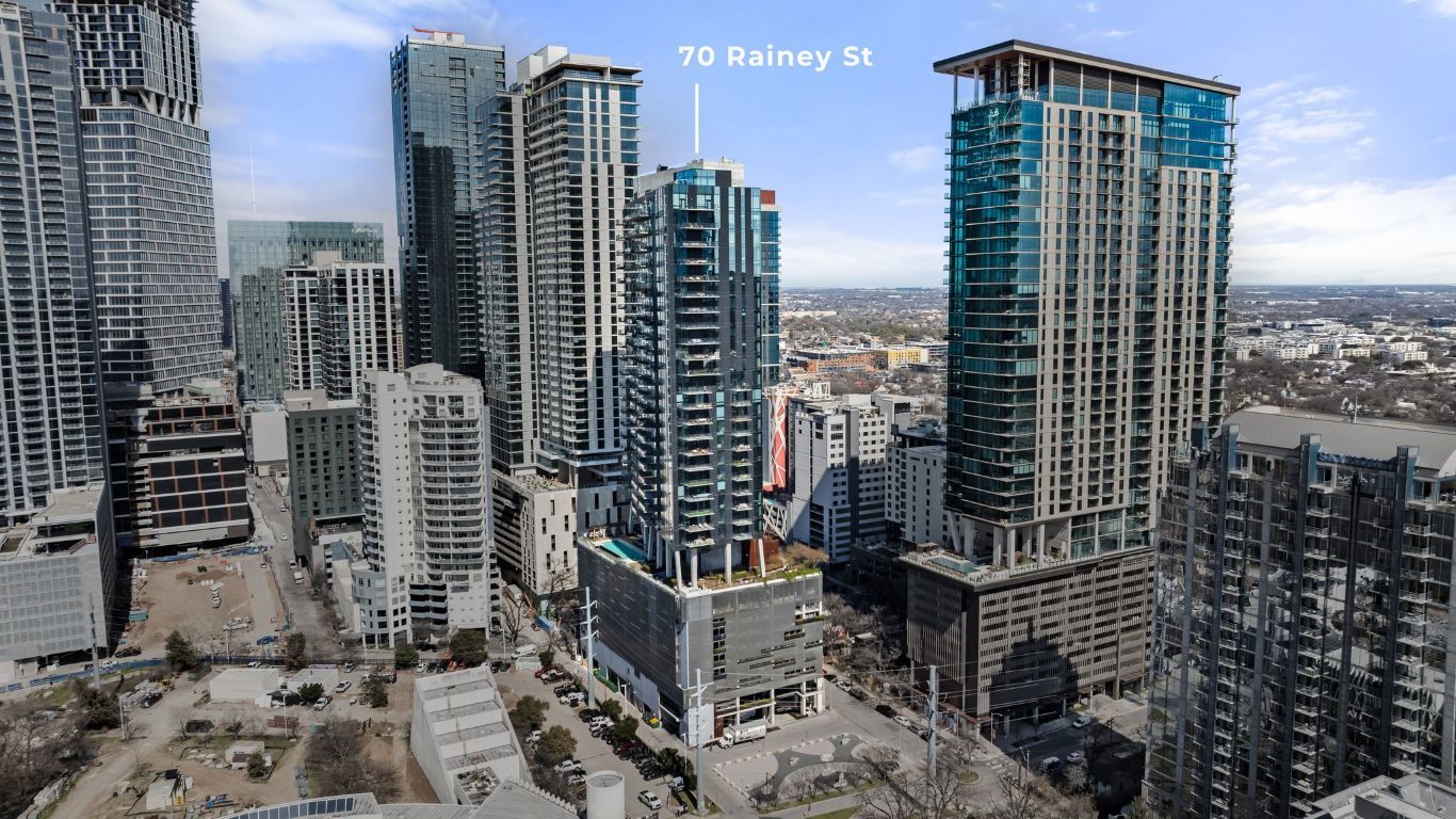 Perched on the 26th floor of one of Austin’s most prestigious high-rises, this fully furnished 3-bedroom, 3-bath residence spans 2,179 square feet and offers sweeping, unobstructed views of Lady Bird Lake and downtown Austin. Designed by Mark Zeff and developed by Sackman Enterprises, 70 Rainey is a statement in modern luxury—where design, location, and lifestyle converge. Inside, wide-plank European oak floors and floor-to-ceiling windows create a warm, sunlit space with clean lines and timeless appeal. The expansive and open living space invites connection, while the bedrooms are thoughtfully tucked away—offering a quiet escape from the social heart of the home. The kitchen features sleek black cabinetry, Miele appliances, and quartz countertops—perfect for entertaining or quiet evenings at home. Remote-controlled solar shades offer privacy and shade at the touch of a button, while a private balcony invites you to take in the skyline with morning coffee or an evening glass of wine. Beyond the residence itself, 70 Rainey offers 31,000+ square feet of resort-style amenities: a 72-foot infinity pool with downtown and lake views, a state-of-the-art fitness center with saunas and a cold plunge, poolside cabanas, fire pits, and an outdoor kitchen for sunset BBQs. This unit comes with two reserved garage parking spaces. With 24/7 concierge service and direct access to the Hike & Bike Trail, this is elevated Austin living—right in the heart of the city.