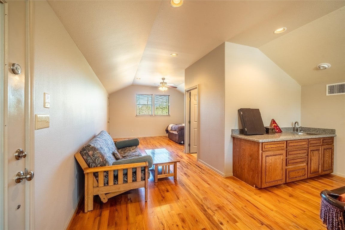 Welcome to your serene Hill Country escape! Nestled among beautiful, mature oak trees, this unique property includes three adjoining lots, offering over one acre of peaceful, scenic land just 20 minutes from Marble Falls. 4 LOTS totally ONE acre with the house AND two sheds!! The 3-bedroom, 3-bathroom home boasts a thoughtful layout with a private primary suite separate from the secondary bedrooms. The open-concept kitchen and living area creates a bright, spacious environment perfect for entertaining or relaxing with family. Enjoy the versatility of the garage that opens on both sides, seamlessly connecting to a wraparound porch—ideal for outdoor living. Upstairs, a private third bedroom features its own wet bar and plenty of space for a game room with a pool table, foosball, or more. Additional highlights include: Two storage sheds, a durable metal roof, sealed concrete flooring throughout, private neighborhood lake access and a peaceful setting with native oak trees. This property offers the best of Hill Country living—space, privacy, and natural beauty, with modern touches and community amenities. Whether you're looking for a primary residence, vacation home, or investment, this one-of-a-kind property is ready to welcome you home. New HVAC unit installed 2025. Three adjoining lots are being sold with this property (MLS #s: 1630504, 6629826, 9466864) which bring the total lot to 1 acre! 20 minutes from Marble Falls, 1 hour from Downtown Austin. Don’t miss your chance to own this Hill Country gem!