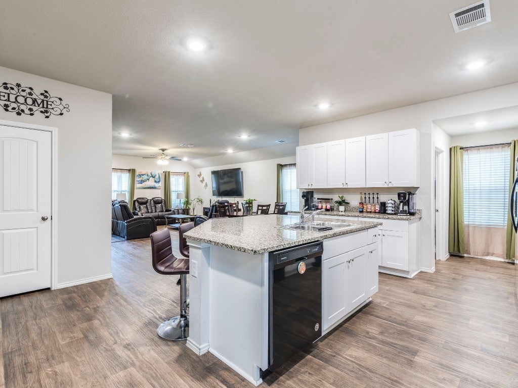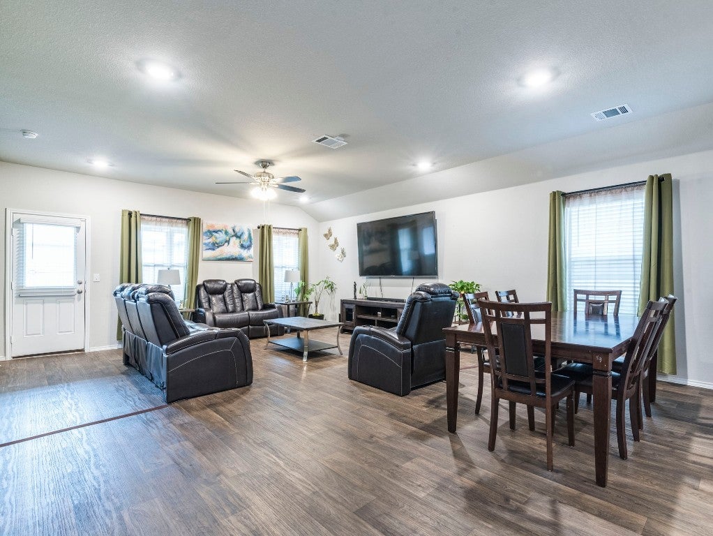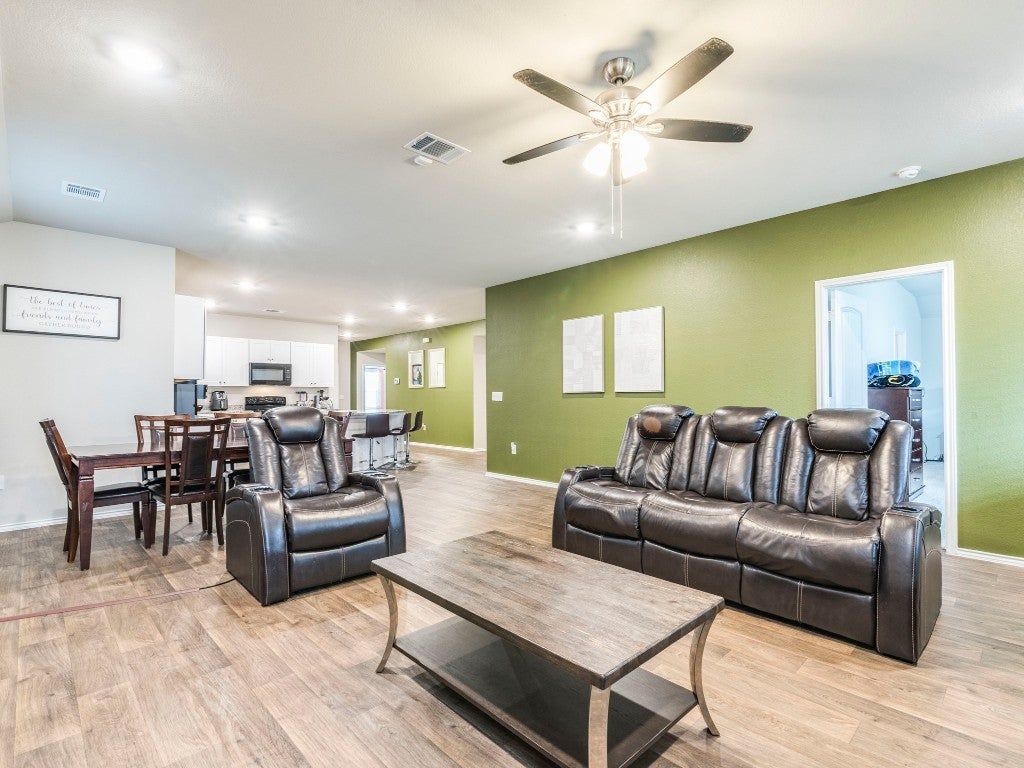Behold! 6100 Brampton LN, Austin, TX 78724 calls to you with the promise of Texas sunshine and effortless living, minutes from Tesla, and ready for a new chapter! The open and airy floor plan provides a canvas for your unique style, allowing you to create a space that truly reflects your personality. The kitchen is ready for you to unleash your inner chef, boasting granite countertops that offer both beauty and durability, and an oversized kitchen island that's just begging for you to gather around. A kitchen bar ensures that there's always a place for people to hang out. The owner's ensuite bathroom features a walk in shower and plenty of storage. With four bedrooms and two full bathrooms, this single-family residence provides plenty of room to stretch out and unwind. The fenced backyard offers a private outdoor retreat, while the patio invites you to relax and soak up the Texas sunshine and cook up some Texas BBQ. The two car garage and long driveway protect is perfect for more than 2 vehicles. Built in 2020, this single-story treasure offers a harmonious blend of modern convenience and timeless charm. Minutes from Major roads/tolls, shopping, Tesla, and the airport. You don't want to miss this lovely well maintained home!