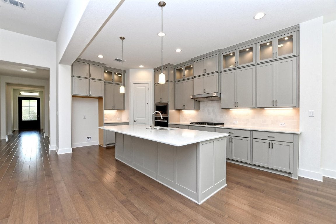 New construction home in The Hollows on Lake Travis. 3% flex incentive! You could afford up to $75,000 more home than if you bought a resale—without raising your monthly payment. That means more space, more upgrades, and more of what you love. Call sales consultant for details. 3,038 square foot, 1 story home with 4 bedrooms, 4 baths, study and 3-car garage like model home. Wood flooring in main living areas. Kitchen with center island, quartz countertops, propane cooktop. Kitchen open to great room with corner fireplace and dining space. Primary bedroom with en-suite, huge walk-in closet, double vanity, separate shower with rainhead faucet. Study with French doors. Each secondary bathroom with full bath. Large covered back patio.