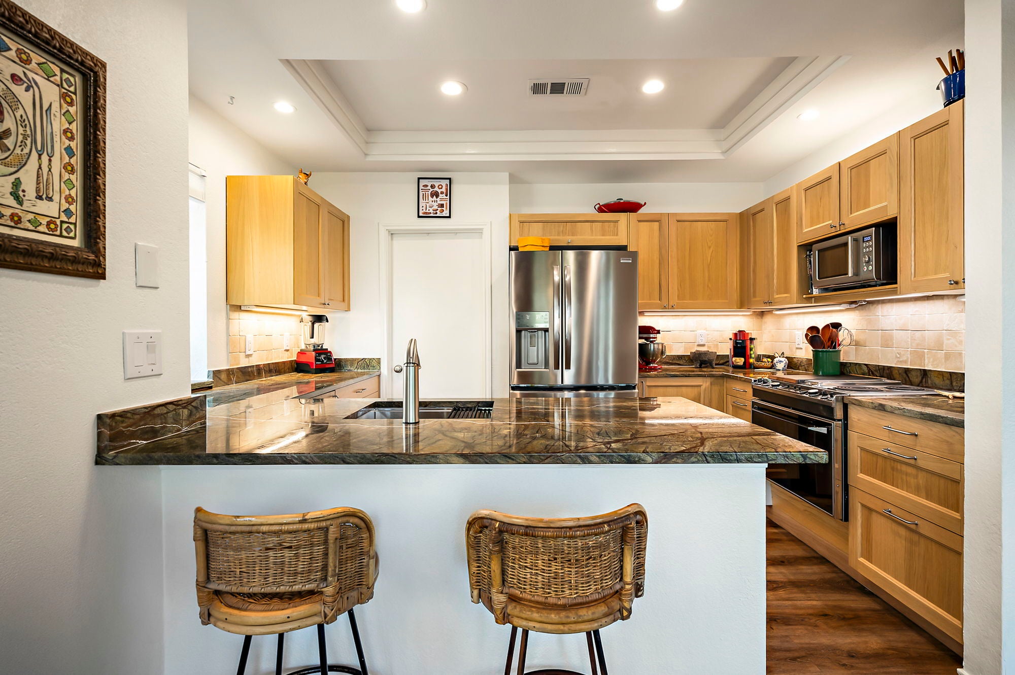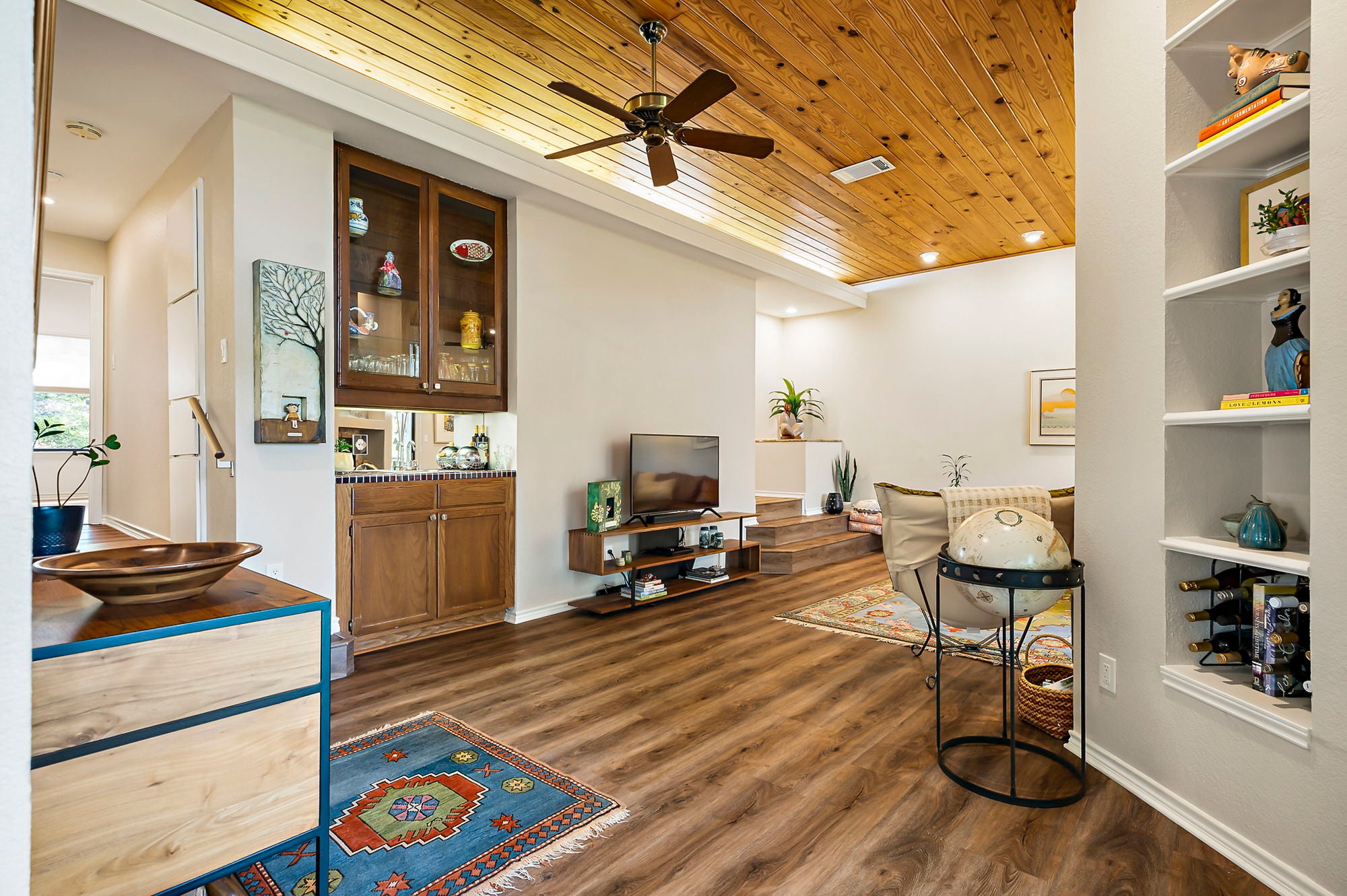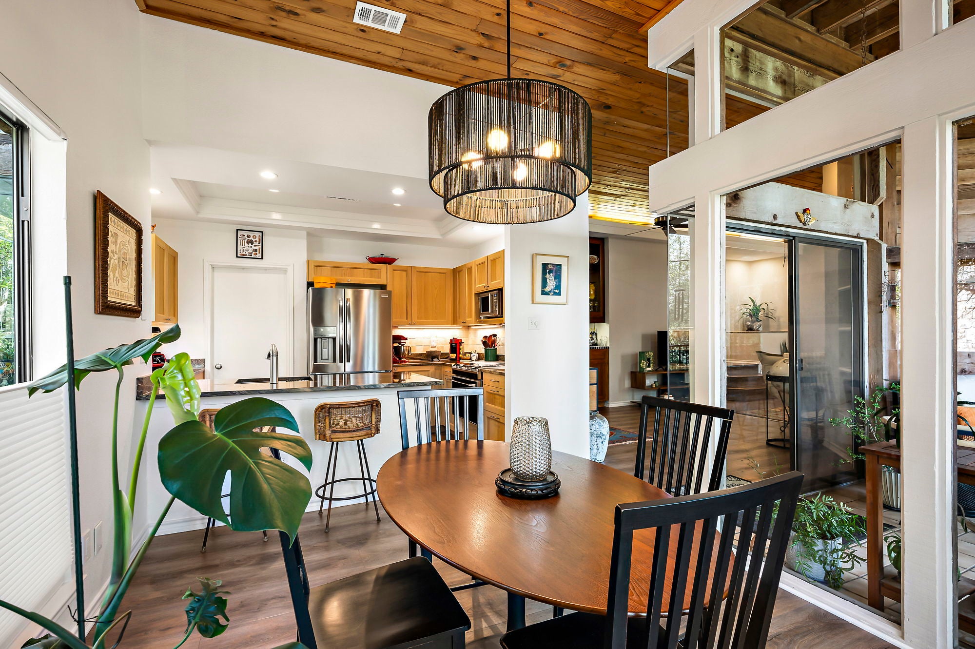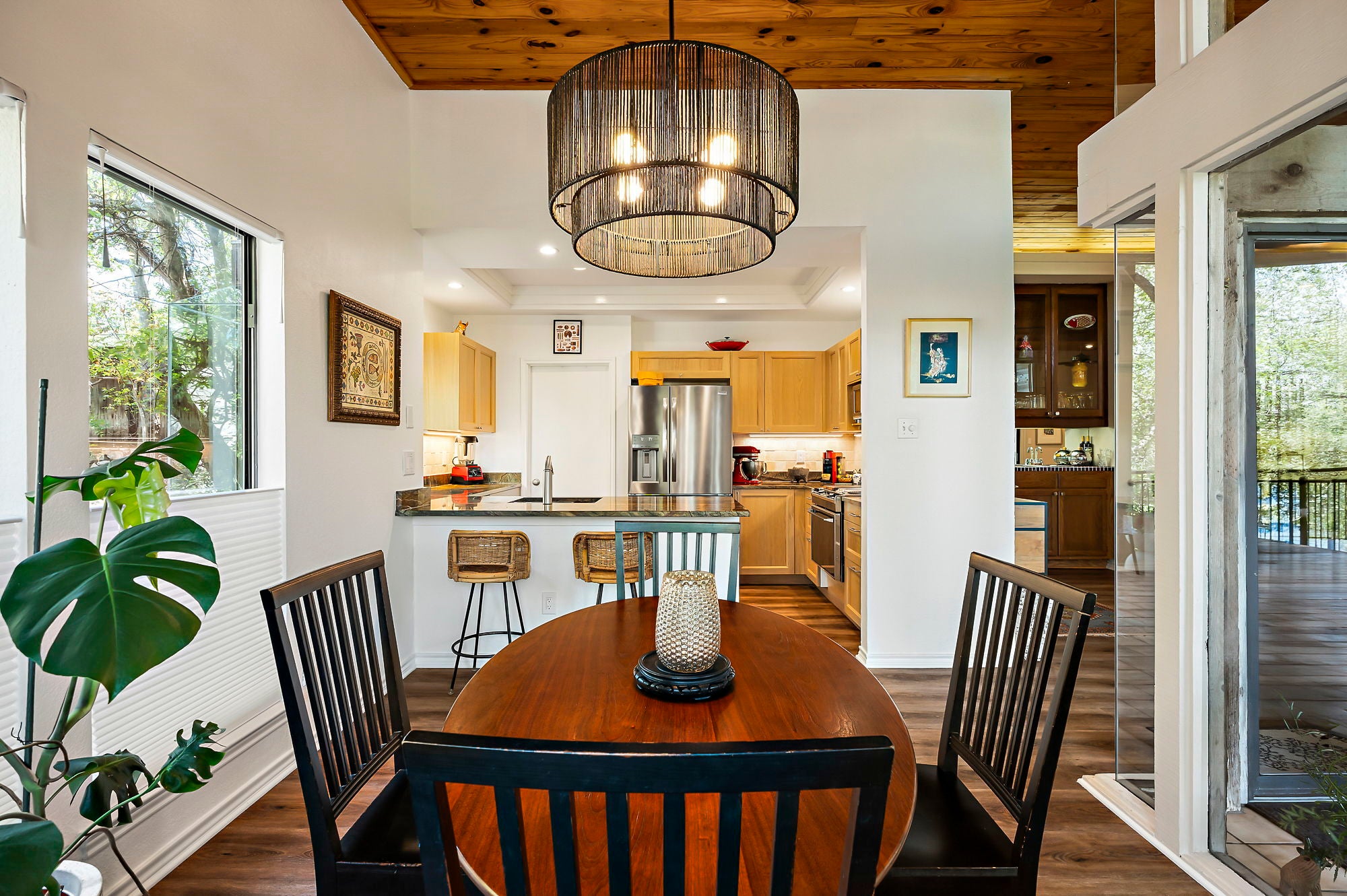 Ask about seller incentive to cover HOA fees for 12-months! Live tucked into the trees in one of Northwest Austin’s most peaceful hidden-gem communities—just minutes from everything that makes Austin life easy. This beautifully updated lower-level condo offers the rare combination of privacy, canyon-side tranquility and unbeatable access to dining, shopping, and Austin’s major employers. With entrances off both Steck Ave and Spicewood Springs, you’re ideally positioned. Community features two pools, a clubhouse, and just outside of the community you can access Steck Valley Greenbelt walking/hiking trails. Less than .05 mile to Azul Tequila, Galaxy Cafe, Troy & more. Just 2 miles to H-E-B, Arboretum, The Domain and Far West shops, with easy access to MoPac, 183, and 360. Nestled into a limestone canyon surrounded by mature trees, preserving the natural beauty that makes this community so distinctive. West-facing windows frame expansive canyon views and fill the living space with natural light. Wood-plank ceilings, vinyl plank flooring, and a wood-burning fireplace create a warm, elevated atmosphere. Updated kitchen features custom cabinetry, refreshed countertops, a bay window, upgraded sink and faucet, and a Jenn-Air downdraft range with built-in grill. Both bathrooms have been renovated with quartz counters and modern fixtures. Primary suite includes dual closets, a Whirlpool tub, and a newly tiled walk-in shower. Step outside to one of the largest covered patios in the community—an incredibly private space backing directly to the canyon, complete with fan, privacy shade, storage, and peaceful views year-round. HOA dues cover water, sewer, trash/recycling/composting, pest control, exterior maintenance, landscaping, pool care, and included structure insurance—making ownership low-maintenance. Additional highlights include Hunter Douglas blinds, ceiling fans, HVAC replaced in 2021, reserved covered parking, private storage shed, and plenty of guest parking nearby.