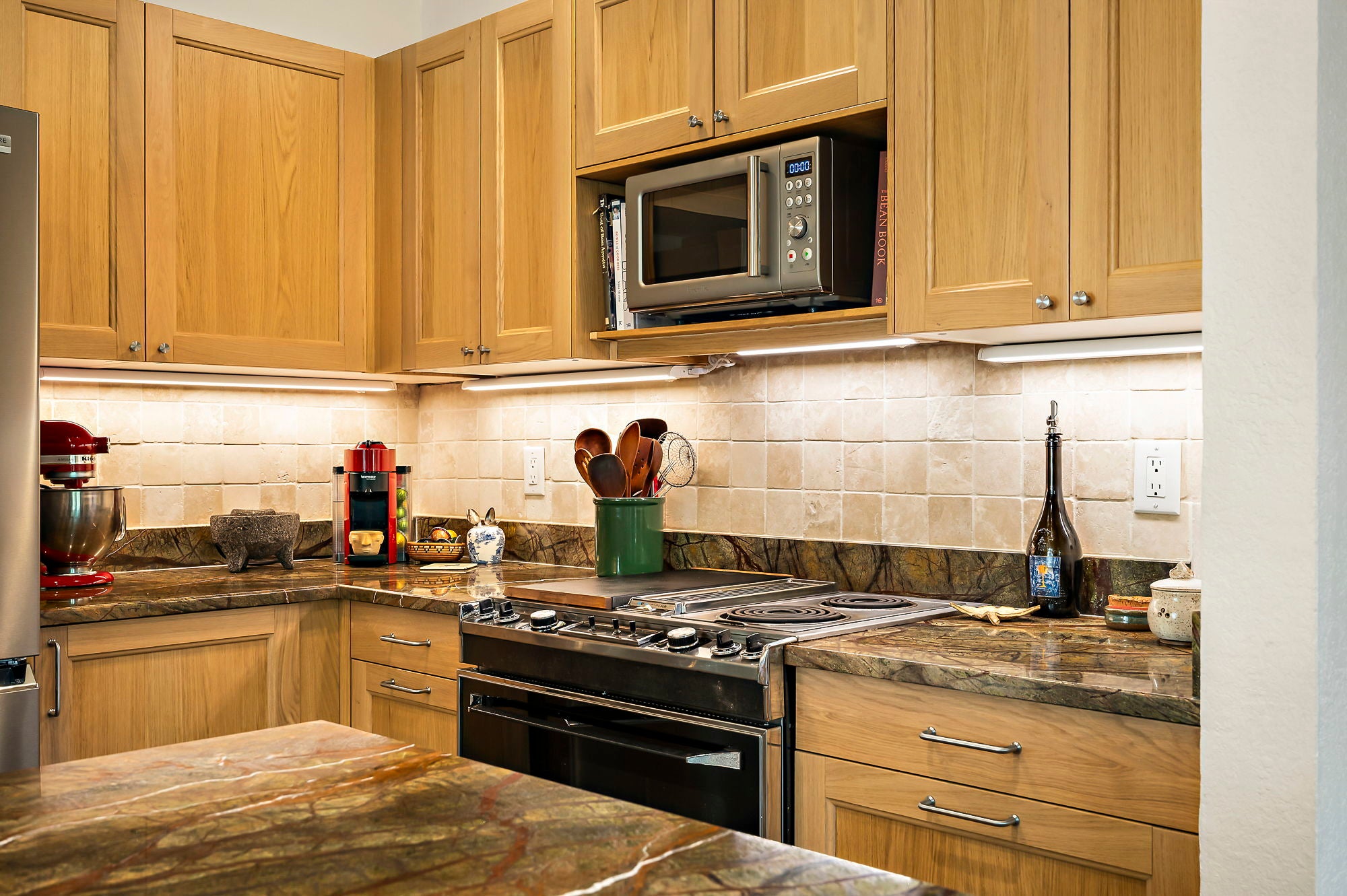 Dishwasher, Disposal, Stainless Steel Appliance(s), Built-In Range, Down Draft, Electric Range, Electric Water Heater, Vented Exhaust Fan