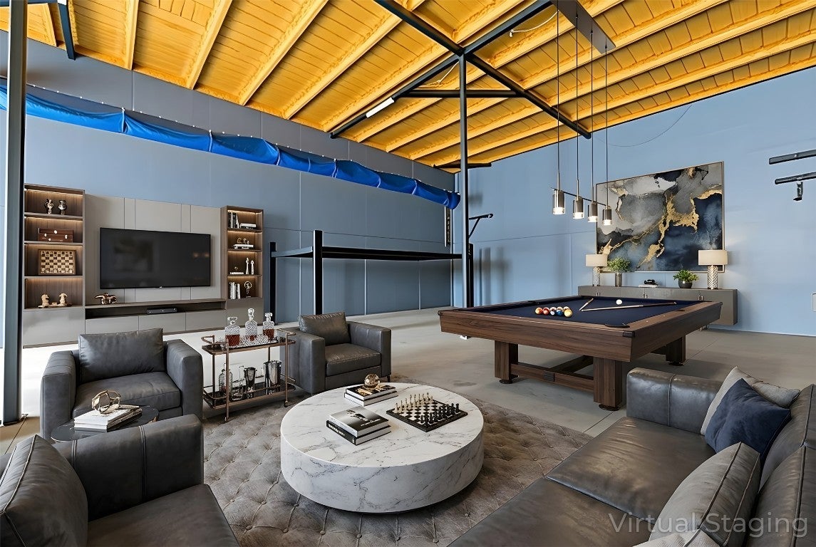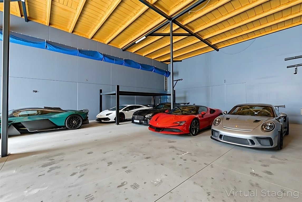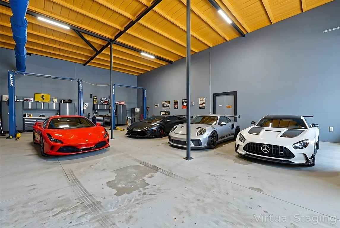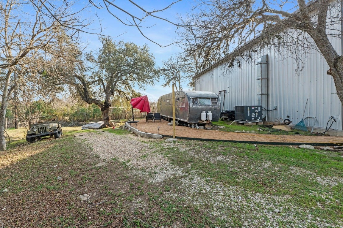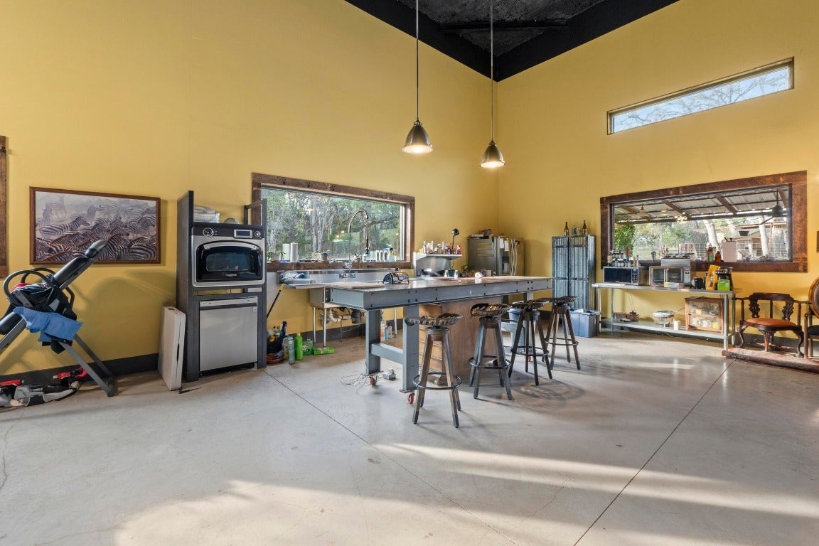 One-of-a-kind metal building situated on 1.5 private acres with a secluded drive, just minutes from Circuit of the Americas and downtown Austin. Designed with a flexible split layout, this property offers exceptional versatility. One wing features fully air-conditioned garage space with soaring ceilings, a vehicle lift, and two oversized bay doors—perfect for car collectors, hobbyists, or specialty use. The opposite wing provides comfortable living quarters with an open-concept great room, two bedrooms, and two full bathrooms. The primary suite includes an en-suite bath, while the secondary bedroom is served by a separate full bath. High ceilings throughout enhance the open, modern aesthetic. The building construction allows multiple floorplans to accommodate end-user's specific taste. The private setting allows ample room for expansion or customization, making this an ideal car enthusiast’s retreat, private club, or distinctive live/work property in a highly sought-after location.