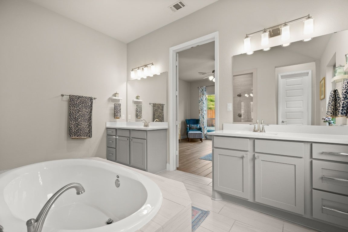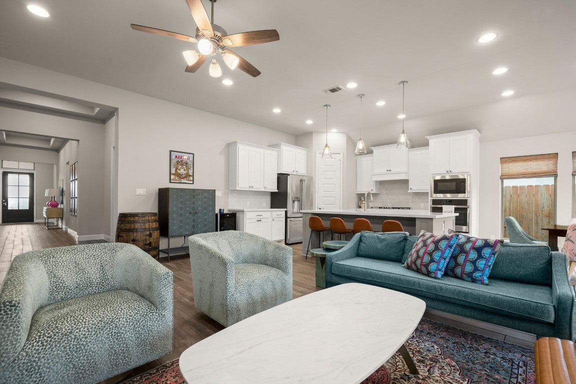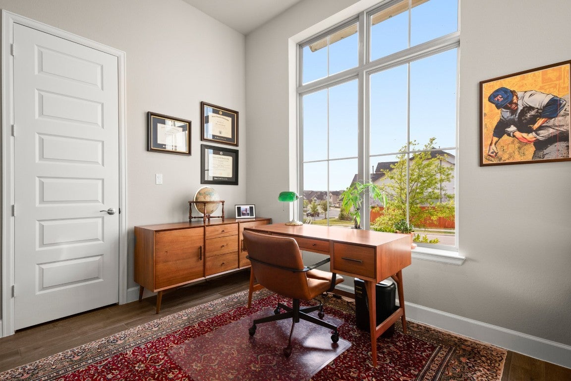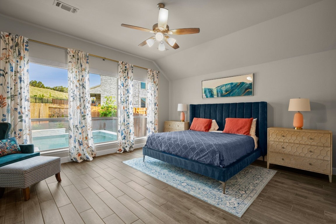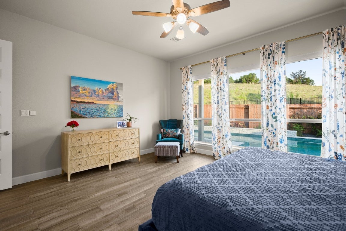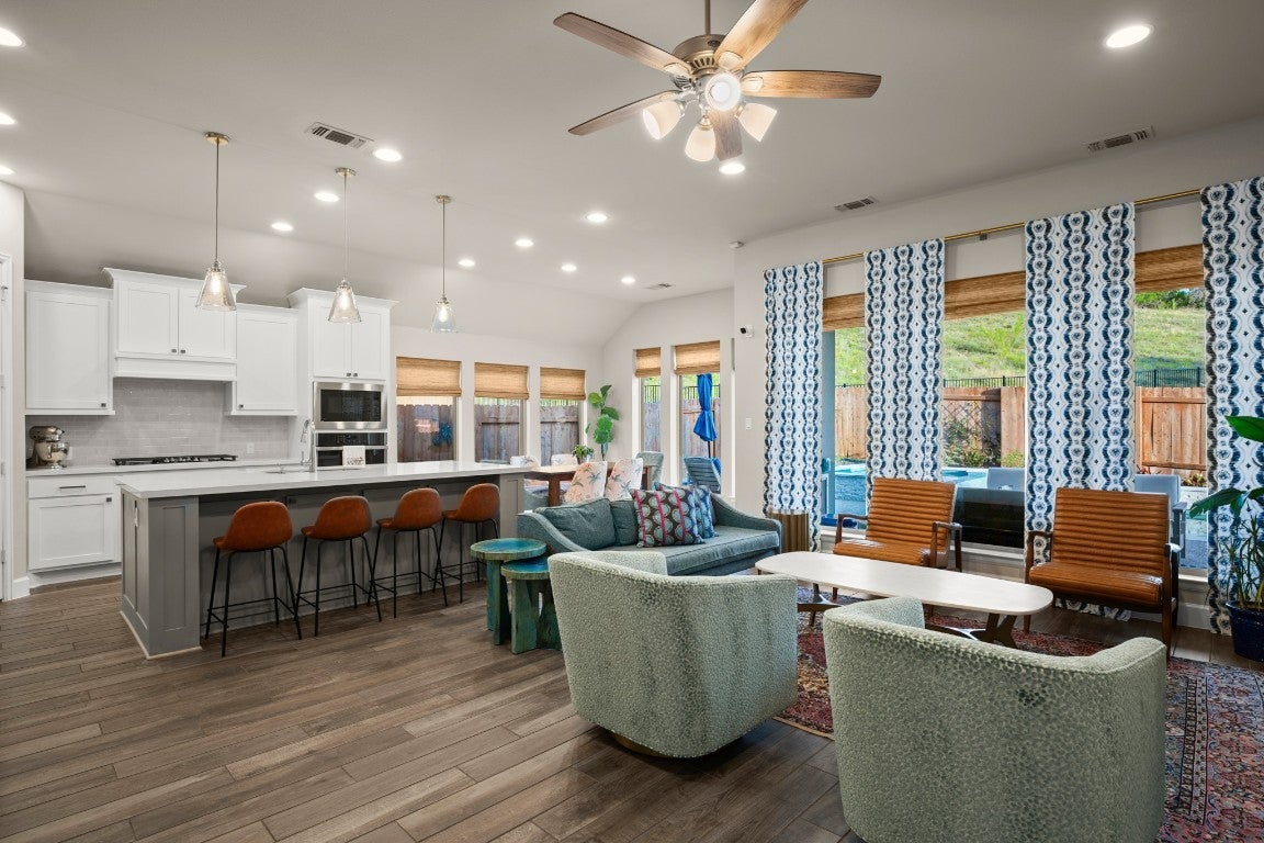 Limited Time Incentives—Contact Agent for Details! Experience elevated Hill Country living in this stunning designer home with a resort-style backyard! Welcome to 18621 James Power Court — a beautifully upgraded Perry Homes residence nestled on a quiet cul-de-sac in the sought-after Sweetwater community, located within the award-winning Lake Travis ISD. Blending modern elegance, thoughtful upgrades, and resort-inspired outdoor living, this home redefines the Austin lifestyle. Step inside and you’ll immediately feel the openness of the flowing layout, where high ceilings, wood-look tile floors, and expansive picture windows fill the spaces with natural light. The chef’s kitchen is a showstopper—featuring a sprawling quartz island, gleaming white cabinetry, stainless steel appliances, and designer pendant lighting that adds a touch of sophistication. The living room’s oversized windows frame serene views of the sparkling pool and spa, complete with waterfall and custom lighting features. It’s an entertainer’s dream inside and out with ample space to dine, lounge, and unwind beneath the stars. Retreat to the luxurious primary suite with its own wall of windows overlooking the backyard oasis. The ensuite bath features dual vanities, soaking tub, and spa-style shower. 3 additional bedrooms offer flexibility for family, guests, or hobbies, while the dedicated home office and French-doored game room create distinct spaces to work and play. Well-curated upgrades enhance daily living, from automatic window treatments and epoxy-coated garage flooring to a whole-home water softener and filtration system and landscaping. Security and convenience are seamlessly integrated with a smart alarm system featuring five cameras, along with outdoor holiday lighting that adds effortless charm year-round.