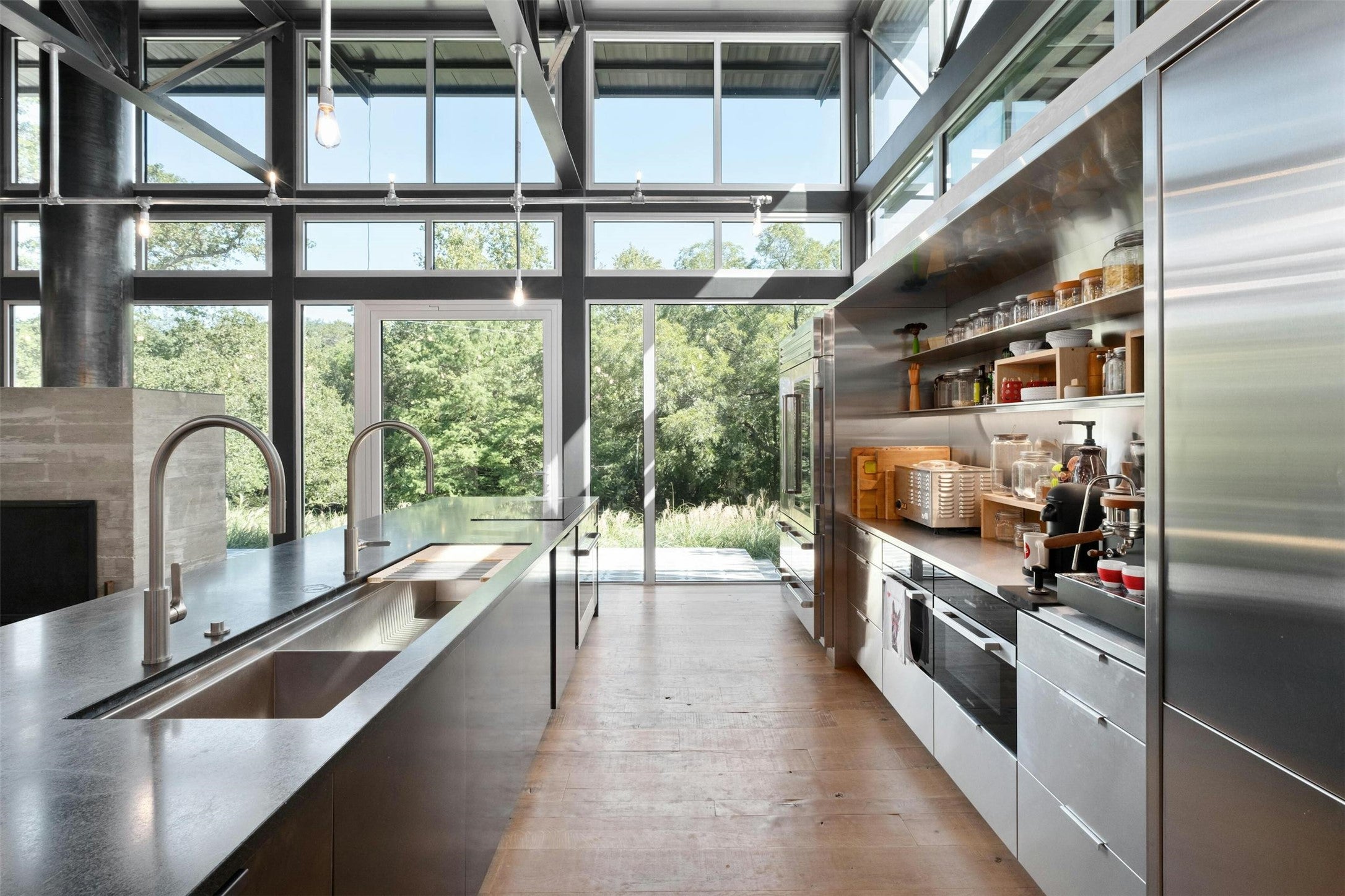 2212 River Hills Rd is a masterfully renovated residence that harmoniously blends luxury with nature, set within a sprawling 4.65-ac sanctuary in Austin. Designed by the renowned Mell Lawrence and executed with precision by Miars Construction, the home is an epitome of refined craftsmanship. The single-level main house features three spacious bedrooms, each with recent wood floors and a state-of-the-art Lutron-controlled lighting system. The main living is the expansive design, accentuated by six salvaged 58-foot bow trusses from a historic Nashville recording studio. The addition of a concrete fireplace and a Fire Orb in the screened-in porch further elevates the home's ambiance. The former workshop shed was converted to a detached lounge area that could also serve as a guest casita. In addition to the guest accommodation, the residence includes a meticulously finished Airstream, for additional space to host family or friends for an overnight stay. The outdoor experience is equally impressive, with a recently redone pool, sleek fire pit, and a dog run outfitted with astro turf. The landscaping, designed by Word + Carr Design, enhances the serene atmosphere, while the new path lights and brick pavers add a touch of sophistication to the grounds. Modern upgrades extend beyond aesthetics to functionality, including a 40,000-gallon rainwater collection system that supplies the home, updated solar panels, and a separate septic system. A private well services irrigation. The property is fully equipped with battery-operated blinds, Sonos sound systems in key areas, and recently installed steelwork by Steel House. Improvements include a recent electric gate and fencing by Enabler, an insulated and finished garage space, recent wiring, and a fully integrated lighting and sound system. 24-hour advanced showing notice. Tax and assessed values are estimates for illustration purposes only. All figures should be independently verified. MORE at RiverHillsRoadResidence.com