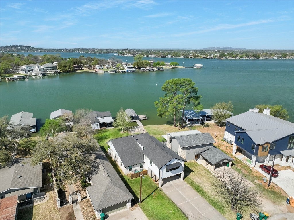 This Lake LBJ retreat is your gateway to endless lake adventures, boasting 50 feet of prime waterfront and a boathouse built for action—dual boat lifts, Trex decking, ceiling speakers, and a lounge area for soaking in the views. Easy water access? You got it—steps and a ladder lead straight in! When you're not cruising the waves, unwind on the shaded back patio with ceiling fans, perfect for lakeside grilling and good times. Inside, vaulted, beamed ceilings and wall-to-wall lake views set the scene in the open concept living space. The kitchen is built for gatherings, featuring granite counters, bar seating, and a sleek range with vent hood. The owner’s suite is a serene escape with panoramic water views, an en suite with a walk-in shower, and a custom walk-in closet. Need space? The bunk room upstairs offers soaring ceilings, tons of natural light, and dual walk-in closets. With new windows (2024), a fresh roof, and zoned HVAC, comfort is covered. Plus—short-term rental friendly and just 0.2 miles from Bluebriar and Briar Park’s boat ramp and lakeside park. Whether you're boating, floating, or fireside lounging, this Lake LBJ getaway is ready for you! Lake life starts now—let’s make it yours!