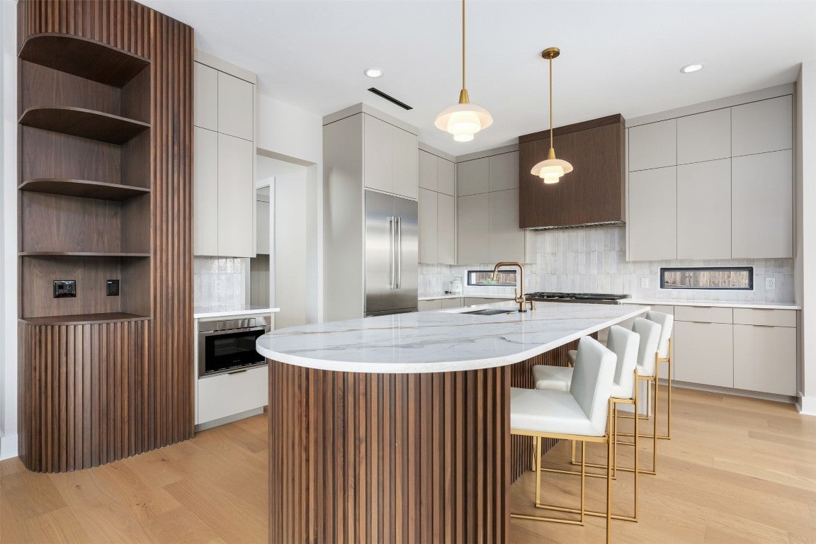 This exceptional custom residence showcases modern architecture paired with meticulous craftsmanship, all just moments from the tranquil shores of Lake Austin. Set against sweeping Hill Country views, the home offers a serene and scenic backdrop for everyday living. Thoughtfully designed with sophistication in mind, the expansive floor plan features light-filled living spaces, high-end finishes, and state-of-the-art amenities throughout. Floor-to-ceiling windows frame the surrounding landscape and flood the interiors with natural light, while the open-concept design creates a seamless flow between indoor and outdoor living—ideal for both entertaining and everyday comfort. Private retreats throughout the home provide peaceful spaces to unwind and recharge. Built with premium materials and exceptional attention to detail, this stunning residence blends modern elegance with the natural beauty of the Hill Country. Whether hosting gatherings or enjoying quiet moments inspired by the nearby water, this home delivers the ultimate in refined lakeside living. Conveniently located near shopping, dining, and entertainment, with easy access to miles of hiking and biking trails, Lake Travis, and Lake Austin. Approximately 25 minutes to downtown Austin and 40 minutes to Austin-Bergstrom International Airport. Zoned to highly acclaimed Leander ISD, with private school options nearby.