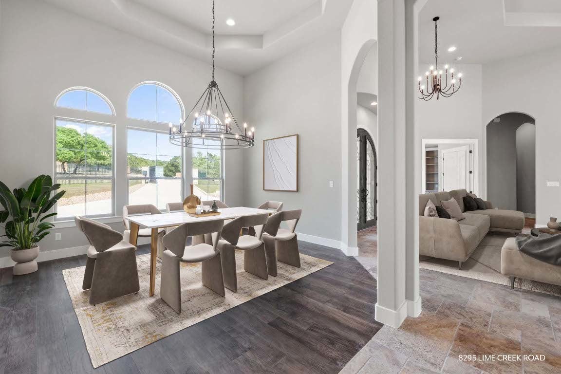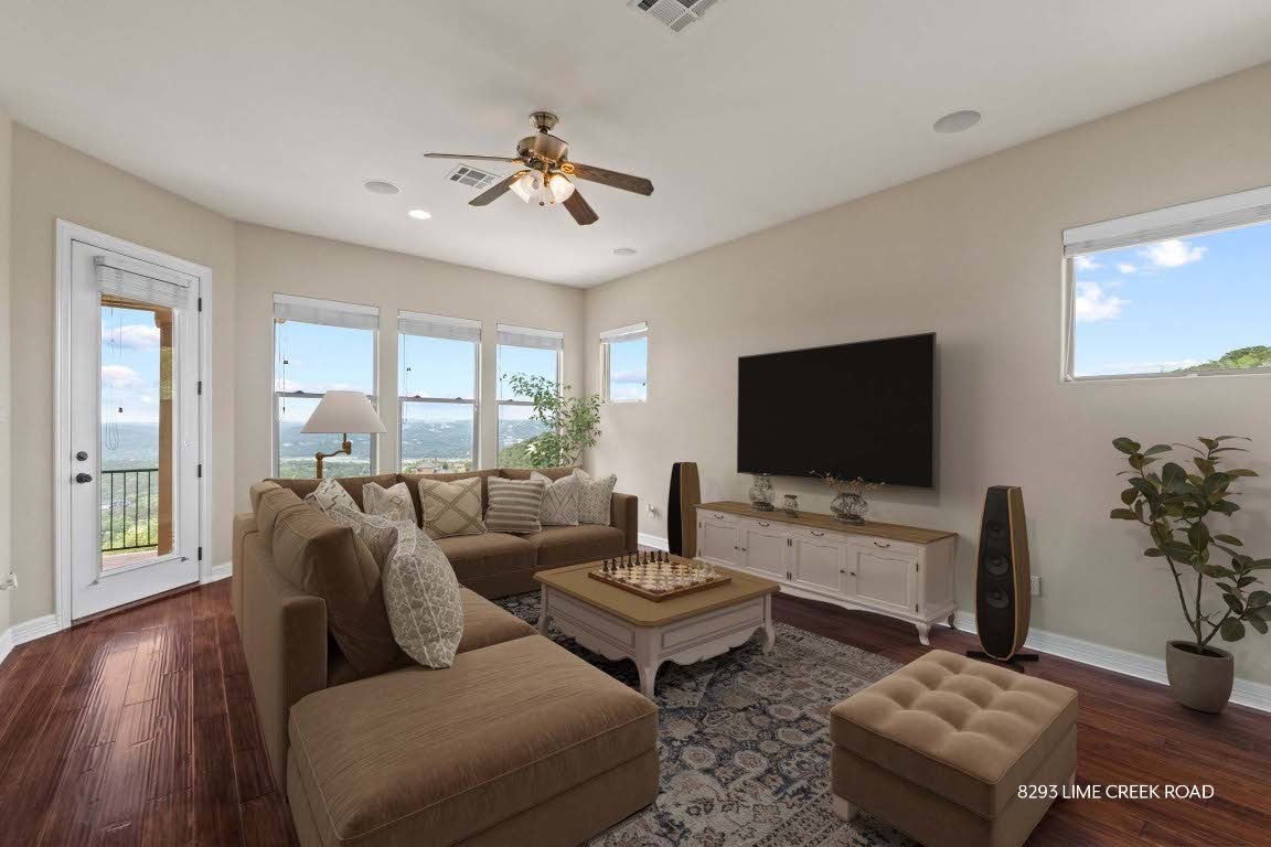 Massive Price Reduction! Two standalone residences in a serene Hill Country setting! 8293 & 8295 Lime Creek Road span 12.36 acres and offer 4 bedrooms + 4.5 bathrooms at 8293, and 3 bedrooms + 3.5 bathrooms at 8295. Perched above the landscape of the Texas Hill Country and overlooking Lake Travis, this rare offering combines neighboring estates with unmatched privacy, views, and versatility. Nearly the entire property is fenced and backs to a +/-5,000-acre preserve, ensuring no future development and uninterrupted peace. A gated entrance off Lime Creek Road leads to individual gates for each homeāan ideal setup for a family compound, multigenerational retreat, or investment in the sought-after Leander ISD. 8293 Lime Creek Road is a traditional two-story home on 5+ acres with sweeping panoramic views from the moment you enter. Designed with 4 bedrooms and 4.5 bathrooms, the home features generous living spaces including a formal dining room, breakfast area, and three living areas, one of which serves as a dedicated study. The private backyard boasts a sparkling pool with a waterfall feature, while a 3-car garage completes the home. Next door, 8295 Lime Creek Road offers a more contemporary, rustic aesthetic on 7+ acres. The newly constructed single-story residence features light-filled interiors with washed limestone accents, white cabinetry, and light stone flooring. The layout includes two spacious primary suites on opposite ends, a third guest bedroom, and a dedicated study. Both properties deliver a rare opportunity to embrace Hill Country living, just minutes from the lake yet offering a sense of seclusion and calm that feels worlds away.