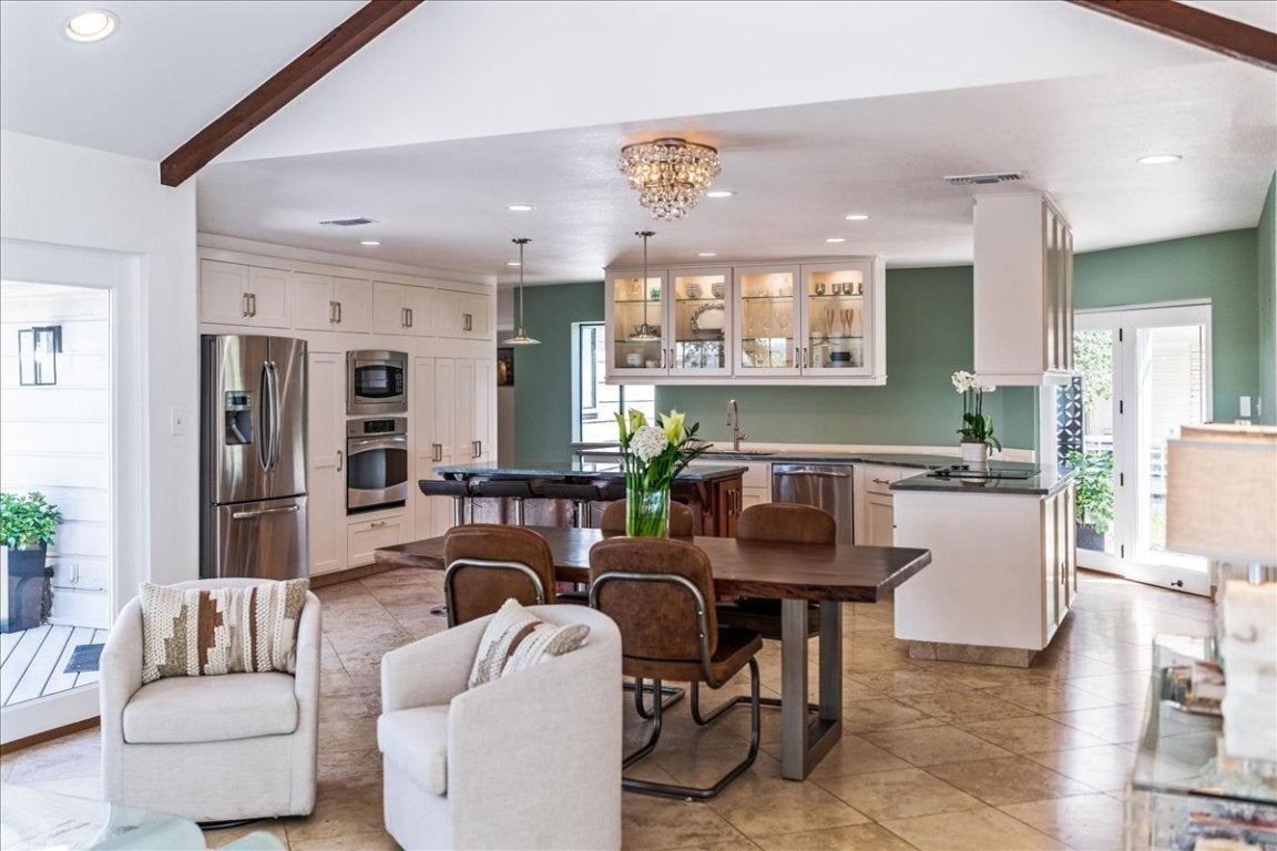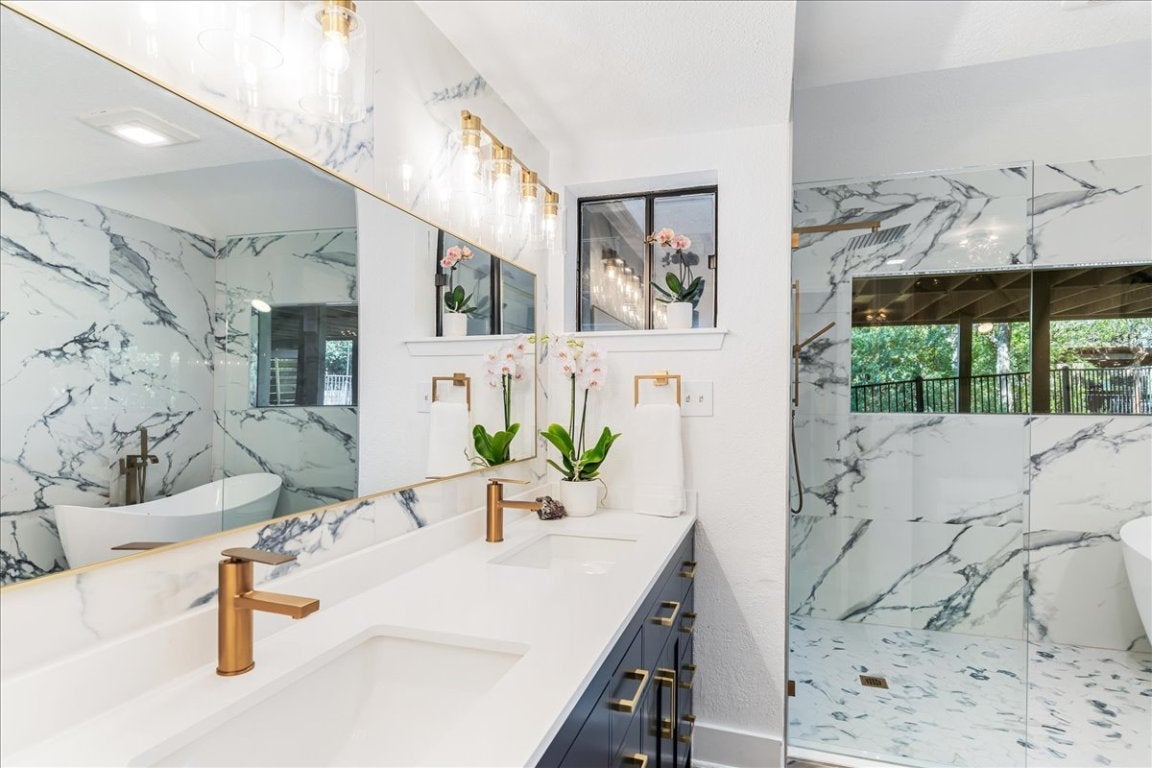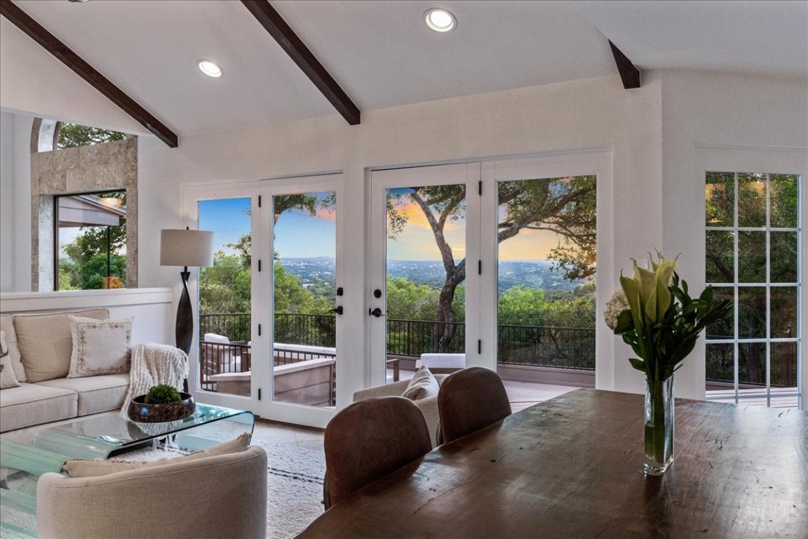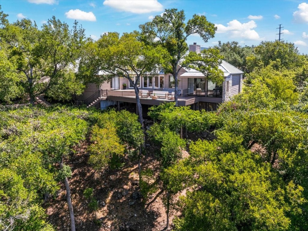 BACK ON THE MARKET — AND BETTER THAN EVER The Treehouse at 1306 Quaker Ridge | Lost Creek Experience the beauty of autumn from the Treehouse in Lost Creek, where panoramic Hill Country views and golden sunsets unfold from a spectacular deck. Now enhanced with over $180,000 in 2025 improvements, this residence blends modern updates with timeless design. Recent enhancements include a new tankless water heater system, a fire-retardant garage entry door, a beautifully refreshed half bath, new siding and flashing at chimney, and a WiFi-enabled irrigation control system for effortless maintenance. Walls of windows frame endless views, while vaulted ceilings with exposed beams, travertine floors, rare granite countertops, and custom kitchen cabinetry create a natural elegance. A refined living room with custom woodwork and a travertine fireplace opens seamlessly to the expansive outdoor living space. With four bedrooms, a renovated spa-inspired primary suite, an entertaining pergola, and a half-acre homesite within Eanes ISD, this peaceful sanctuary perfectly balances comfort, beauty, and entertaining with vista views. treehouselostcreek.com