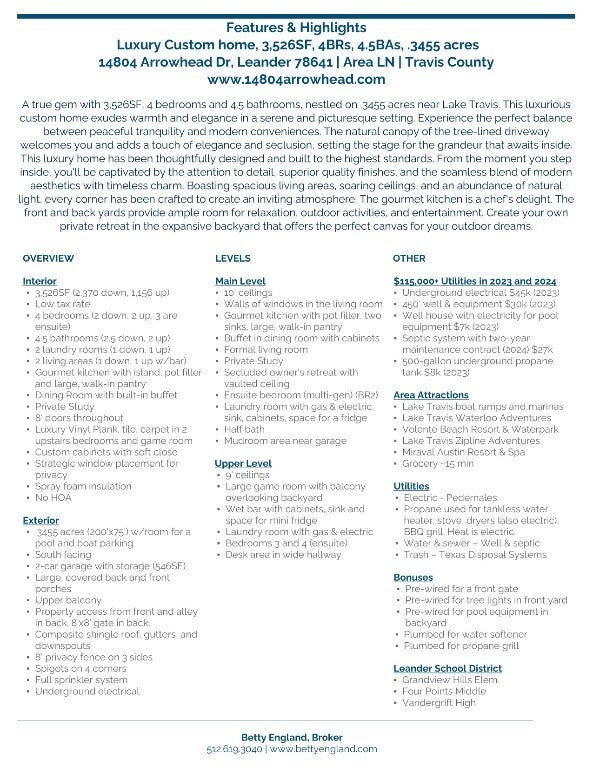 Situated near captivating Lake Travis, this custom home offers a serene and picturesque setting. Experience the perfect balance between peaceful tranquility and modern conveniences. The natural canopy of the tree-lined driveway welcomes you and adds a touch of elegance and seclusion, setting the stage for the grandeur that awaits inside. This luxury home has been thoughtfully designed and built to the highest standards. From the moment you step inside, you'll be captivated by the attention to detail, superior quality finishes, and the seamless blend of modern aesthetics with timeless charm. Prepare to be dazzled by the luxurious interior of this stunning residence. Boasting spacious living areas, soaring ceilings, and an abundance of natural light, every corner has been crafted to create an inviting atmosphere. Revel in the comfort and sophistication that this home offers with a gourmet kitchen that is a chef's delight featuring a top-quality Thor appliance package. The front and back yards provide ample room for relaxation, outdoor activities, and entertainment. Imagine enjoying a delightful evening with friends and family or indulging in moments of solitude surrounded by nature's beauty. The expansive back yard offers the perfect canvas for your outdoor dreams with plenty of space to create your private retreat. Picture yourself lounging by a sparkling pool, savoring the sunshine, and retreating to a charming cabana for a refreshing beverage of choice.
