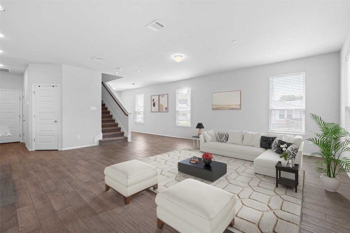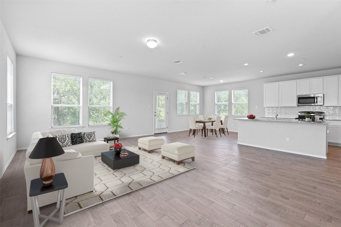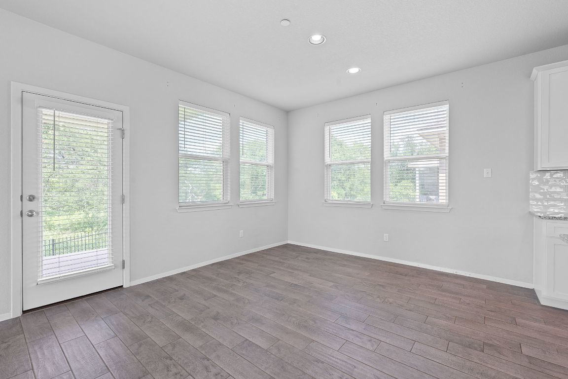 Charming Home in Legends Village | Backing to Greenbelt | Gated Community Welcome to this beautifully upgraded 4-bedroom, 2.5-bathroom home with a 2 car garage nestled in the sought-after Legends Village gated community in Round Rock, TX. Offering 2,265 sq ft of thoughtfully designed living space, this two-story residence combines comfort, style, and convenience—perfect for modern living. Legends Village is a gated community with prime proximity to Dell Diamond, Old Settlers Park, Kalahari Resort, and major Round Rock attractions. Clubhouse access and full lawn maintenance are included. Step inside to find upgraded tile flooring throughout the main level, where an open-concept layout seamlessly connects the spacious living room, dining area, and a stylish kitchen featuring 42” Alpine White cabinets, Bianco Atlantico granite countertops, and GE stainless steel appliances—including a refrigerator. Chrome hardware finishes add a sleek touch, while window blinds throughout the home offer both privacy and light control. Upstairs, you’ll find a second living area ideal for a game room or media space, all four bedrooms, and a conveniently located laundry room. The luxurious primary suite boasts a walk-in shower, dual sinks, espresso brown cabinetry, and elegant Blanco Matrix Silestone countertops. Enjoy peaceful views and fresh air from the covered rear patio that backs to a serene greenbelt—your own private retreat. Don’t miss the opportunity to live in this vibrant, boutique neighborhood that offers upscale finishes, modern amenities, and unbeatable location!