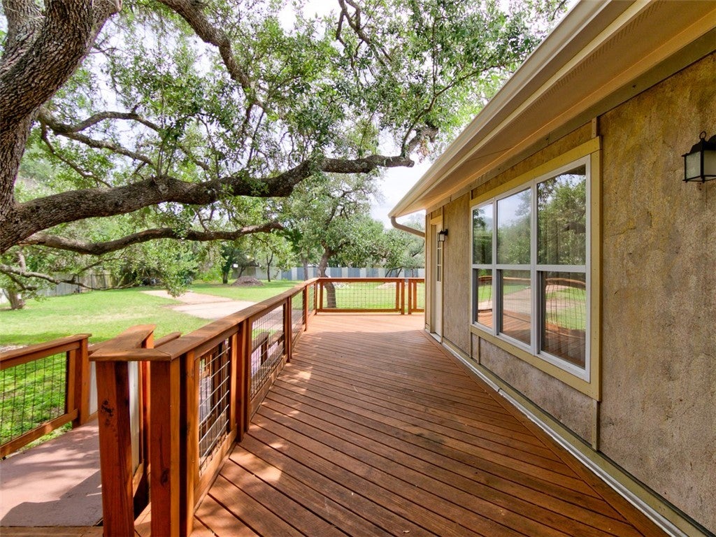 Scenic West Austin's Cuernavaca community area offers the best of so many worlds: stunning natural beauty - from the hills that constitute the very beginnings of the Texas Hill Country - to the deer, rabbits, foxes, myriad feathered friends and other resident wildlife who have made Cuernavaca their homes. Add to that the relaxation that proximity to Lake Austin (& the Lake Hills Park*) provides. Now top that off with the relatively close-in location which makes Zilker Park, Auditorium Shores & DT Austin just a beautiful 10 mile drive. All these characteristics come together at the amazing abode at 1600 San Juan Drive! A lovely 4 bed/2 bath home situated on a magnificent, large lot. Step inside to a carpet-free home with a fabulous floorplan: large eat-in kitchen, utility & dining room off to one side, a generous living room in the center serves as a hub for visiting, entertaining, or connecting with family after a busy day. Thoughtful separation of the primary bedroom (towards the front of the home) from the 3 secondary bedrooms plus beautifully remodeled full bathroom towards the back of the home are just a sample of the special features of 1600 San Juan. My favorite is the expansive deck which begins off of the dining room. Step through the French Doors and follow this beautiful deck around the back of the home. With live oak trees in front and back, and a large cleared area to the side, this home really may have it all!