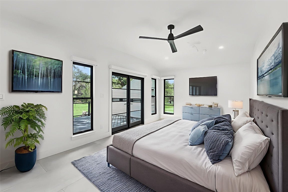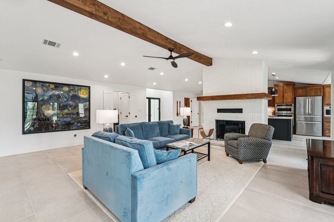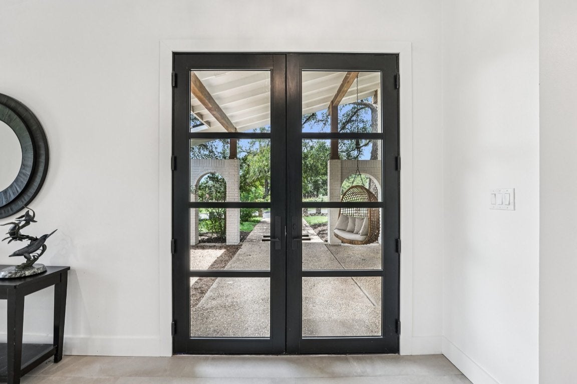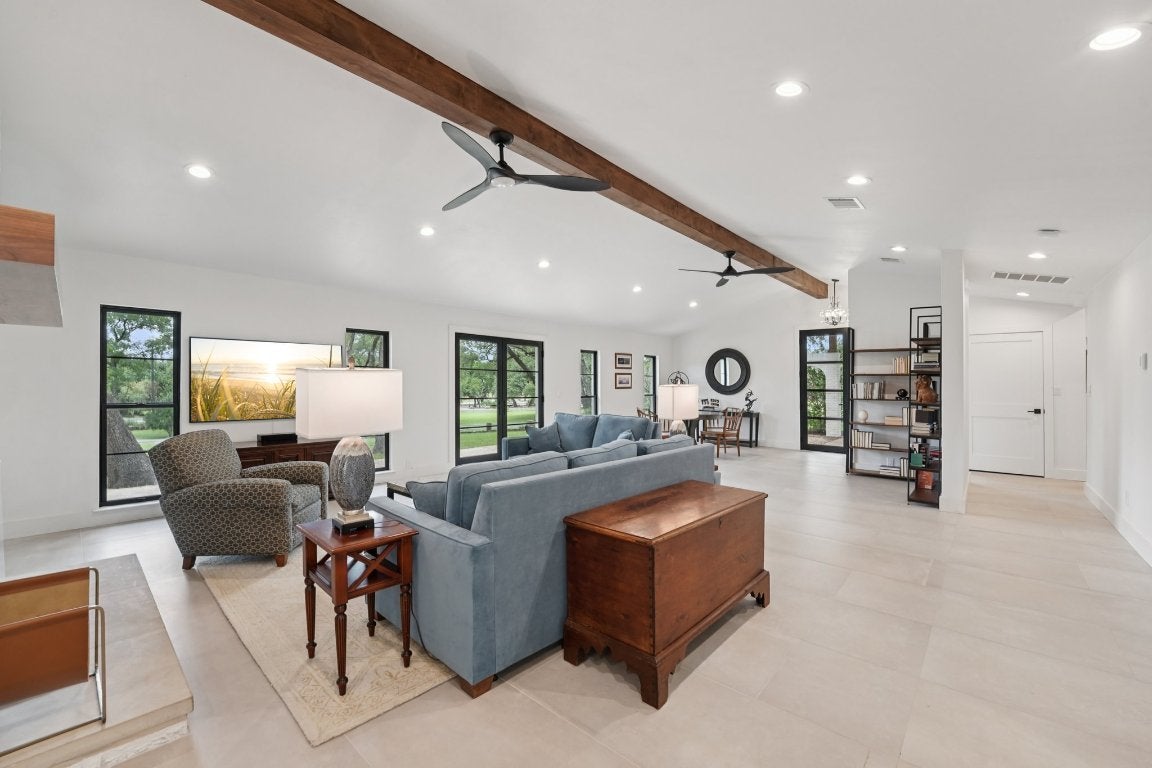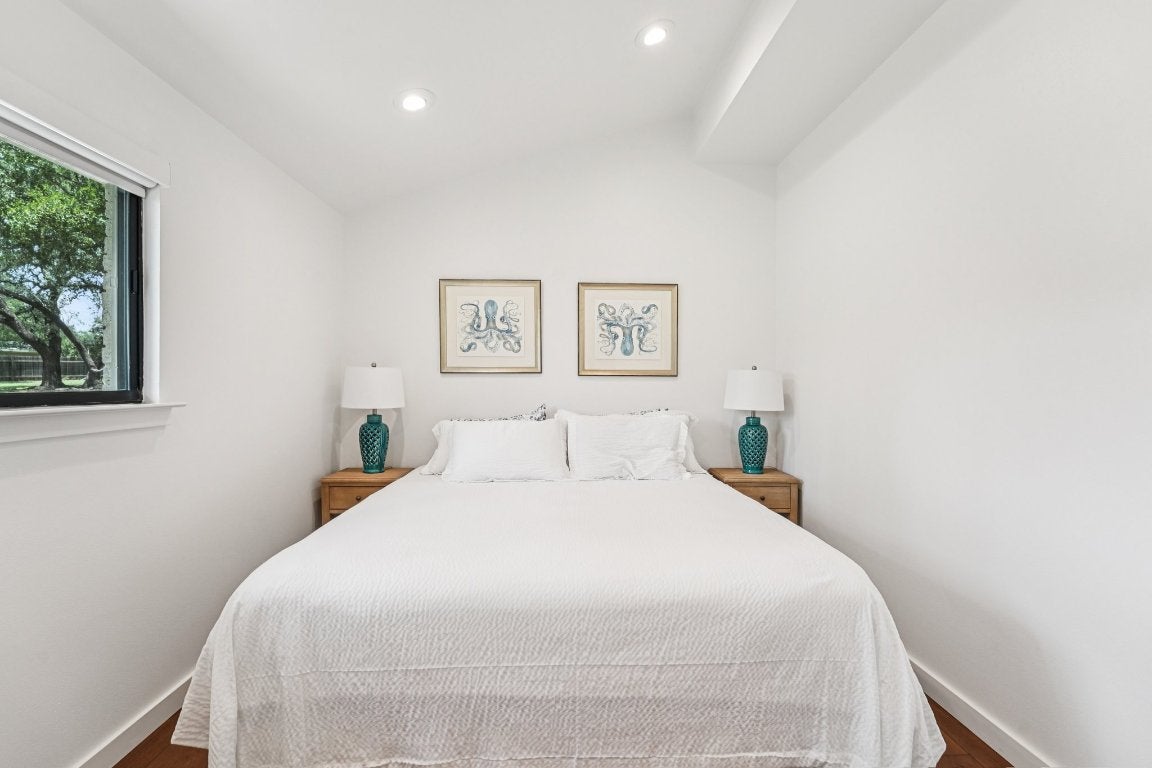 Tucked behind a private gate on 4 oak-studded acres in the coveted North Lake community, 707 Harbor Dr is more than just a home—it’s a sanctuary where nature, luxury, and recreation coexist in perfect harmony. This thoughtfully reimagined 3-bedroom, 2-bathroom main residence spans 2,500 square feet and has been completely transformed from the studs up between 2019–2020. Originally crafted in 1978, the home now showcases a stunning modern design infused with timeless materials and meticulous attention to detail. Raised ceilings and Marvin black-framed windows flood the space with natural light, while wide-plank 48”x24” tile floors and solid-core doors add a touch of quiet luxury throughout. At the heart of the home, the gourmet kitchen commands attention with custom walnut cabinetry, sleek Quartz countertops, a granite composite sink, and premium stainless appliances—including a 5-burner induction cooktop and built-in Bosch WiFi coffee maker. The living area features dramatic cathedral ceilings, and the dining room rises to an impressive 12 feet, making gatherings both grand and comfortable. The primary suite is a true retreat, offering double doors to a shaded patio and a spa-like ambiance amid the tranquil landscape. The recent 2022–23 addition of a fully finished 600 sq ft guest house elevates the experience for visitors or multi-generational living. With its own bedroom, bathroom, kitchenette, and living space, guests can enjoy views of the resort-style, multi-tiered pool and hot tub, which flow seamlessly into an expansive sun-shelf and catch basin waterfall feature. Surrounding it all is lush, high-grade artificial turf for year-round vibrancy and minimal upkeep. And for those seeking activity and entertainment, an extended paved area leads to a custom pickleball court—perfect for spirited games with friends or neighbors. A paved drive and ample parking make hosting a breeze, while the short drive to Lake Georgetown offers endless outdoor adventures nearby.
