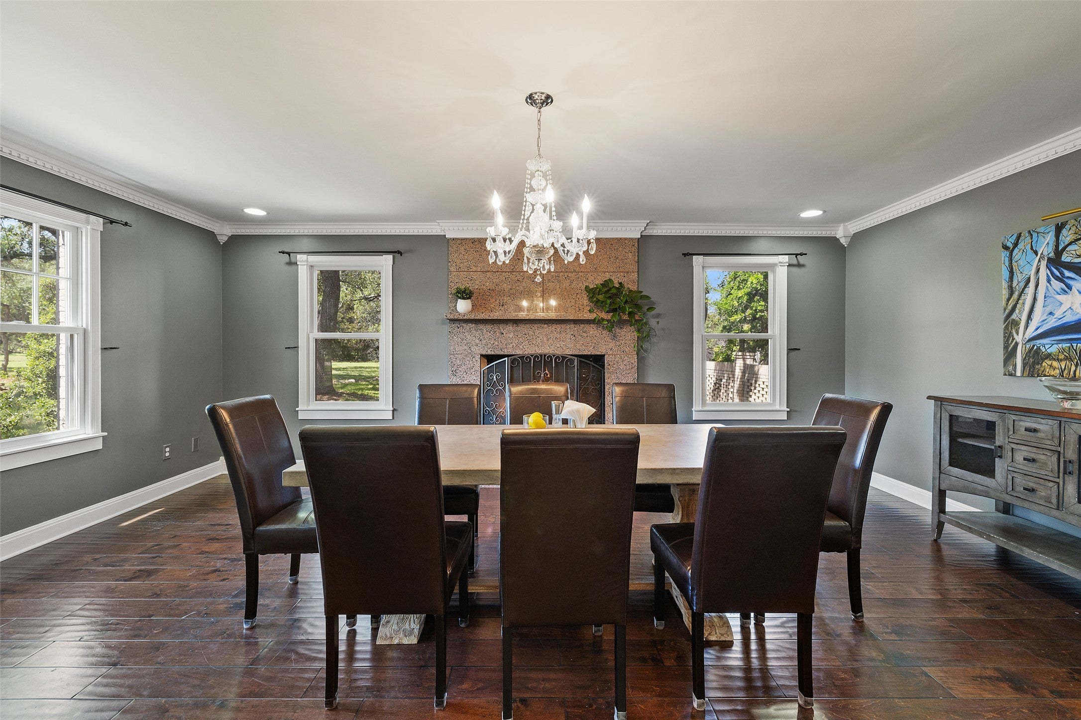 Family Room, Glass Doors, Living Room, Masonry, Outside, Raised Hearth, Stone, Dining Room