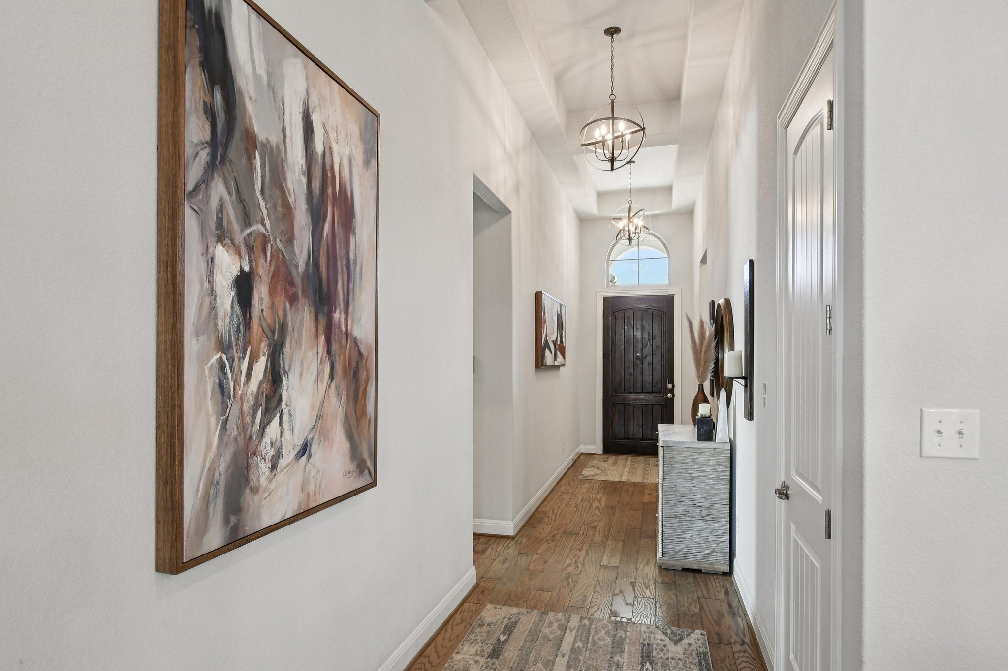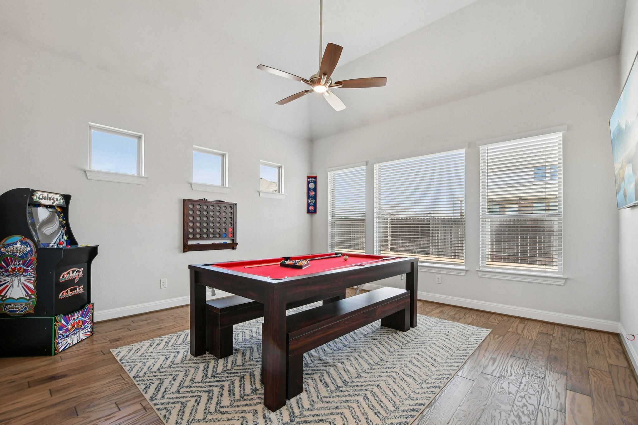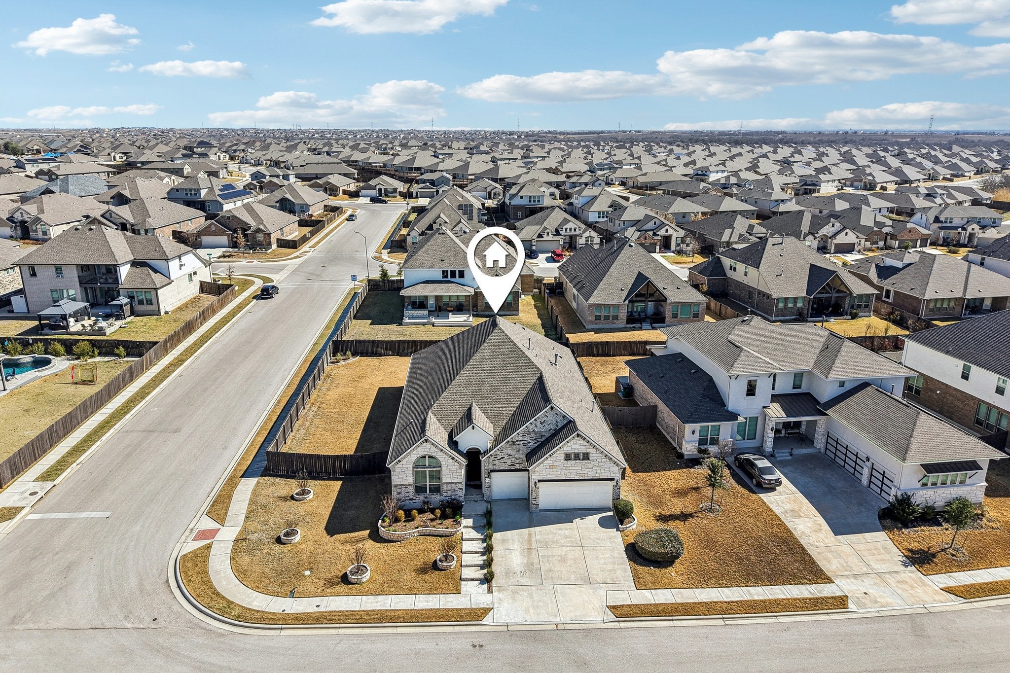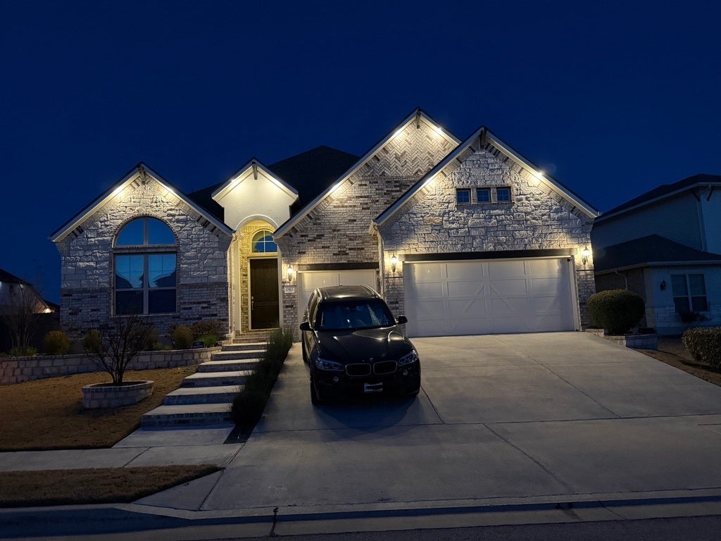 Pristine 1 story Sorento home with high ceilings. Enjoy upgrades at every turn, perfectly positioned on a corner lot in a subdivision across from Lake Pflugerville. Imagine morning walks along the water, weekends spent at the lakeside beach, fishing at sunset, or miles of scenic trails right outside your community. This home is a lifestyle. The crisp exterior is complemented by an oversized driveway, a 3-car garage, and permanent roofline lighting that elevates every evening, whether it’s holiday season or just another beautiful Texas night. Thoughtfully designed landscaping creates a sense of arrival every time you pull in. Inside, the foyer opens to an inviting living room and kitchen, where upgraded lighting and hardwood flooring elevate the space. The living room offers a cozy retreat, while the kitchen impresses with an oversized granite island perfect for gathering, casual meals, or entertaining. Abundant cabinetry and counter space provide room for everything. A versatile flex space at the rear of the home adapts to your needs, serving as a game room, gym, playroom, or second living area. The spacious primary suite offers a peaceful escape, and the spa-like bath features a garden tub, double shower head walk-in shower, dual vanities, and a custom walk-in closet with center island dresser designed for effortless organization. Step outside to a massively oversized covered patio, an entertainer’s dream. With ample space for dining, lounging, and hosting, plus two ceiling fans for comfort, this backyard retreat was designed for Texas evenings, weekend barbecues, and relaxed outdoor living. Residents enjoy resort-style amenities including a pool, clubhouse, playground, fitness center, and miles of trails, all while being minutes from the 130 Toll, Austin Executive Airport, and ABIA. Plus, you’re just moments from shopping, dining, and movie nights at Stone Hill Town Center. Live where convenience meets recreation and every day feels like a getaway.