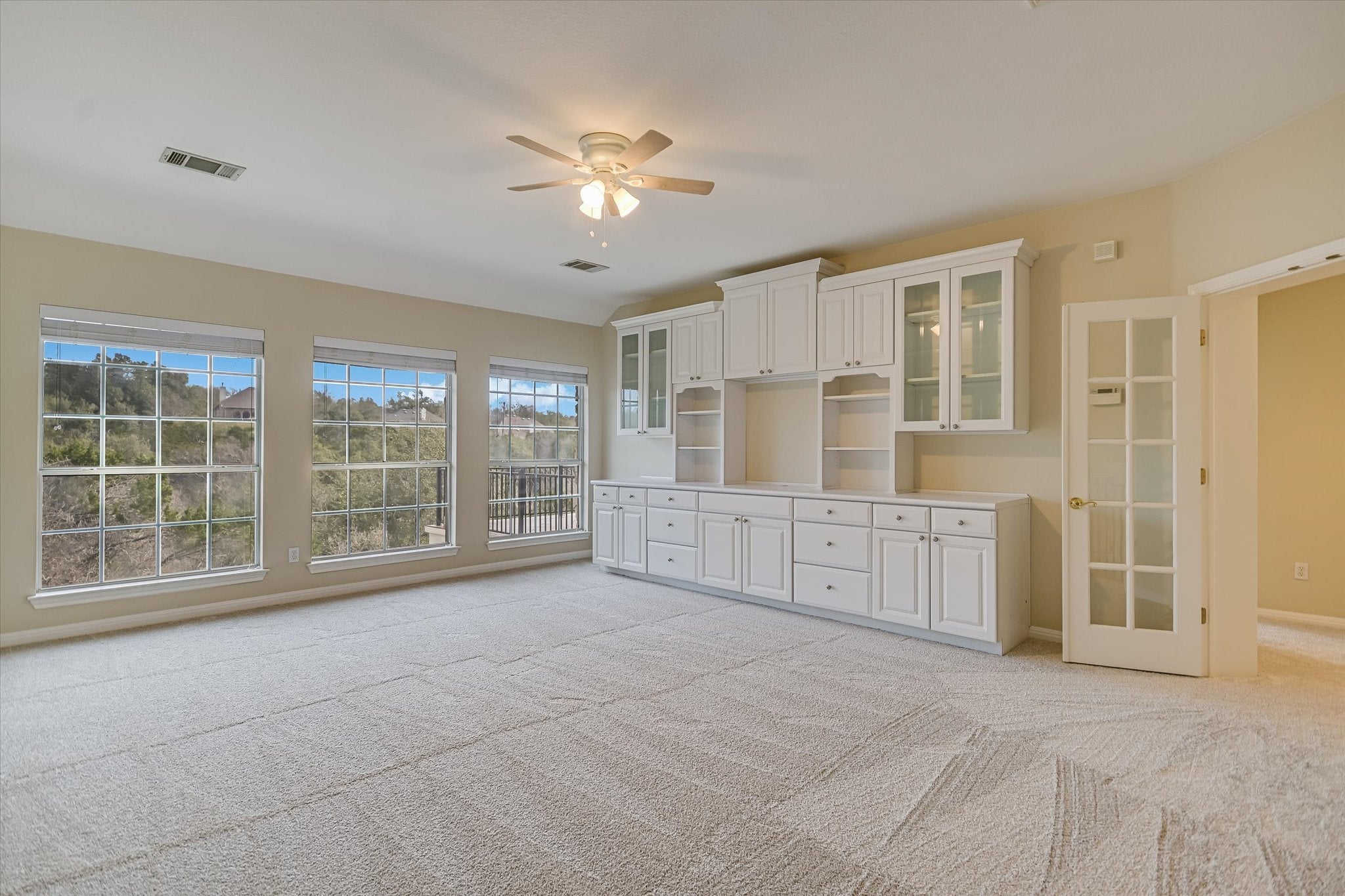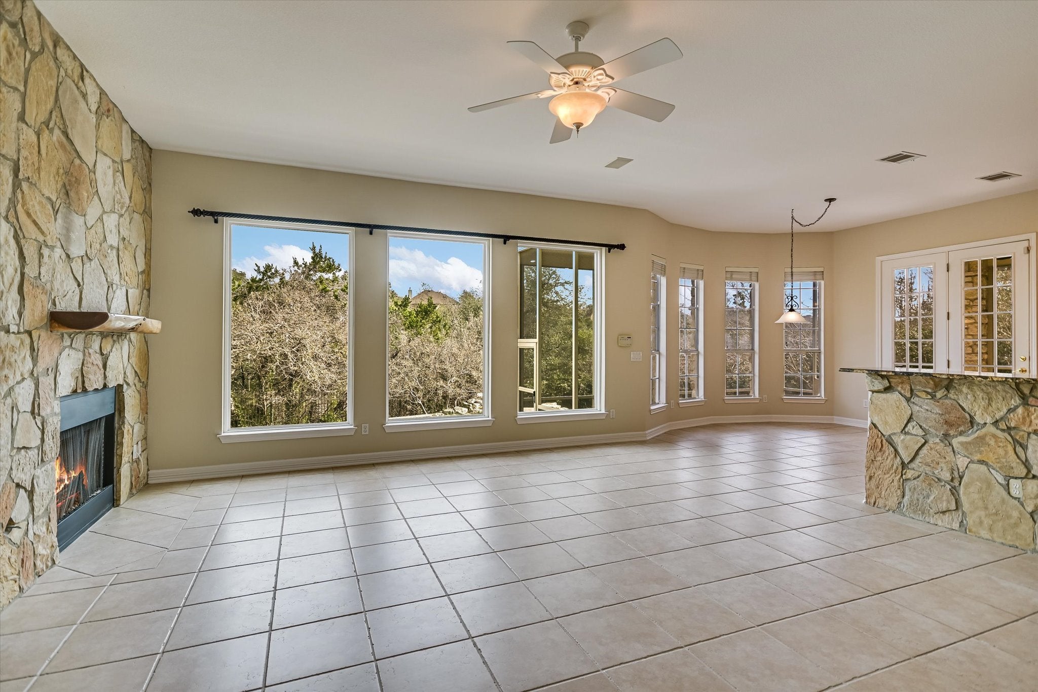 Stunning home in the exclusive Corbe Estates of Canyon Creek, ideally situated on a private cul-de-sac with breathtaking canyon and preserve views. Backing directly to the preserve, this property offers a true backyard oasis featuring a screened-in porch, beautiful saltwater pool, and relaxing hot tub. This spacious 5-bedroom home (1 down, 4 up) offers exceptional flexibility and comfort. The main level boasts inviting living areas and a generous kitchen with a center island and newer appliances — perfect for everyday living and entertaining. The interior has been recently painted and features brand new carpet, creating a fresh, move-in-ready feel throughout. The primary suite is located upstairs and features a massive private deck with incredible views. The en suite bath includes an unusually large walk-in closet, double vanities, a soaking tub, and a separate walk-in shower. A spacious game room upstairs provides ample room for gatherings and entertainment. Located in award-winning Round Rock ISD, zoned to Westwood High School.