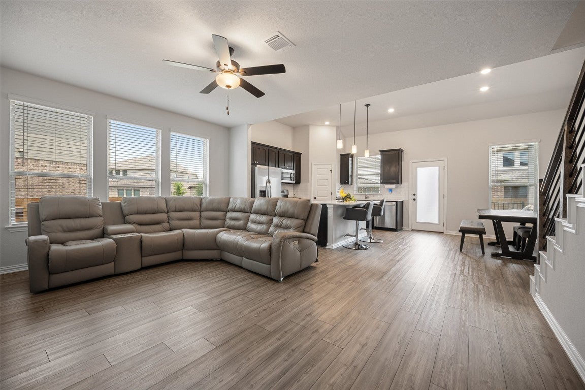 Welcome to your nearly-new dream home in the coveted 6 Creeks neighborhood! Built just 2 years ago, this thoughtfully designed home features a spacious open floor plan that seamlessly connects the kitchen, living room, and dining area—perfect for entertaining or keeping everyone connected during everyday living. At the front of the home, a large dedicated office offers the perfect space for working from home or creative pursuits. Upstairs, you’ll find an oversized game room that’s ready for movie nights, play dates, or just relaxing with friends. Step outside to enjoy your covered patio, ideal for backyard BBQs or quiet mornings with a cup of coffee. And with energy-saving solar panels, you'll enjoy lower utility bills while living more sustainably. 6 Creeks is more than just a neighborhood—it's a lifestyle. Residents enjoy access to a resort-style pool, clubhouse, pickleball court, scenic fishing pond with dock, and outdoor gathering spaces perfect for weekend fun or evening strolls. Minutes from shopping, dining, and easy access to Austin, this home truly has it all—modern comfort, energy efficiency, and community vibes. Ready to make it yours? Let’s go take a look!