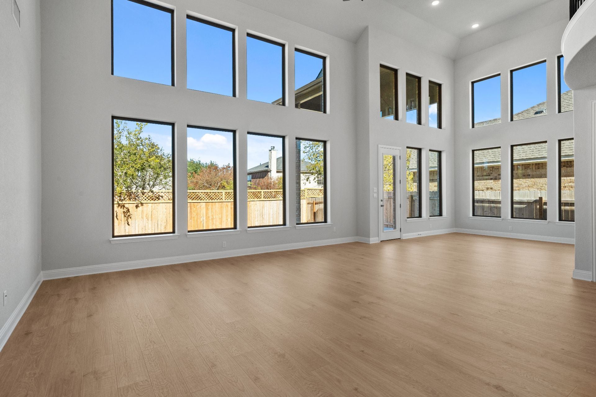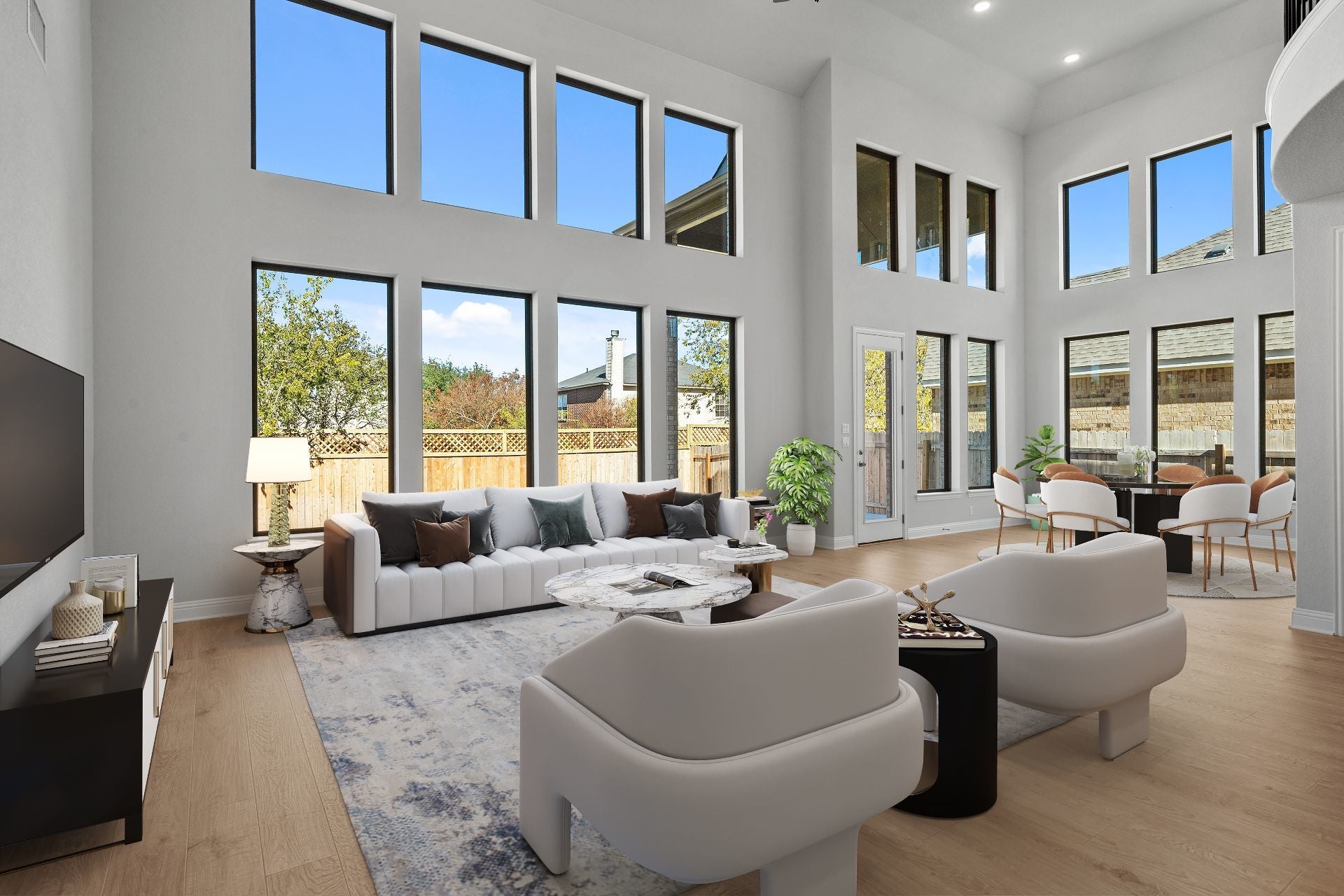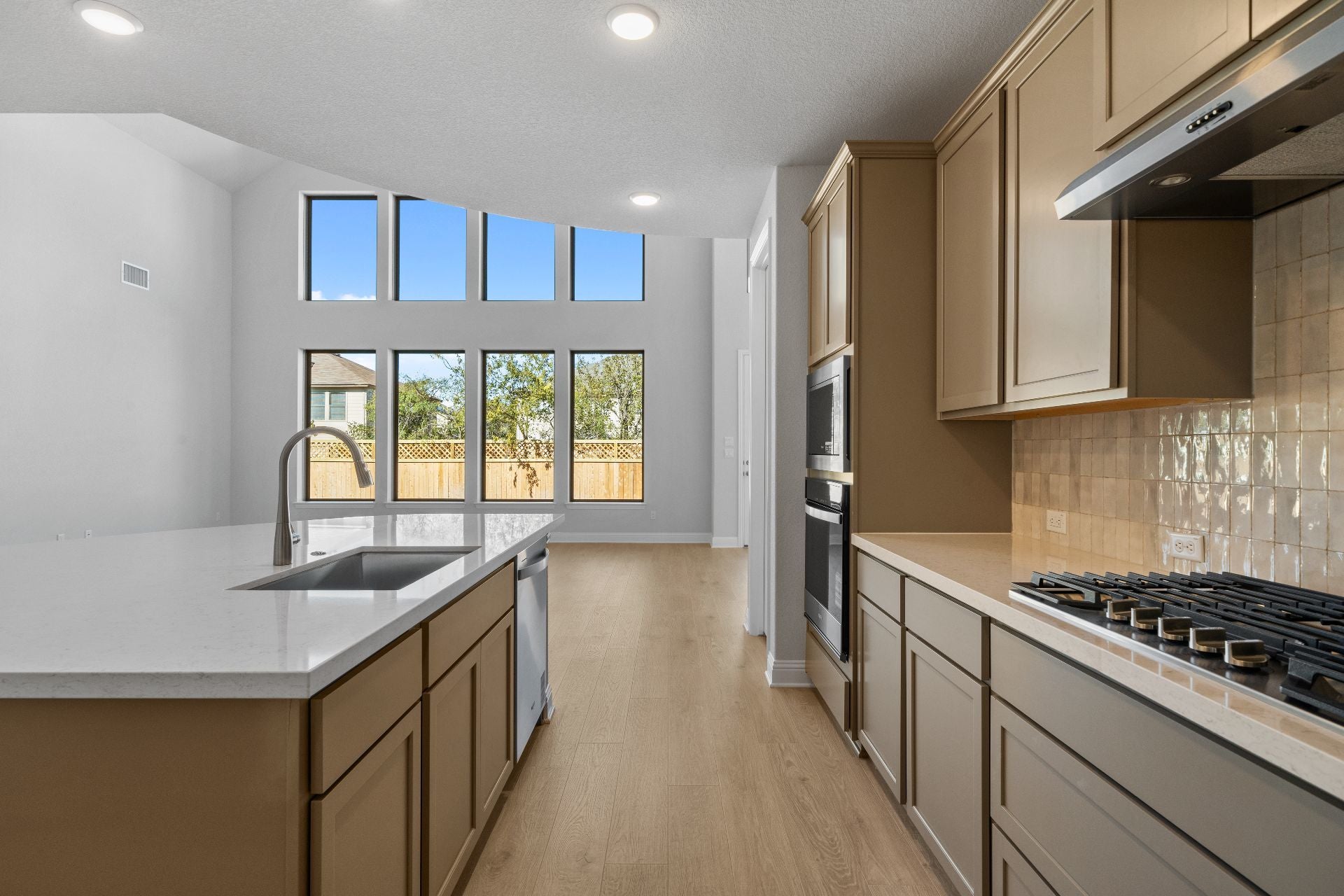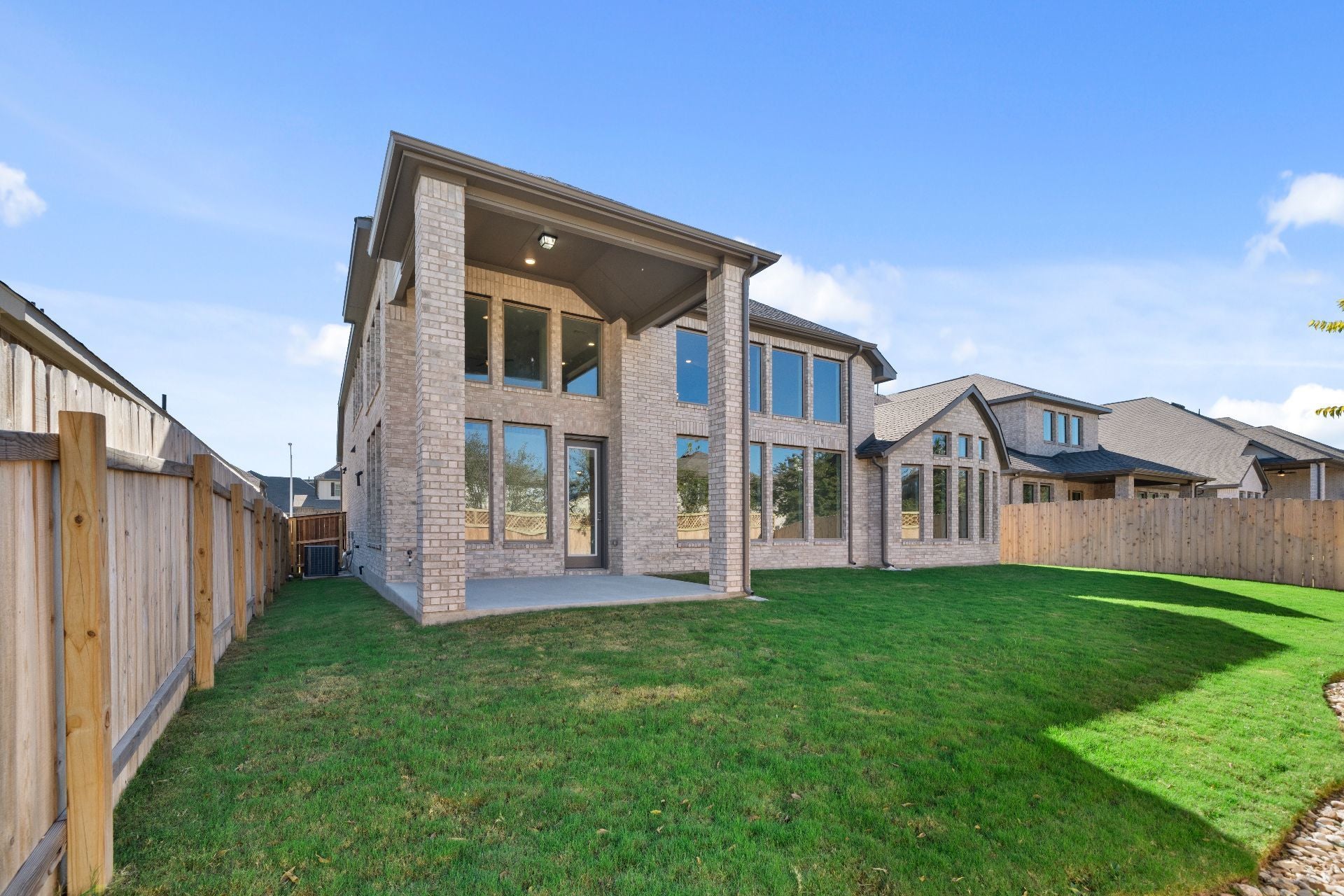 New Coventry Home! 1717 Sauterne Drive offers the most natural light and wide-open family room concept of any of the Coventry Homes plan designs. Located in Carneros Ranch, one of the only communities in Leander without a PID or MUD tax, this showstopper shines in spaciousness and beauty! The true heart of this home shines as you enter the front door. You will find gigantic ceilings, walls of windows, upgraded RevWood floors, iron balusters, stunning cabinetry, dazzling quartz tops, a gourmet kitchen, a large kitchen island, and 8-foot doors that add luxury to every detail. Comfort and convenience are priorities with an added mudset primary shower with seat, an oversized shower in the downstairs private guest suite, pre-plumbing for a future water softener, as well as pre-wiring for a future car charger. You will not be able to miss the enormous 17-foot-tall covered patio that is equipped with a gas connection and plenty of space for relaxing. This Winters home is finished to impress, so schedule your tour before someone else does! ** Ask us about our low interest rates & special financing! Visit Onsite for details – subject to change without notice. **