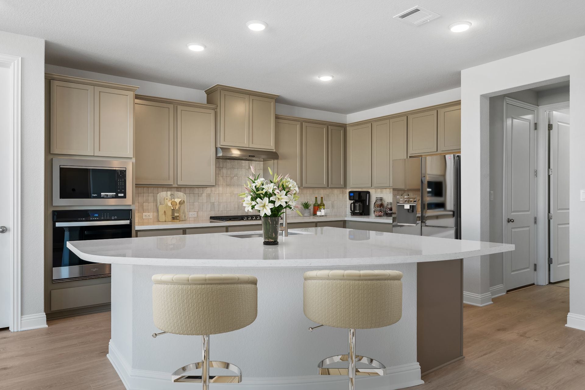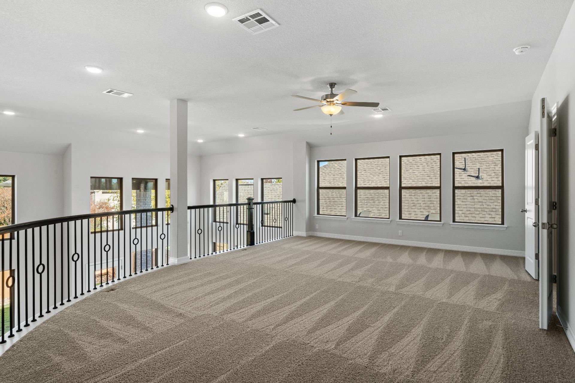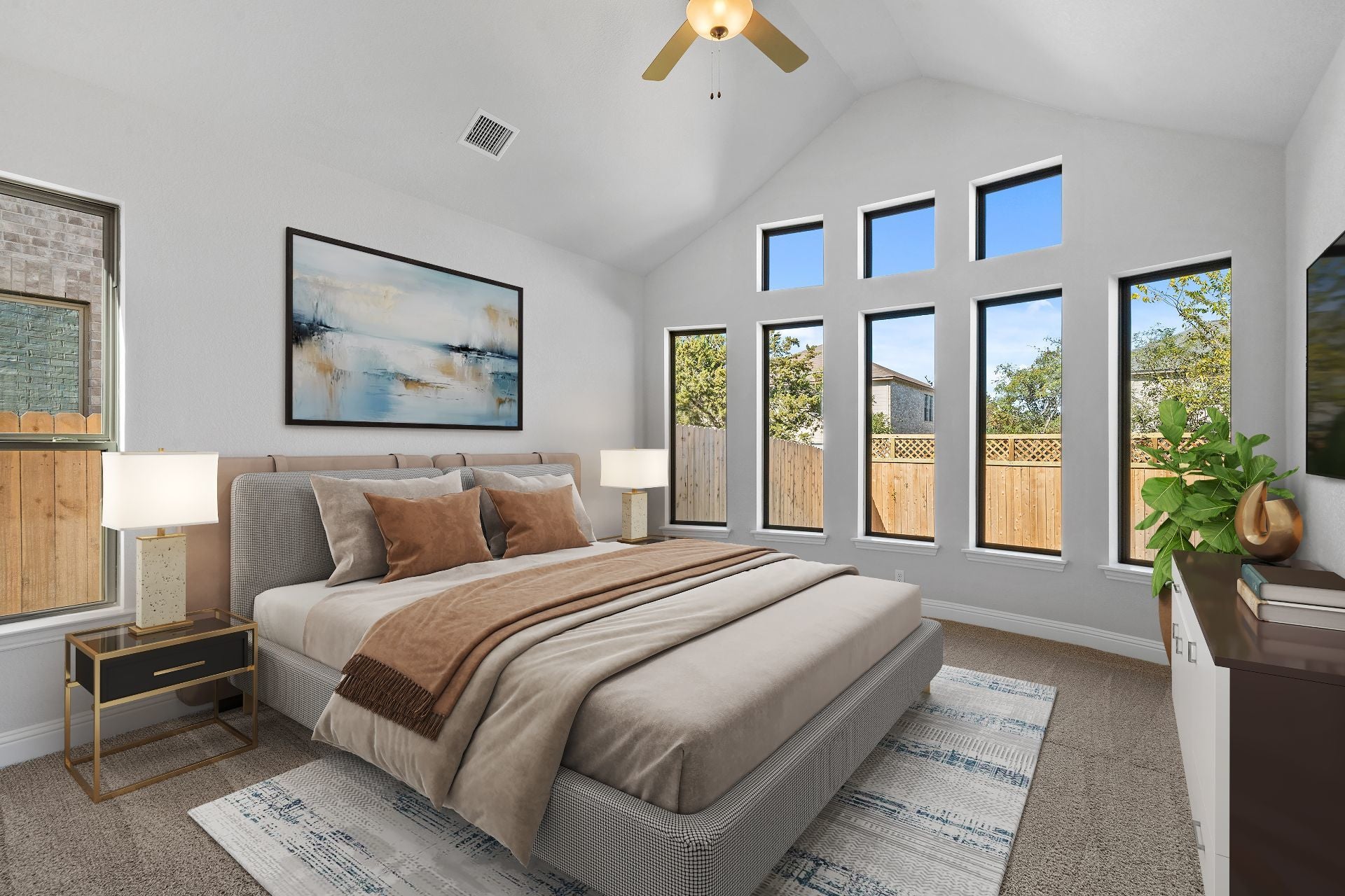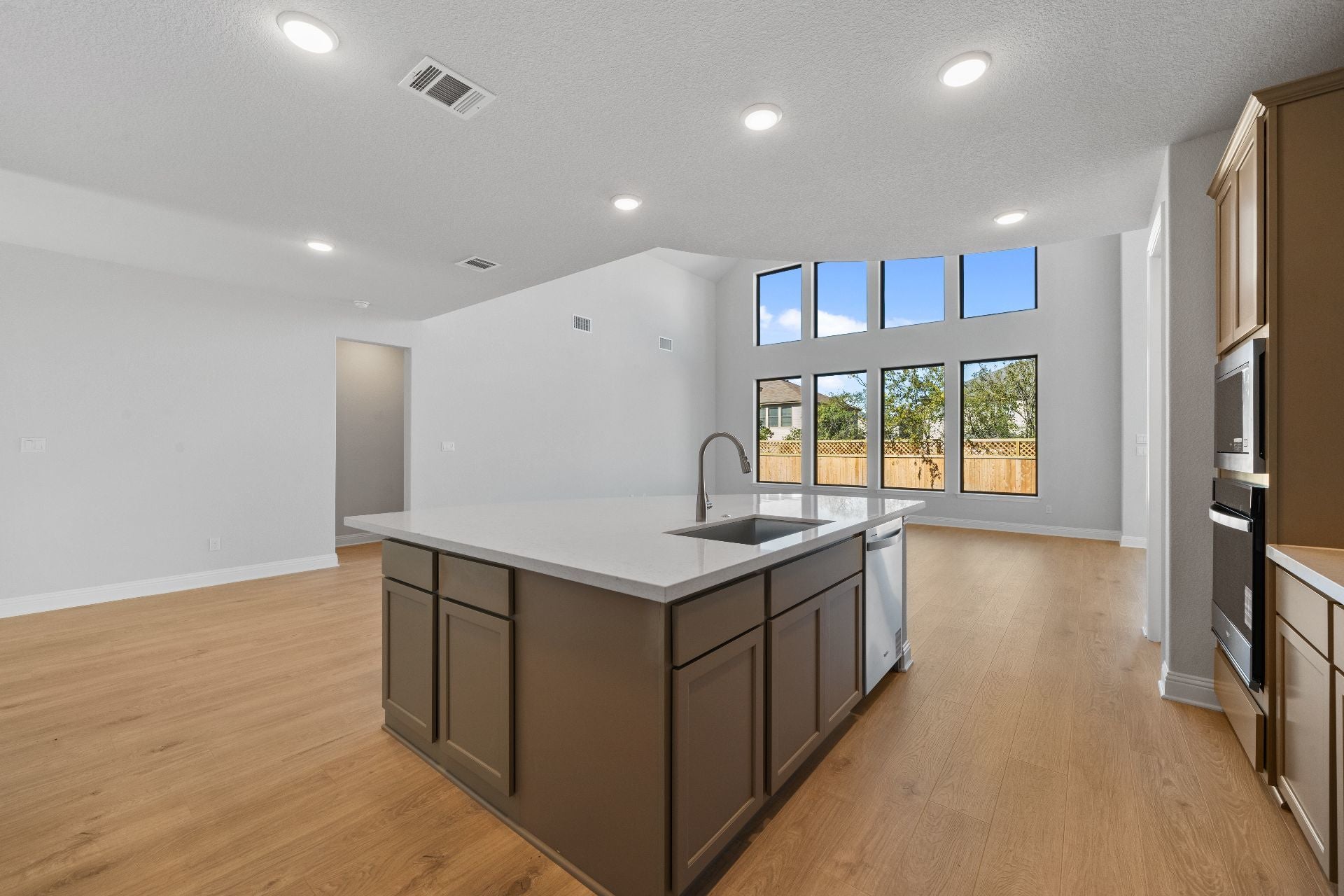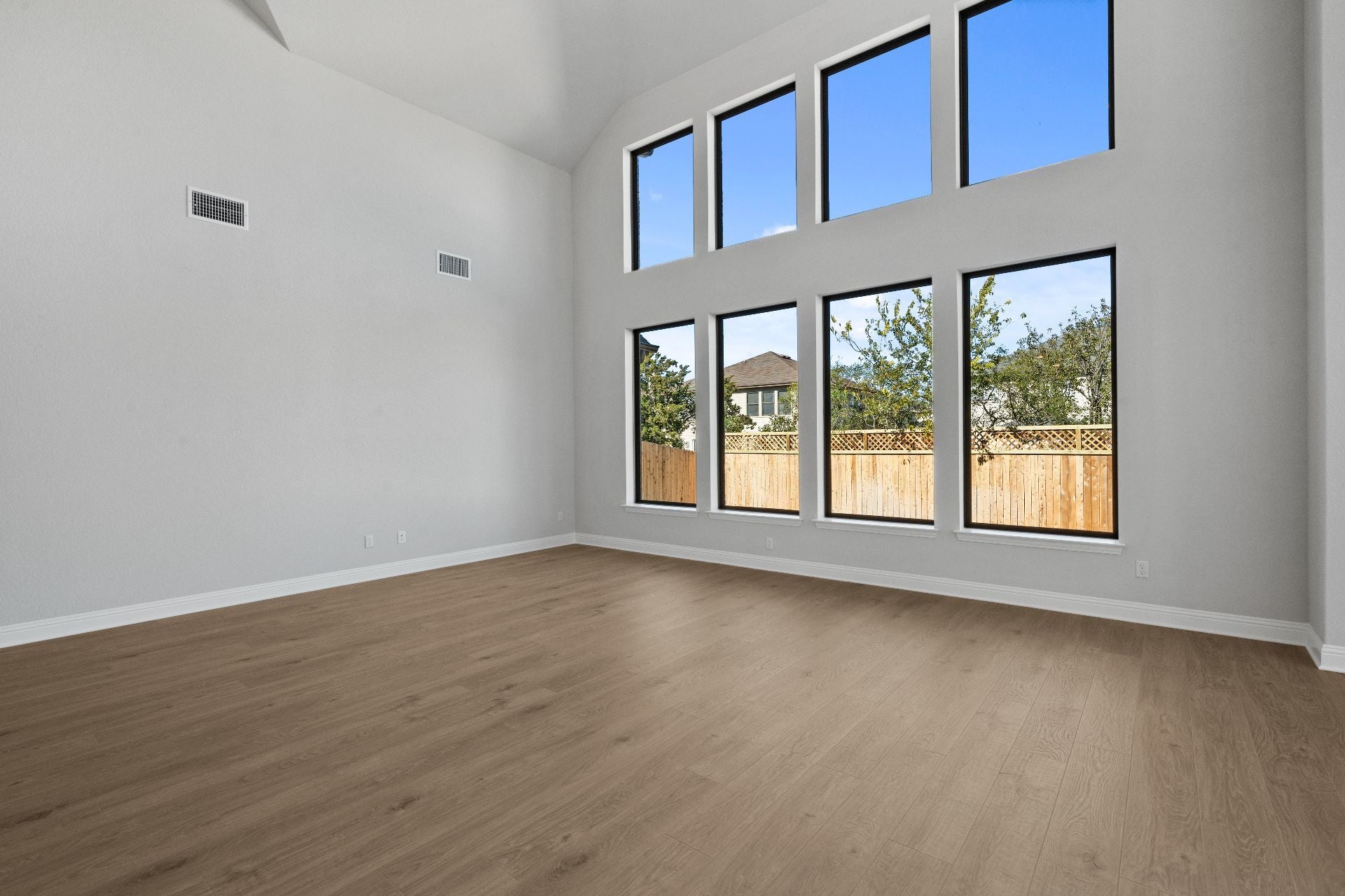 New Coventry Home! 1717 Sauterne Drive offers the most natural light and wide-open family room concept of any of the Coventry Homes plan designs. Located in Carneros Ranch, one of the only communities in Leander without a PID or MUD tax, this showstopper shines in spaciousness and beauty! The true heart of this home shines as you enter the front door. You will find gigantic ceilings, walls of windows, upgraded RevWood floors, iron balusters, stunning cabinetry, dazzling quartz tops, a gourmet kitchen, a large kitchen island, and 8-foot doors that add luxury to every detail. Comfort and convenience are priorities with an added mudset primary shower with seat, an oversized shower in the downstairs private guest suite, pre-plumbing for a future water softener, as well as pre-wiring for a future car charger. You will not be able to miss the enormous 17-foot-tall covered patio that is equipped with a gas connection and plenty of space for relaxing. This Winters home is finished to impress, so schedule your tour before someone else does! ** Ask us about our low interest rates & special financing! Visit Onsite for details – subject to change without notice. **