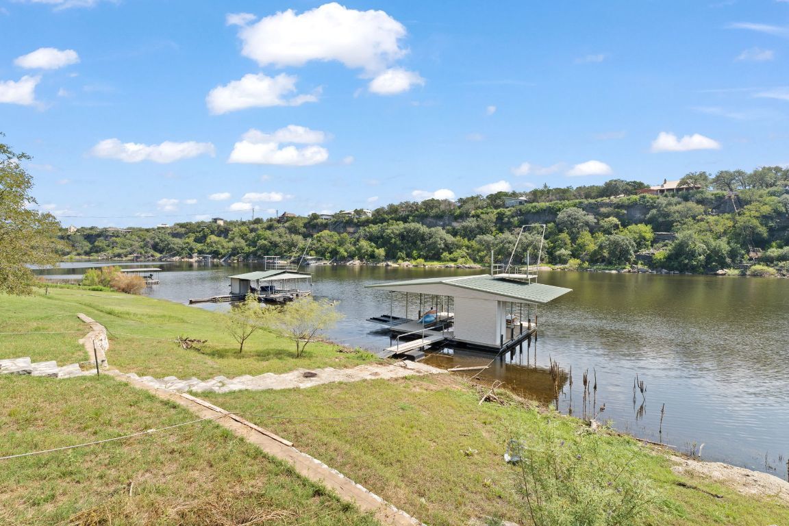 Gated Entrance into Paleface Ranch! Own a part of the Paleface Ranch with this one of a kind, approx. 3.362 ac. Waterfront lot with, like new, boat dock with swing and jet ski lift, along with locked storage room. The flatwork that has been done on these 2 lots combined into one, is nothing short of amazing. Drive right down a concrete driveway to a parking area below and just a few stone steps to the water's edge. Beach like by the water and plenty of area to entertain. Rock outcroppings from the cliff side is really spectacular! Possibly fossils millions of years old! VERY FEW LOTS WITH ALL THIS FLATWORK! Everything is in place to take it to the next level of finishes. Approx. 259 ft of waterfront on the beautiful Pedernales River, which once offered some of the best water skiing around the Hill Country. Build your dream home or make it the perfect lake house. Pale Ranch offers a 11.24 ac. home owners park with a boat ramp. Absolutely Incredible Property!