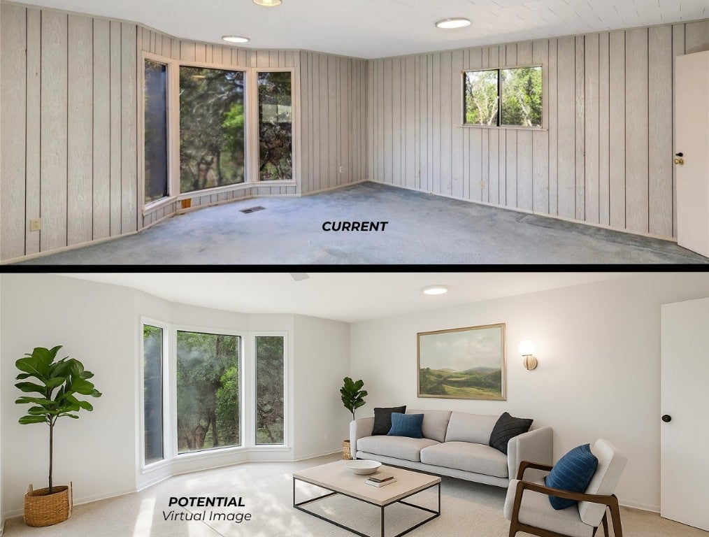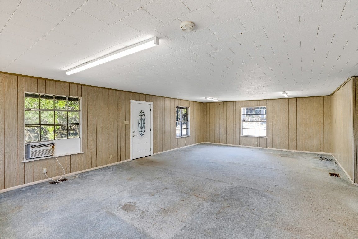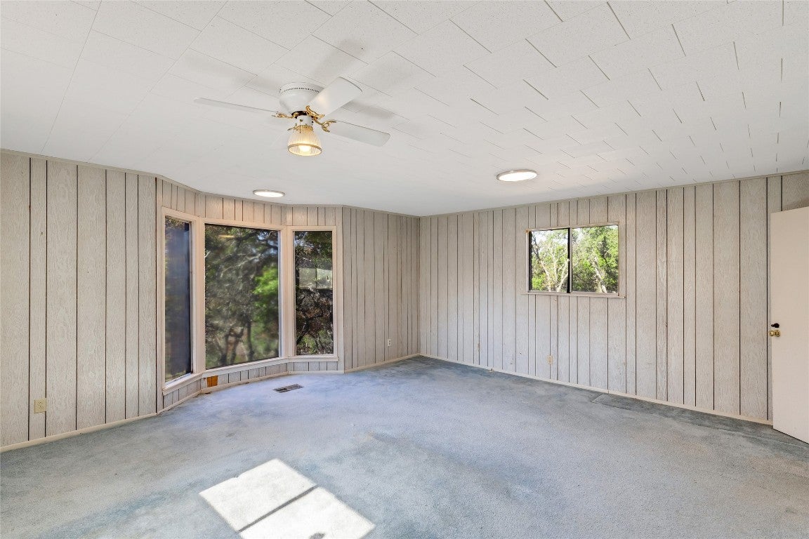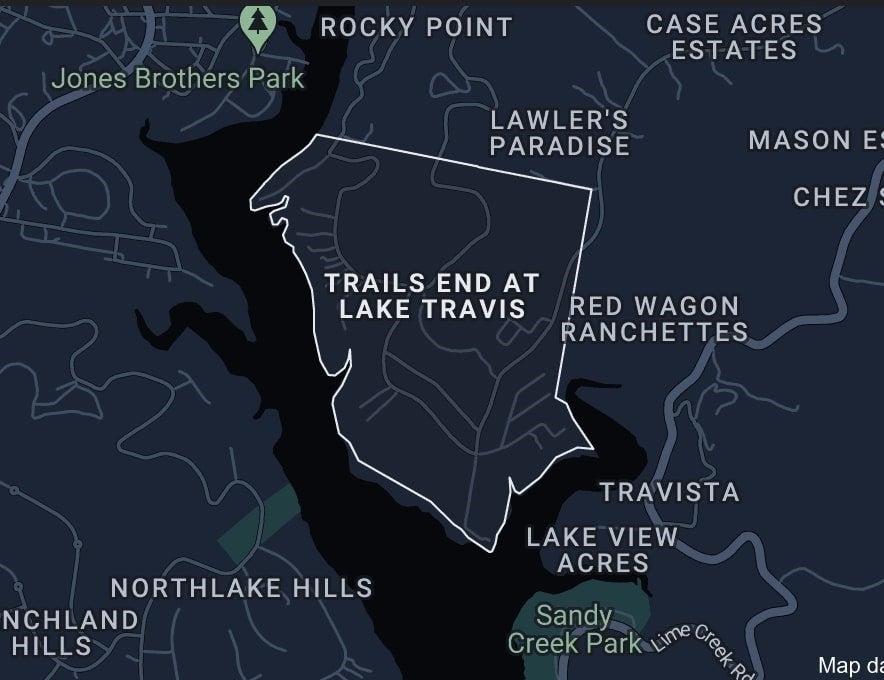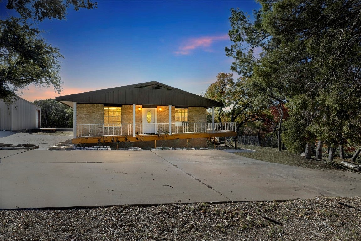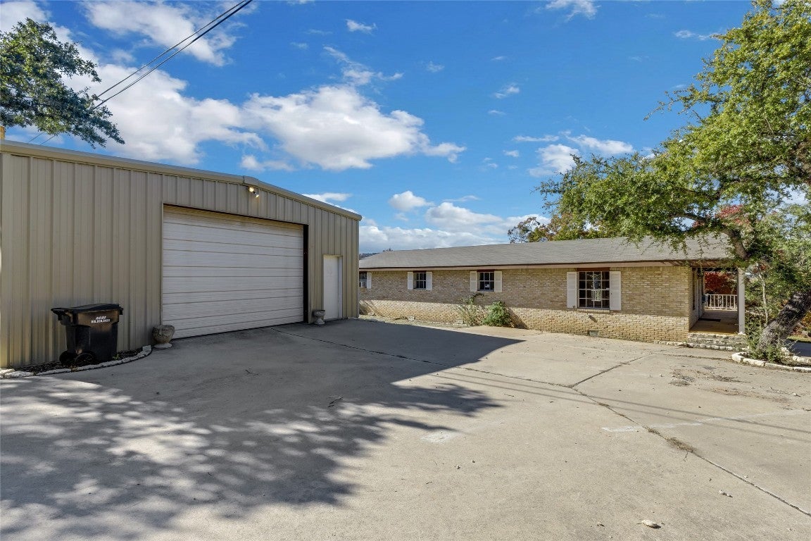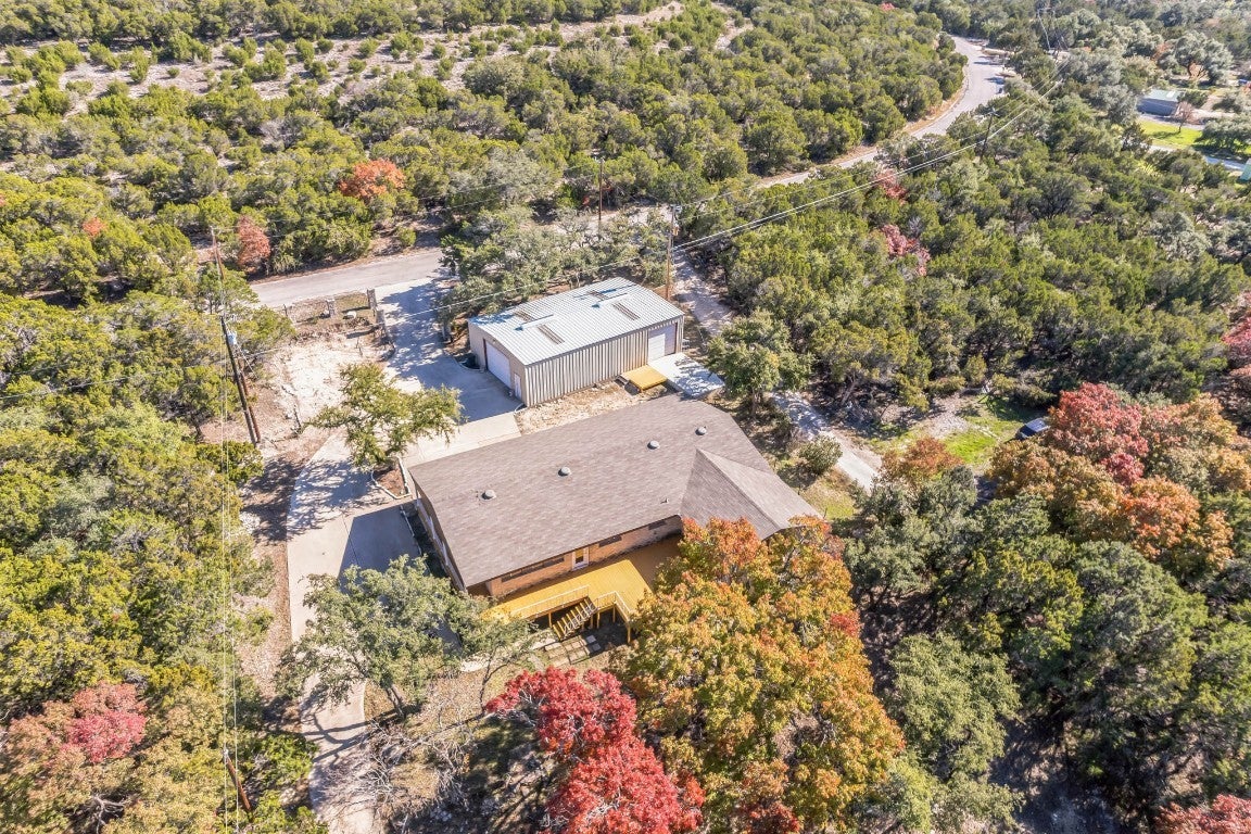 Rare opportunity to have lake living in Trails End on the shores of Lake Travis! As you enter the property, a large (1500 sf) highly functional powered workshop with two entry points and an extra slab is on the left. The 1 story, 4 bedroom house (2406 sf) is situated in the hills with grand views of the treed property down towards the lake. The house is all brick and has a grand deck on the lake side. Endless possibilities with this: build your dream home, put your own twist and touches on fixing up the existing house, possible short-term rental (STR), AirBNB, etc. Located around 30 miles of downtown Austin, you get access to major roadways, great schools, shopping, major employers, etc. We welcome you to come take a tour! Virtually Staged: Digital furnishings shown to suggest space use. All information provided is deemed reliable but is not guaranteed and should be independently verified.
