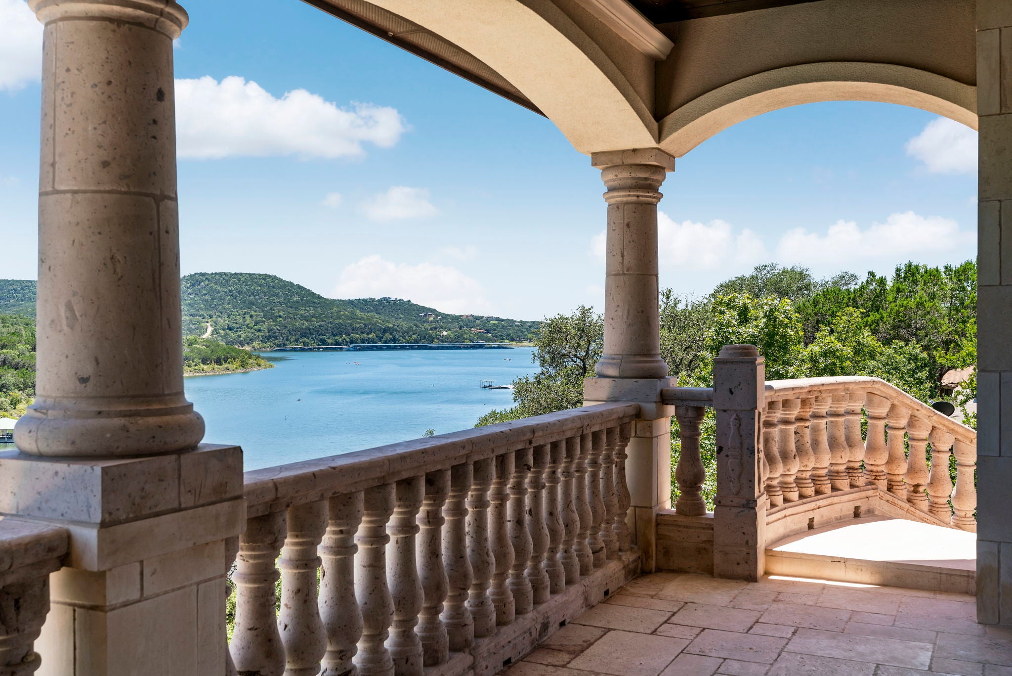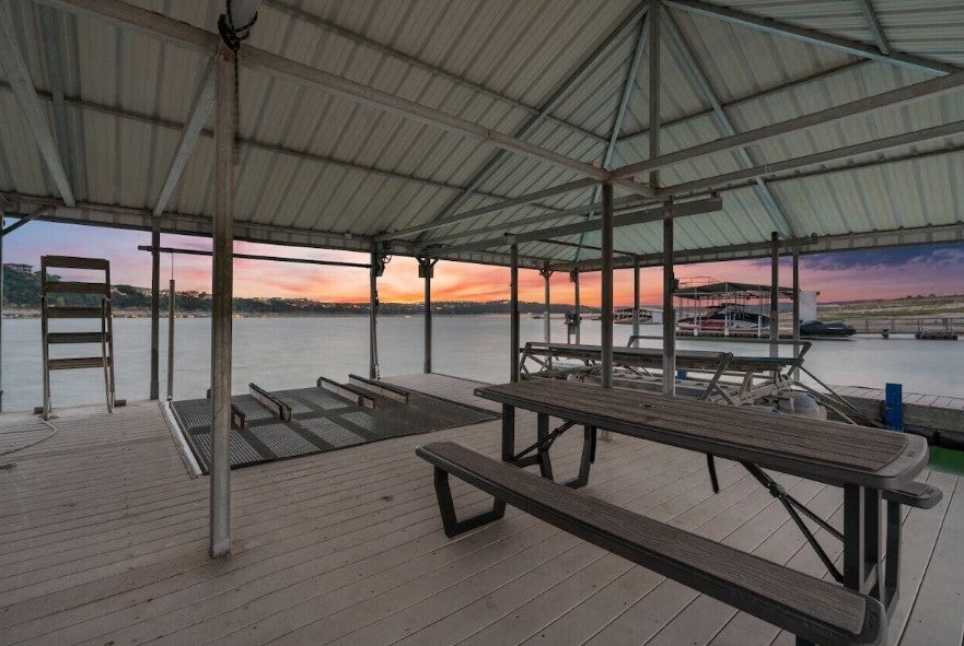 Unrestricted Lake Travis waterfront estate with private dock, panoramic water views, and exceptional short-term rental potential. Located on nearly 2 acres of premier Lake Travis shoreline, this rare property offers direct lake access with no restrictive HOA limitations, making it an outstanding opportunity for Airbnb, VRBO, luxury vacation rental income, or a private waterfront compound. Designed for both luxury living and investment flexibility, the estate functions beautifully as a primary residence, corporate retreat, multi-generational family compound, or high-performing income property in the Lake Travis short-term rental market. The 7,813-square-foot waterfront compound includes three separate structures: a 5,882 sq ft main residence, a 1,259 sq ft two-bedroom guest house, and a dedicated private gym, all set on a stunning 1.98-acre multi-tiered hillside property with sweeping Lake Travis views. The main residence features four ensuite bedrooms, a fifth flexible room, private elevator, theatre room, and a dramatic great room with floor-to-ceiling windows framing the lake, along with a chef’s kitchen equipped with Thermador appliances and custom cabinetry designed for entertaining. Outdoor amenities rival a private resort with a glass-view resort-style pool, firepit lounge, expansive terraces, steam sauna, and a private hillside tram leading directly to the exclusive dock and Lake Travis shoreline. The property is fully automated with Control4 smart home technology and offered fully furnished, creating a turn-key luxury lakefront estate ready for immediate enjoyment or short-term rental operation. With unrestricted use, private dock access, expansive acreage, and strong demand for Lake Travis vacation rentals, this exceptional waterfront estate offers rare lifestyle appeal combined with powerful long-term investment potential.