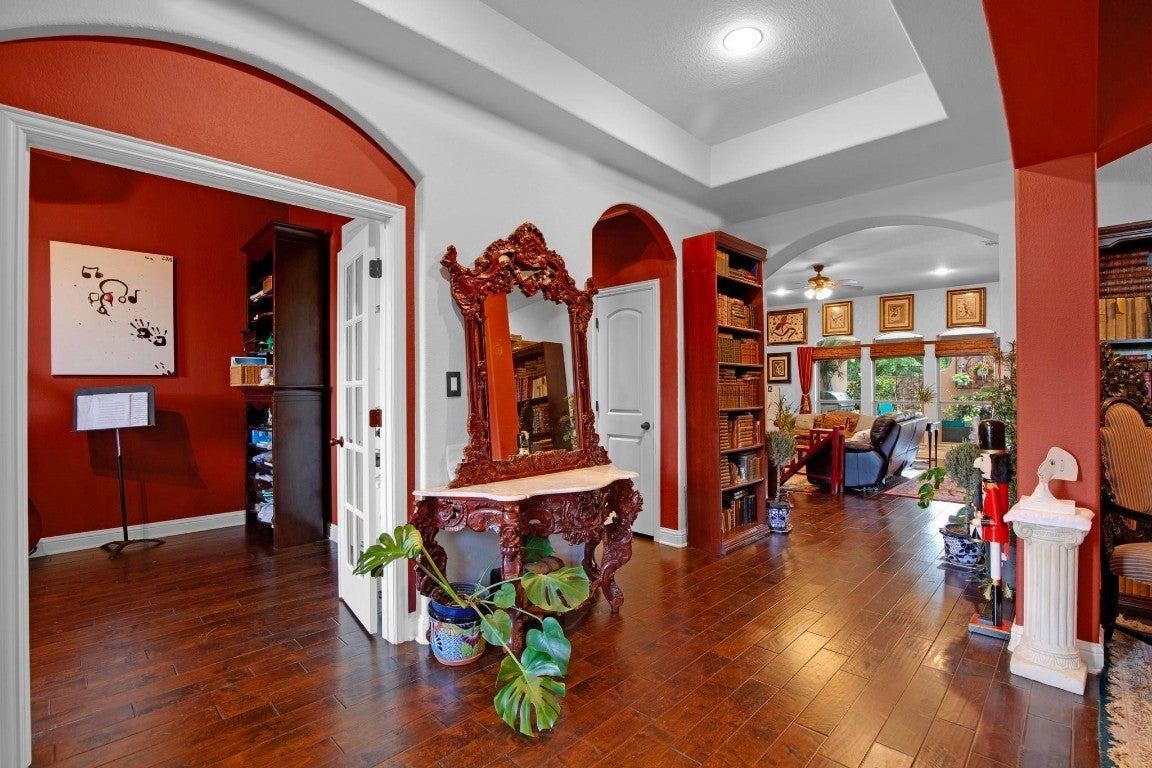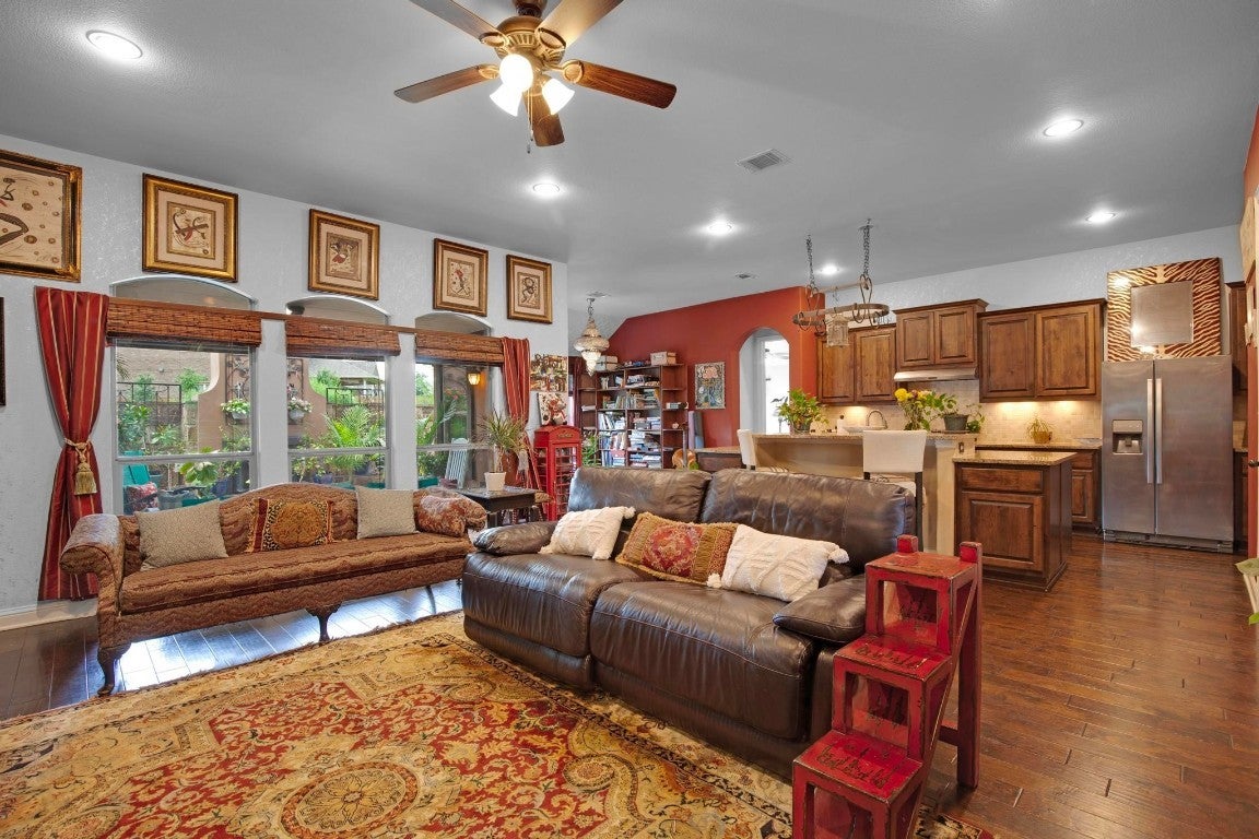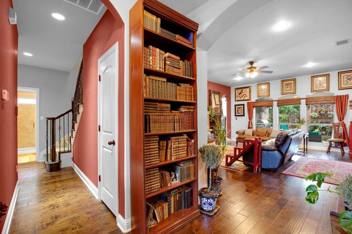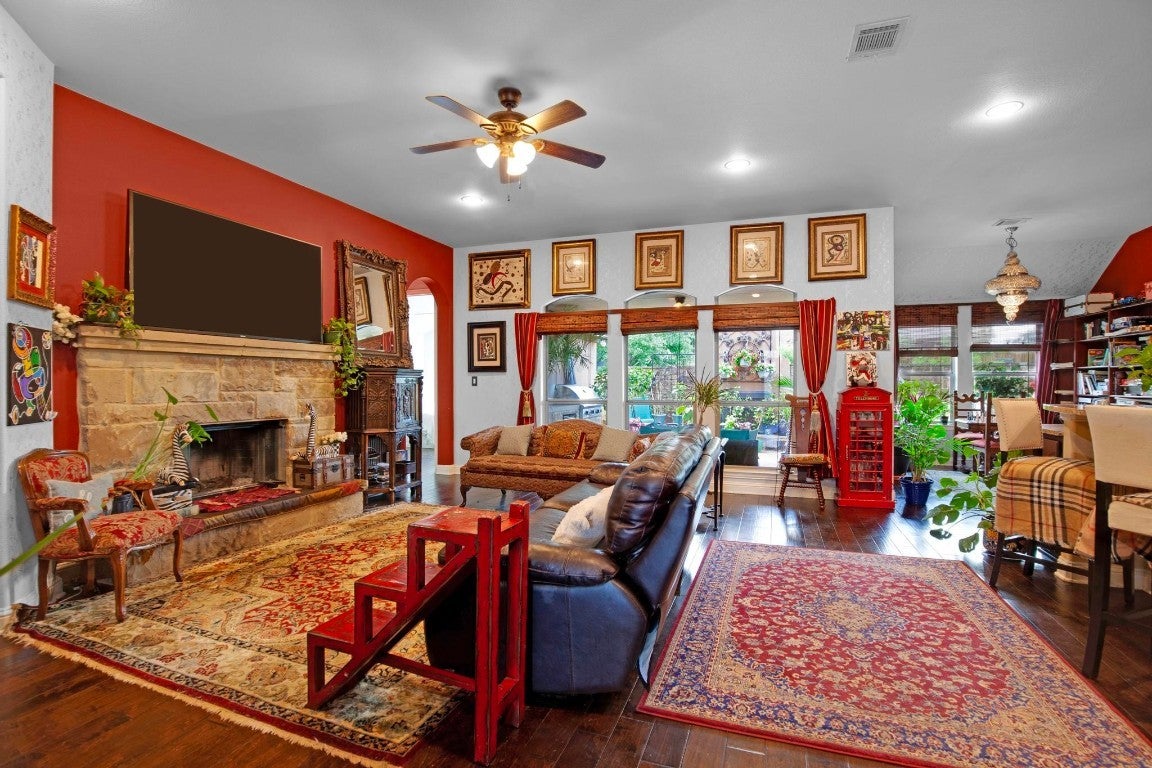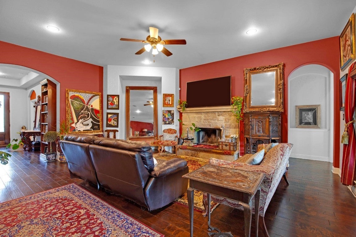 Luxury Living in Sweetwater – Spacious Two-Story with Exceptional Upgrades! Nestled in the highly sought-after Sweetwater community, this stunning Two-story home offers unparalleled comfort with bonus living spaces on the second floor. Boasting 4 bedrooms, 3.5 baths, a dedicated home office, and 3,497 sq. ft. of elegant living space, plus an additional 1,500 sq. ft. of flexible bonus areas, this home is designed for both relaxation and entertainment. The two upstairs bonus rooms provide endless possibilities—one can serve as a fifth bedroom, while the other is perfect for a theater room, game room, or oversized studio. Step inside to discover gorgeous hardwood floors, an open-concept family room, and a gourmet kitchen with granite countertops, a large center island with bar seating, stainless steel appliances, subway tile backsplash, and a spacious pantry. The owner’s suite on the main level features wood floors, a spa-like ensuite with a large walk-in shower, double vanity, and a generous walk-in closet. A private home office provides the perfect workspace for remote professionals. Outdoors, enjoy a fully covered patio with a built-in kitchen and fireplace, perfect for year-round entertaining. The property includes a two-car garage plus an additional garage ideal for a golf cart or small car. Sweetwater residents enjoy top-rated schools, resort-style amenities, pools, trails, parks, sports courts, and over 700 acres of preserved open space. Conveniently located near Bee Cave, Lakeway, and just 30 minutes from Downtown Austin. Don’t miss this rare opportunity—schedule your showing today!