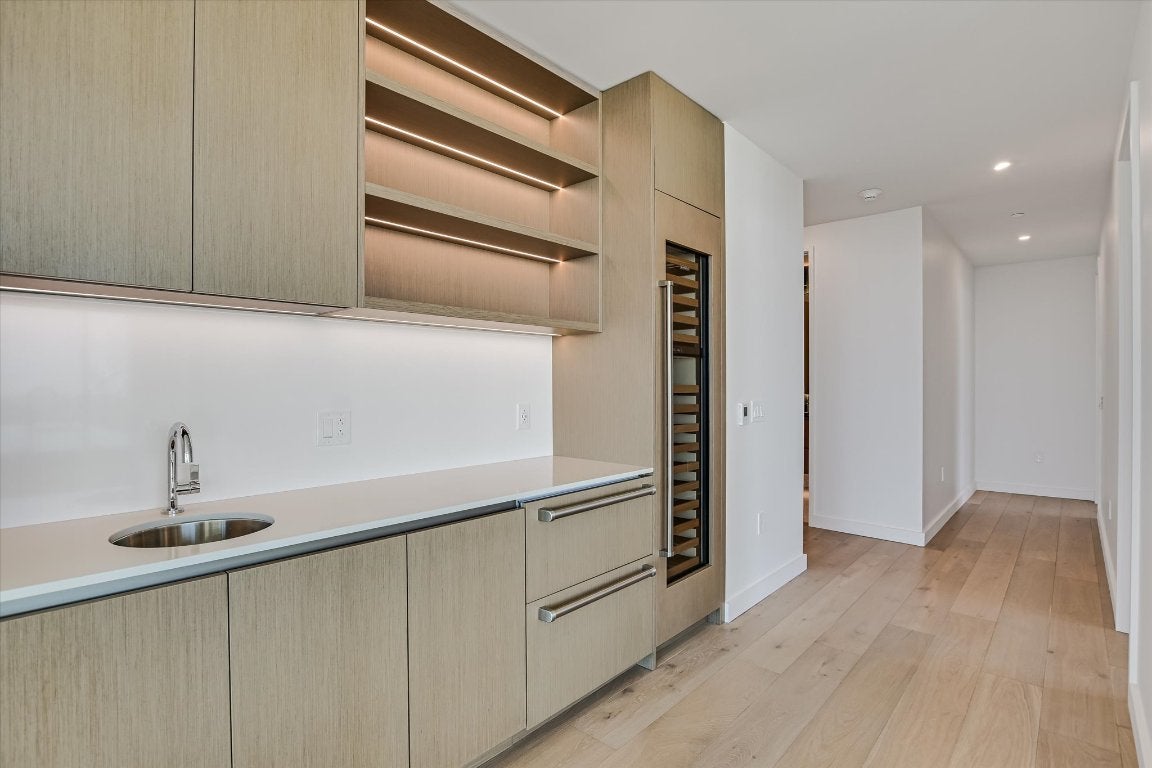 This 3-bedroom, 3.5-bath residence on the 43th floor of The Modern Austin Residences offers 2,324 square feet of refined interior living space and a 222-square-foot private balcony showcasing sweeping views of Lady Bird Lake, the Austin skyline, the State Capitol, and the Hill Country. Expansive floor-to-ceiling windows fill the home with natural light, accentuating elevated finishes and a seamless open-concept design. The chef’s kitchen is appointed with light quartz countertops, an upgraded full-height backsplash, and premium Wolf appliances. An upgraded wet bar enhances the space for effortless entertaining. Additional highlights include wide-plank hardwood flooring and two premium parking spaces with an EV charger. Residents of The Modern enjoy over 19,000 square feet of curated amenities across three levels, including a 25-meter lap pool and spa, fitness center, yoga studio, sky lounge, indoor and outdoor lounges, dog park, business center, and 24/7 concierge service. Perfectly located in the Rainey Street District, The Modern offers unmatched access to Austin’s best dining, nightlife, and the Lady Bird Lake trail.