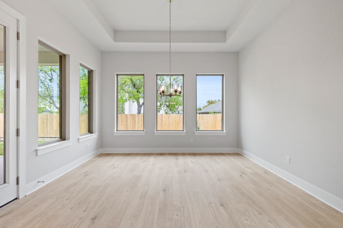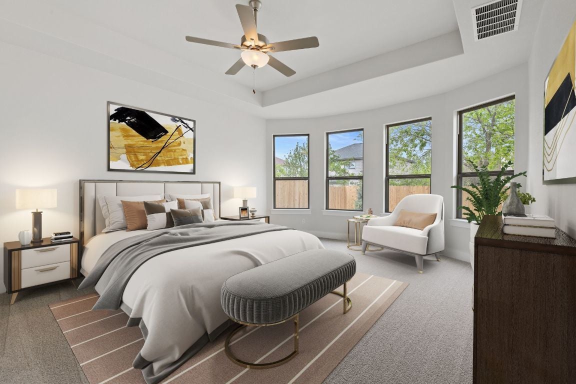 New Coventry Home! Kitchen and garage enthusiasts will rejoice at their dream home located on a quiet part of Sauterne Drive in the booming City of Leander. The Carneros Ranch community has a low tax rate of only 2.019% and unparalleled value in amenities that include 2 pools and a Clubhouse for only $53/month. Custom stone accents and a widened 3-car garage and driveway give this home an elegant curb appeal to impress and comfortably fit all of your guests or family. Marvel at the RevWood flooring covering most areas of this home and upgraded 8' doors showcasing this home’s popped-up ceiling detail and oversized baseboards! Kitchen lovers will be spoiled with this home’s unique and separate private working kitchen. Not to mention the rest of this gourmet kitchen that includes built-in Whirlpool appliances, an oversized island dressed with a white quartz top, bright and tall cabinets, and a wonderfully tiled backsplash. An attractive primary suite provides a spacious walk-in closet, mudset shower with a seat, corner tub, and separate raised vanities. The covered patio is as large and equipped with a natural gas hookup. Schedule your tour today! ** Ask us about our low interest rates & special financing! Visit Onsite for details – subject to change without notice. **