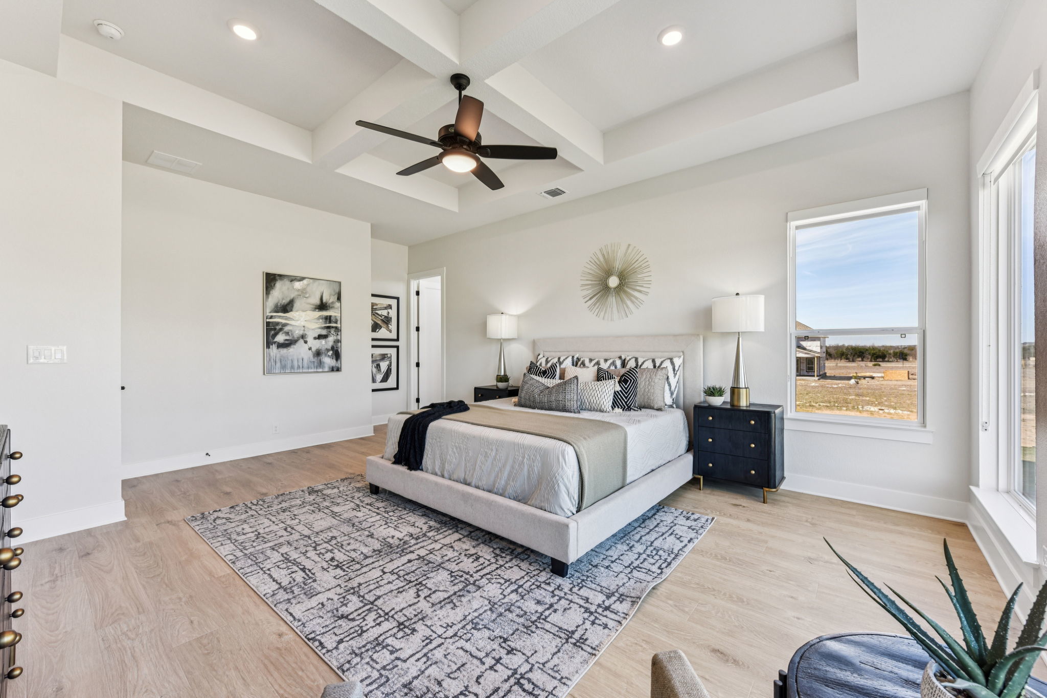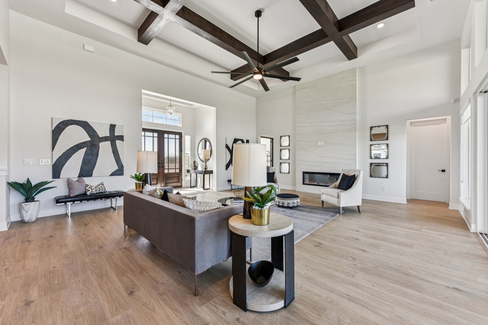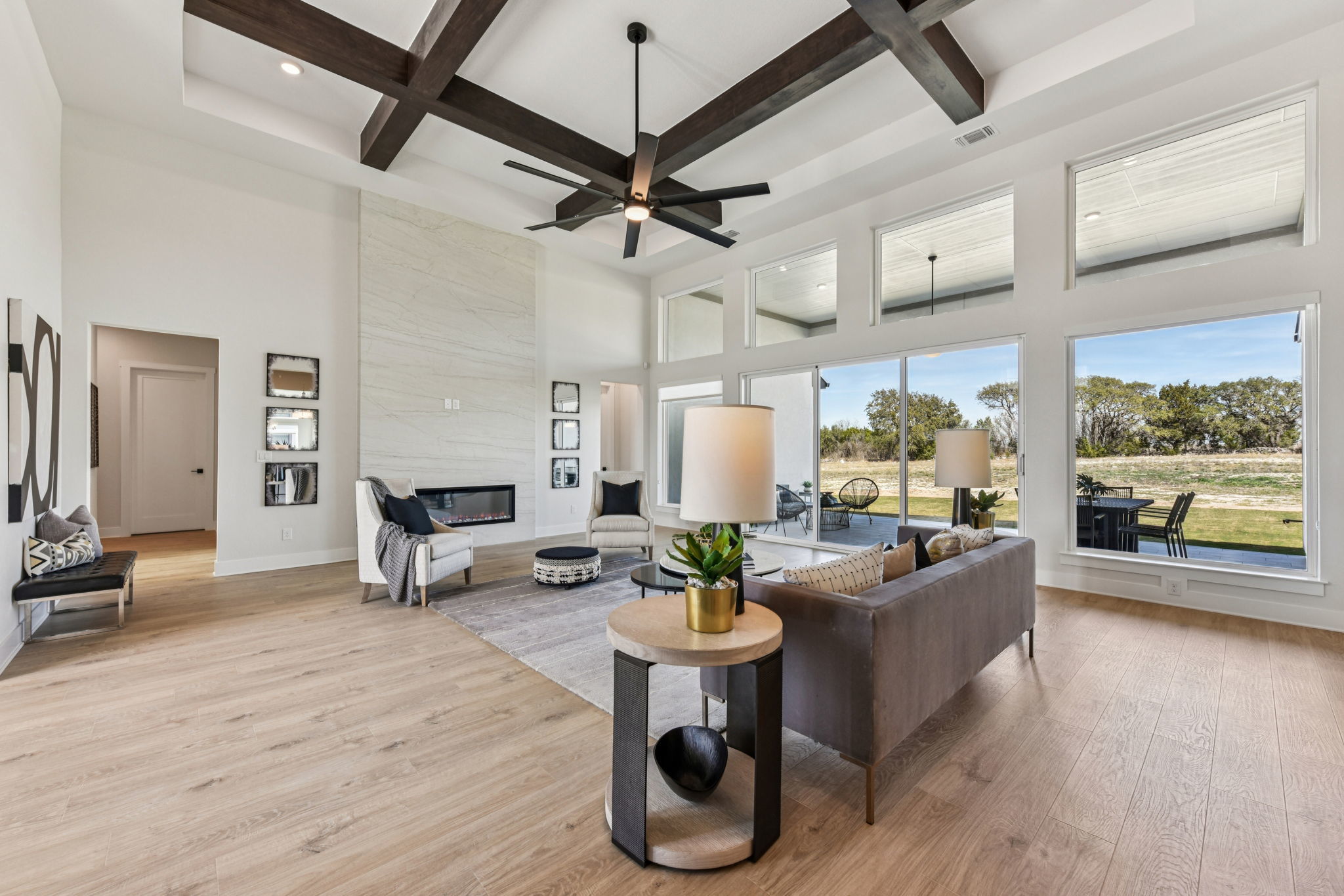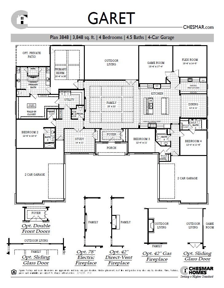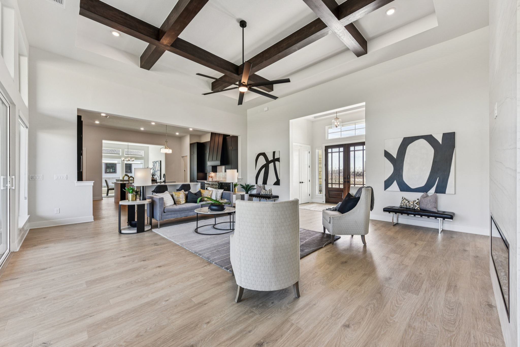 MOVE IN READY | 4 Beds | 4.5 Baths | Study | Game Room | Flex Room | 1-Story | 4-Car Split Garage | 3,848 Sq Ft | The Garet is an expansive one-story acreage home offering 3,848 sq ft of luxurious, open living space. Featuring 4 bedrooms, 4.5 bathrooms, a dedicated study, game room, flex room, and a 4-car split garage, this home blends elevated design with everyday livability. From the moment you step through the double front doors, you’re welcomed by an entrance foyer leading to generous, light-filled living spaces. The family room, with its pine-beamed ceiling and electric fireplace, anchors the home and opens to the massive covered outdoor living area through three 12’ vinyl sliding glass doors—perfect for entertaining or relaxing. The chef-inspired kitchen features a French Door refrigerator with cabinet panels, double waterfall islands, upgraded quartz countertops, LED under/over cabinet lighting, and ample upgraded cabinetry with soft-close doors and drawers. A separate prep kitchen/pantry adds even more functionality. The adjacent dining space flows seamlessly into the open-concept design. The primary suite is a luxurious retreat with pine beam ceilings and an optional private patio. The spa-style ensuite bath includes a frameless mudset pass-through shower, soaking tub, dual vanities with linen cabinet, and a large walk-in closet with center island and built-in shelves that is connected to the utility room. Additional features include: Covered outdoor living with optional kitchen/fireplace 4-car garage split into two 2-car bays Whole house gutters Wood grain garage doors Study with French doors, plus a large game room & versatile flex room The Garet combines timeless design with modern function—ready to complement your acreage lifestyle. Ask about our current buyer incentives!