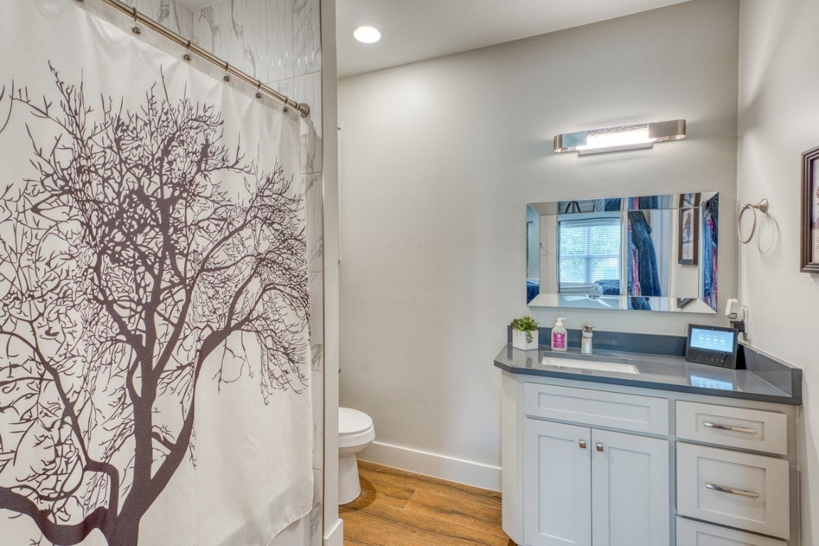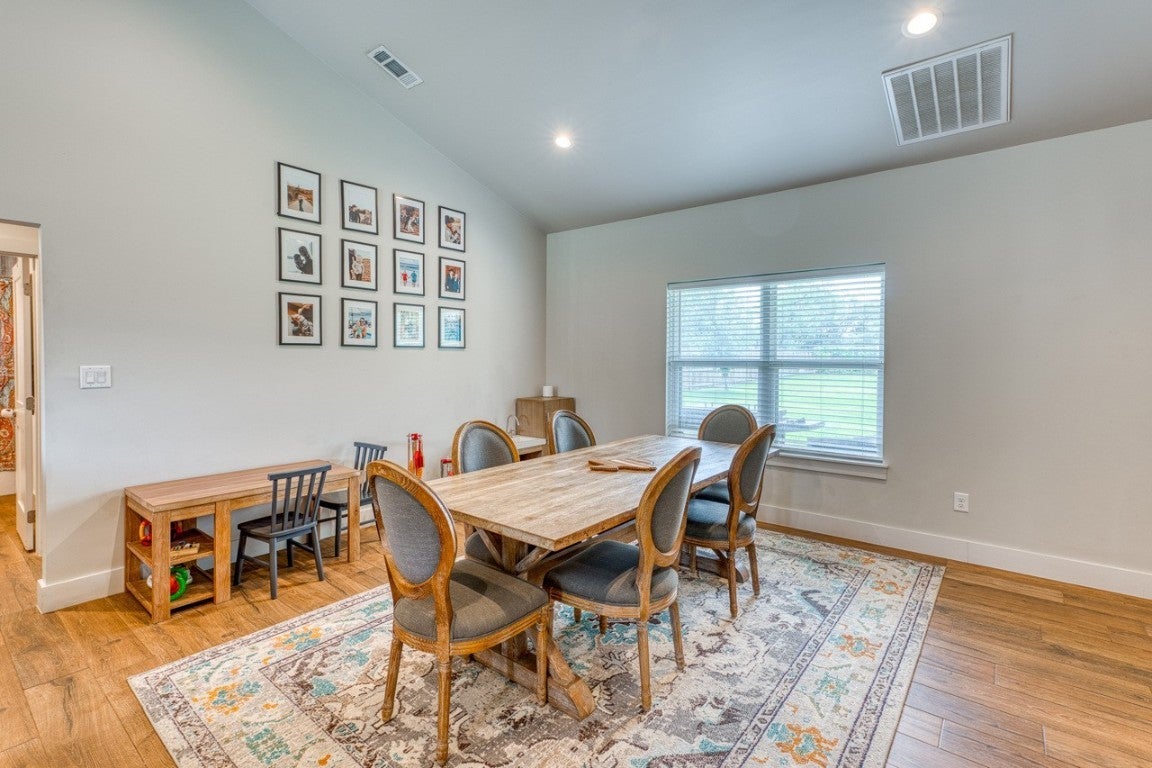 You don't want to miss this pristine new construction | AND SO CHARMING | home WITH A 5.125% ASSUMABLE NOTE just seconds away from Crockett Park in Granite Shoals. This gently lived in and well laid out home will wow you from the circular drive in and walk up to the covered front porch. Inside you will find a split bedroom plan, high vaulted ceilings in the main living and dining areas, open kitchen with granite counters and stainless steel appliances, recessed lighting, lots of storage, and hardwood tile floors throughout. Outside you will find multiple entertaining areas and a beautiful newly added flagstone patio. The owners have already done the hard work in the oversized .34 AC yard stretching street to street. Full underground automatic sprinkler system, thriving grass, trees, garden area, and a chicken coop! The oversized one car garage opens to the laundry room and there's also a large crushed granite parking area with gates for access in the back. Check out the walkable park down the street with a boat ramp, fishing areas, and playscape. This is the one!