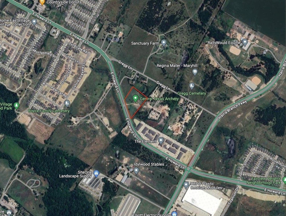 Introducing a prime commercial property spanning 4.54 acres at the northeast edge of Austin in Manor, Texas. Situated within Austin's ETJ just off the thriving corridor near East Parmer Lane, the location boasts proximity to major employers like Samsung, Tesla, Amazon, and Applied Materials. This high-traffic area is at the heart of Austin's rapid growth, with easy access to highways and surrounded by new housing developments such as the forthcoming Element apartment complex on the same stretch of Howard Lane. Being outside city limits within the ETJ means no city restrictions, further enhancing its appeal for investment and development opportunities amidst Northeast Austin and Manor's booming population. This site is located close to the upcoming Walmart Supercenter & Manor Crossing, which is set to include HEB, Home Depot, and 600 apartments. It is also centrally positioned between the $17B Samsung chip plant in Taylor and the Tesla Gigafactory, making it a highly sought-after investment opportunity in a rapidly developing area.