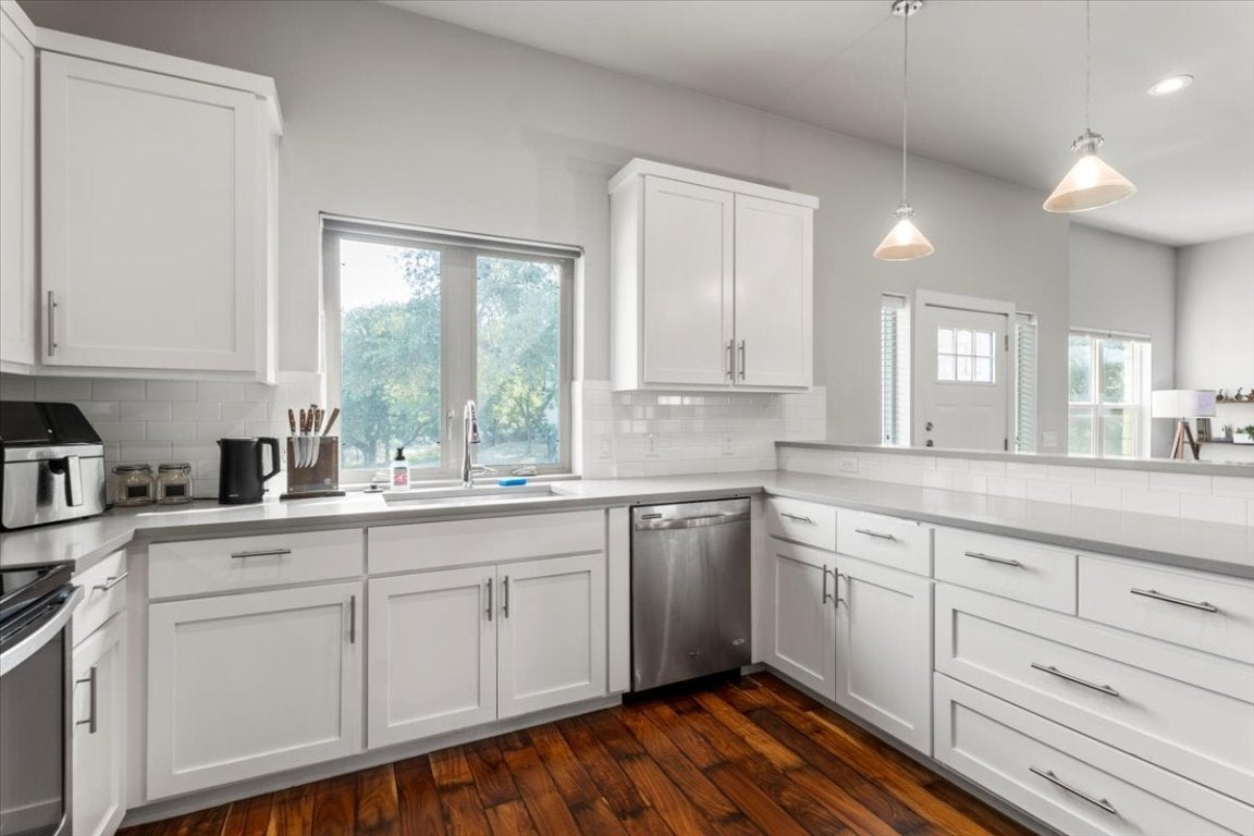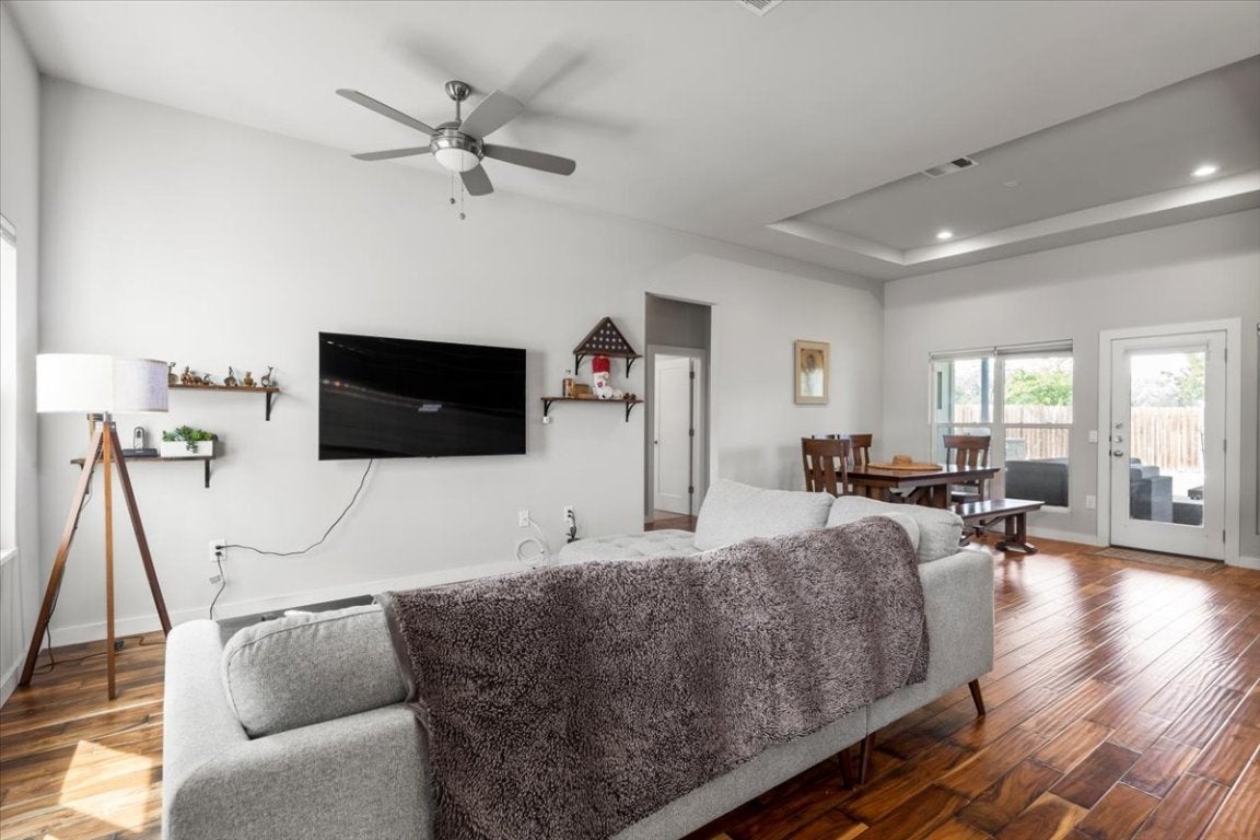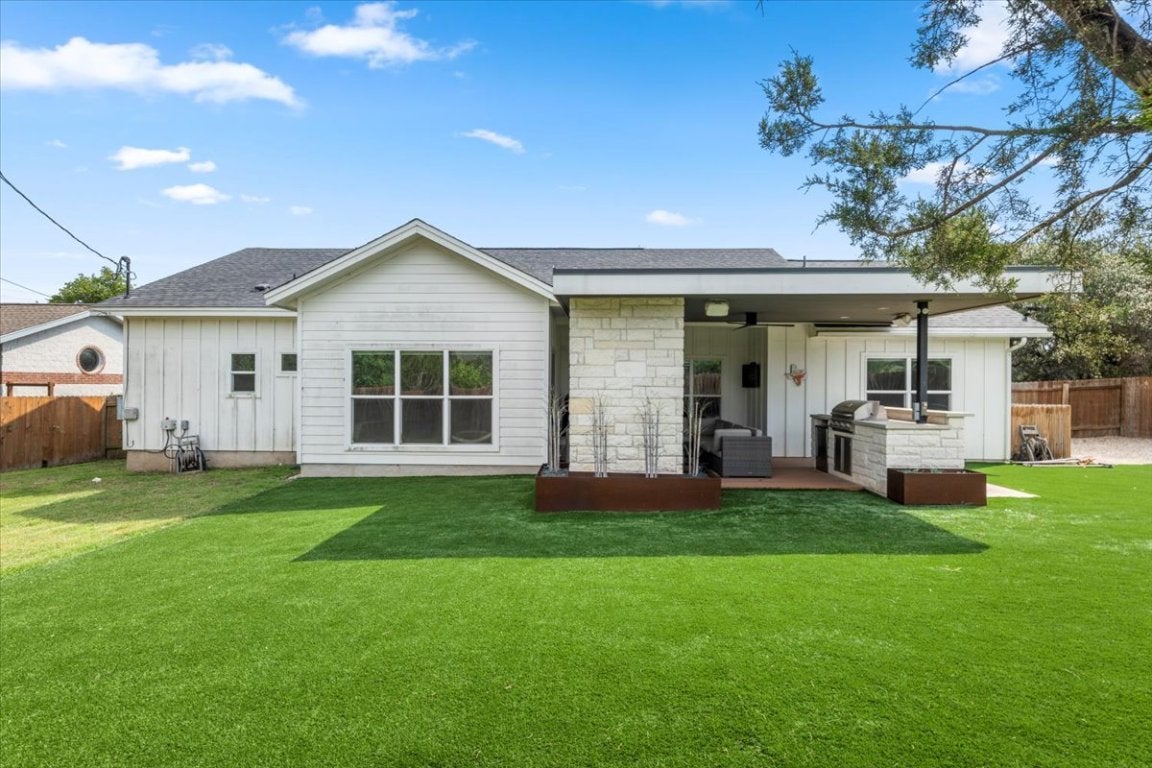 ***Also FOR LEASE AT $2,995 PER MONTH*** Modern charm meets Hill Country tranquility at this beautifully designed 3-bedroom, 2-bath home nestled on a private 0.255-acre lot in the highly sought-after Lake Travis ISD. Built in 2016, this 1,611 sq ft residence features a striking modern exterior, an expanded driveway, and a spacious garage—offering both style and functionality. Step inside to discover open-concept living with contemporary finishes, including sleek cabinetry, updated fixtures, and warm wood flooring. The kitchen flows seamlessly into the living and dining areas, perfect for both daily living and entertaining. Enjoy the Texas outdoors year-round on the custom covered back patio, complete with a mounted TV, wired for surround sound, and inviting outdoor living area—ideal for gatherings or quiet evenings. With no HOA and an unbeatable location just minutes from Lake Travis, shopping, and dining, this property offers the freedom and lifestyle you've been looking for. Welcome to 15202 Cavalier Canyon Drive—where modern comfort meets natural serenity.