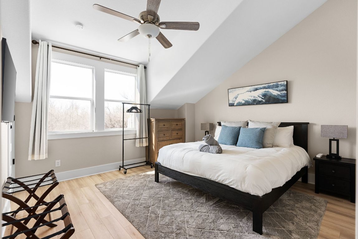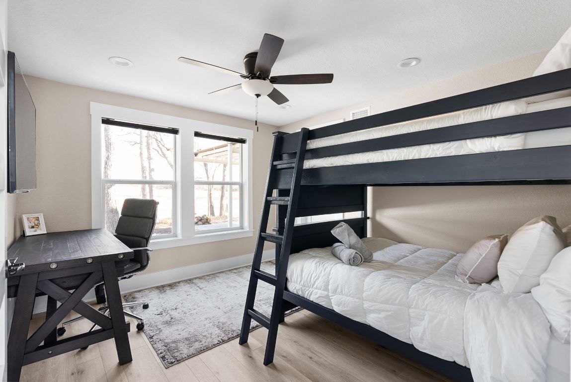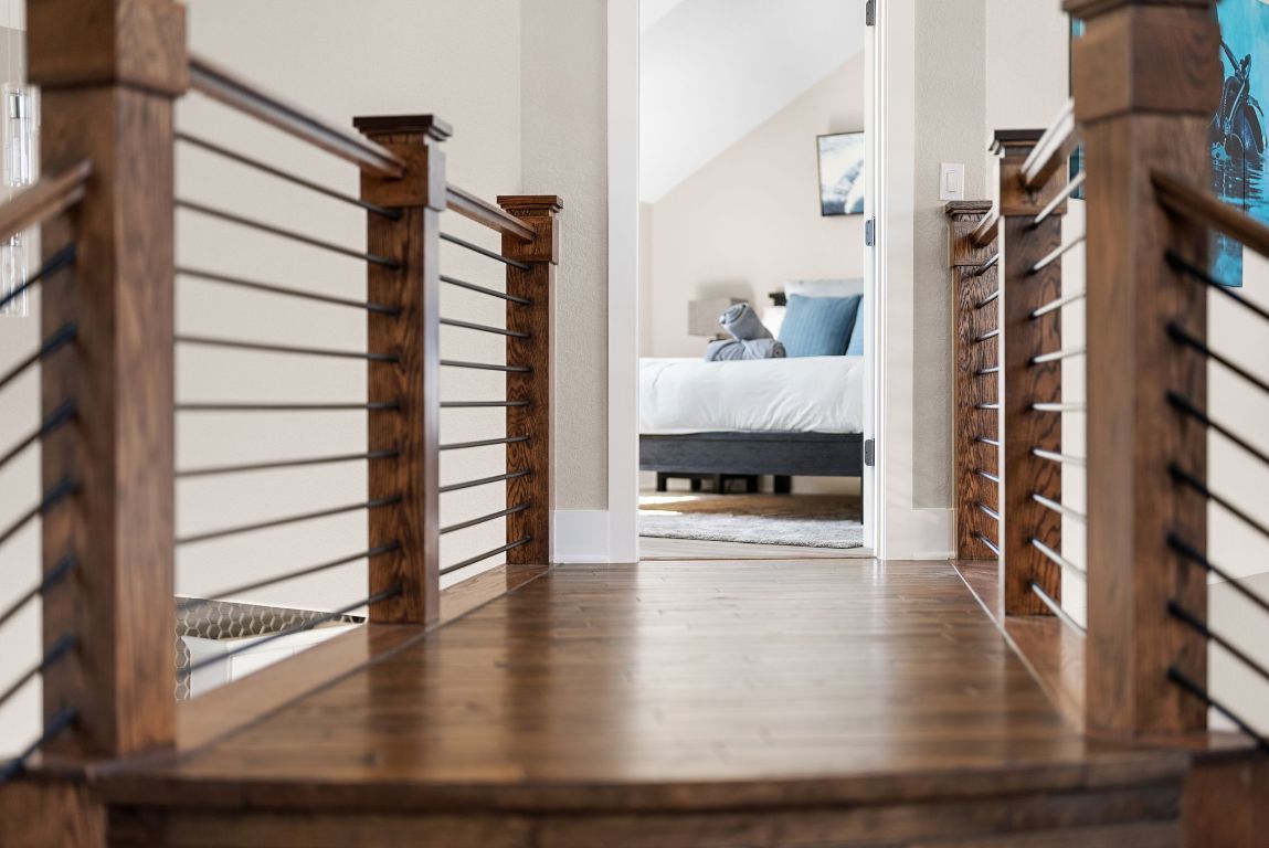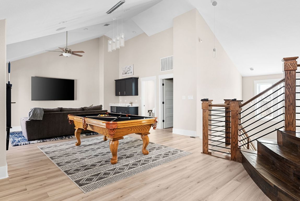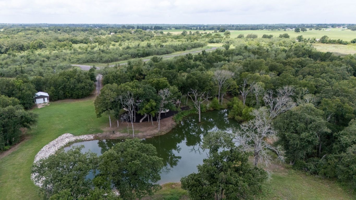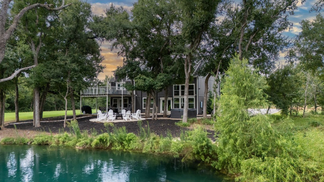 Offering up to $10,000 seller concession! Escape to your private oasis at this exceptional modern ranch estate, perfectly situated in the charming community of Elgin, Texas. This property offers the ultimate blend of serene country living and sophisticated modern comfort. Step inside this contemporary residence, where a striking dark exterior with crisp white trim sets the tone. Expansive windows throughout the home frame picturesque views, filling the open-concept interiors with abundant natural light. Discover high ceilings and elegant wood-look flooring that create a bright and flowing ambiance. The heart of the home is a stylish kitchen, featuring sleek white cabinetry, gleaming white countertops, and a captivating black hexagonal tile backsplash. A spacious island with a black sink and faucet anchors this functional space, perfectly positioned to connect with adjacent living and dining areas, ideal for gatherings. An inviting upper level reveals a versatile bonus room, offering a dedicated entertainment hub. The home provides comfortable bedroom retreats, including a master suite with direct outdoor access and laundry facilities located conveniently in the master closet. Bathrooms boast modern finishes; the main bath features a double vanity with wood cabinetry, mirrors, and a distinctive dark blue accent wall, alongside a well-appointed walk-in shower. Outside, the estate truly shines with its serene pond and multiple patio areas designed for enjoyment. Gather around the charming fire pit with Adirondack chairs, unwind in the private hot tub, or refresh in the outdoor shower. Dedicated spaces equipped for grilling and smoking provide endless opportunities for al fresco entertaining. This remarkable estate promises a private setting and a lifestyle rich in outdoor recreation perfect for entertaining guests and where you can see wildlife such as Deer and wild turkeys. Only 3 miles East of off vibrant downtown Elgin District.