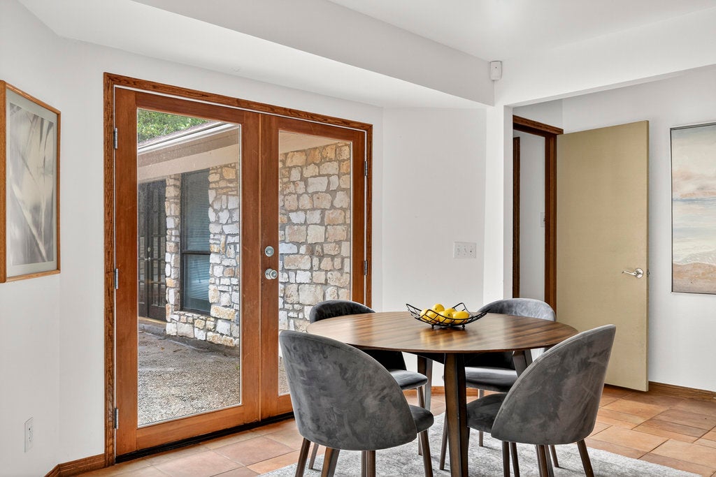 Perched above a beautiful tree-lined street in Lost Creek, this incredible home rests on an expansive 1/3-acre lot, offering hilltop views from the front porch and an impressive backyard oasis. The spacious home is thoughtfully designed on one level, featuring two living areas and two dining spaces, maximizing functionality to suit your lifestyle needs. The open-concept family room stands out with an impressive Nanawall door that fully opens to reveal the stunning outdoor haven. With vaulted ceilings and charming built-ins, the space exudes an open and airy aesthetic. The seamless flow from the family room to the kitchen, dining areas, and outdoor space makes entertaining not only a breeze, but an experience you’ll crave time and time again. Enjoy a private backyard designed for poolside relaxation, weekend barbecues, morning coffee, and evening gatherings. Highlights include charming stonework, an al fresco patio, privacy fencing, and numerous trees that ensure seclusion. The primary suite offers a peaceful retreat, separated from the secondary bedrooms. French doors provide direct access to the pool, ideal for morning coffee or unwinding at night just steps away. Positioned at the front of the home, the secondary bedrooms ensure privacy and comfort. Set in coveted Eanes ISD and close to parks, greenbelts/trails, golf, dining, and retail. Schedule a showing today and come fall in love with everything this home has to offer!