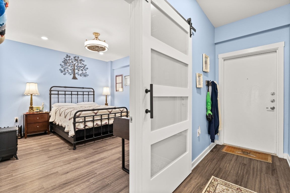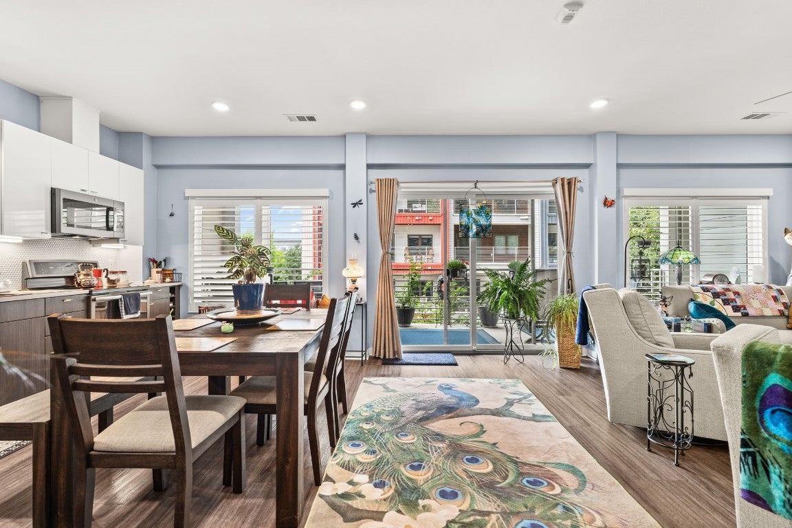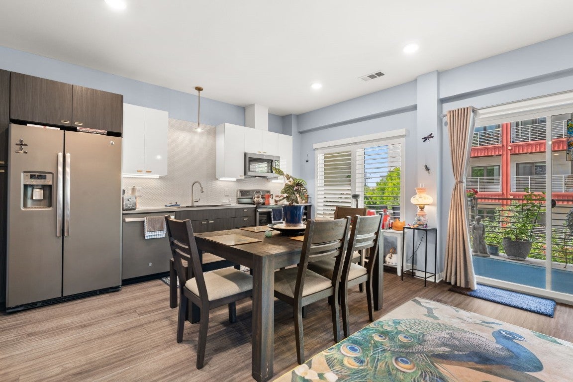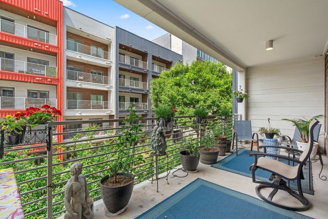 Experience the perks of urban luxury living and a relaxed atmosphere in this S. Congress gem! This spacious 2 bed, 2 bath end-unit condo in Bldg 3 overlooks the beautiful courtyard area, and has sleek upgrades throughout! Enjoy the open air ceiling of building 3, which has its own entrance as well as an attached private parking garage where the two assigned parking spaces are located next to one another right by the stairs and elevator! The entryway opens to a hallway where the bedrooms and 2 full baths are located, and leads to the light and bright open living area, kitchen, and large balcony. Recently installed custom plantation shutters showcase the windows lining the back wall that span the unit. The kitchen has stainless steel appliances, including a new microwave, dishwasher, and touch-less sink faucet, quartz countertops, a chic penny-tile backsplash, under-cabinet lighting, and sleek two-tone cabinets. Behind the custom barn door dressed with sleek black hardware is the primary suite, painted a soft peaceful tone with a generously-sized closet, an ensuite bathroom with a walk-in shower, and a spacious counter-top and dual vanity with lots of storage space. Thoughtfully located opposite of the owner’s suite is the nicely-sized guest bedroom and adjacent full bath! The expansive covered balcony spans the length of the unit with views of the well-maintained courtyard below with heritage oak trees, grills, and a modern wall fireplace for residents to enjoy. Many convenient perks come with living at the Public Condos besides the awesome location and walkability! From Safe Badge Protected Access and gates throughout, to a rooftop pool (currently under construction), a renovated fully equipped gym, a cafe/lounge, yoga studio, dog park, and courtyard retreat! HOA litigation ending Jan. 2026 regarding pool repairs in Bldg 1, and pool renovations will be moving forward. Financing Options are available.