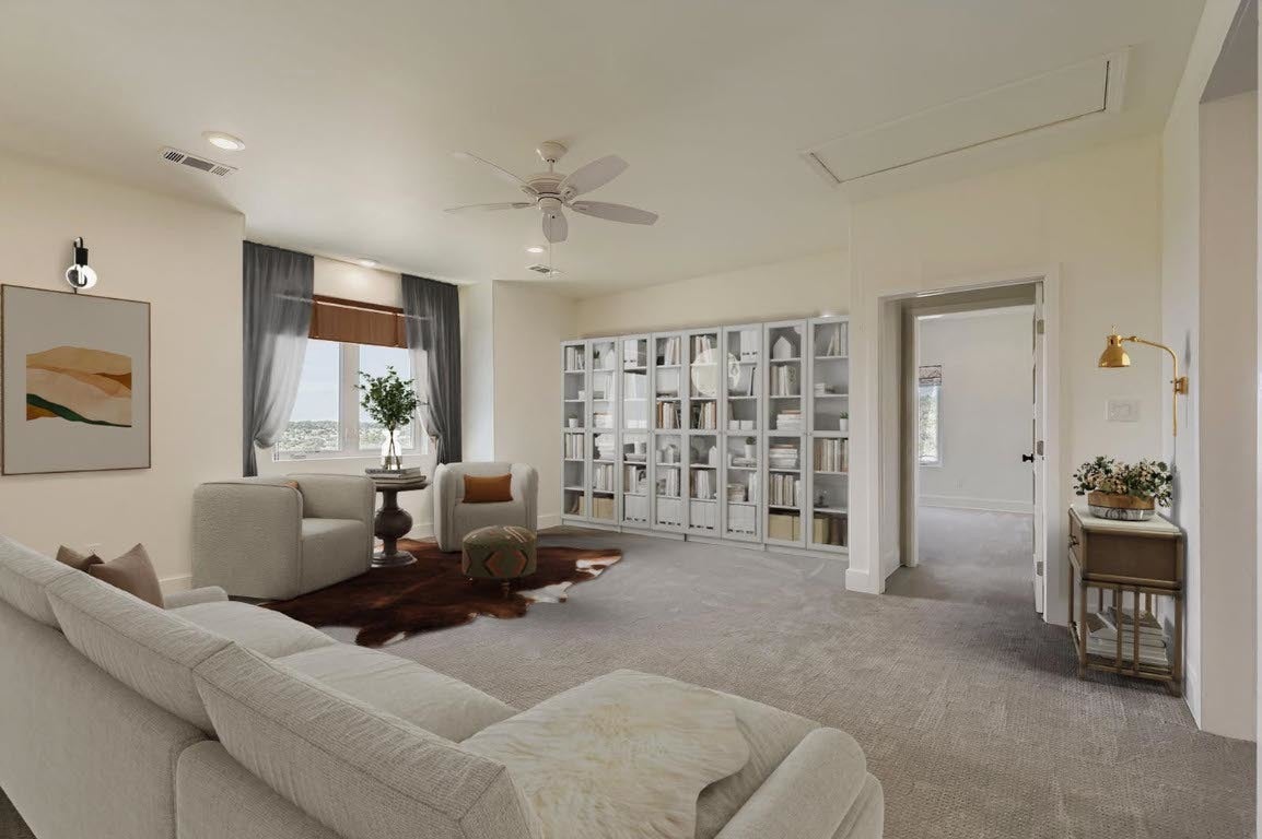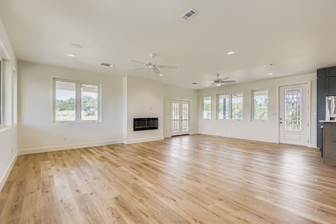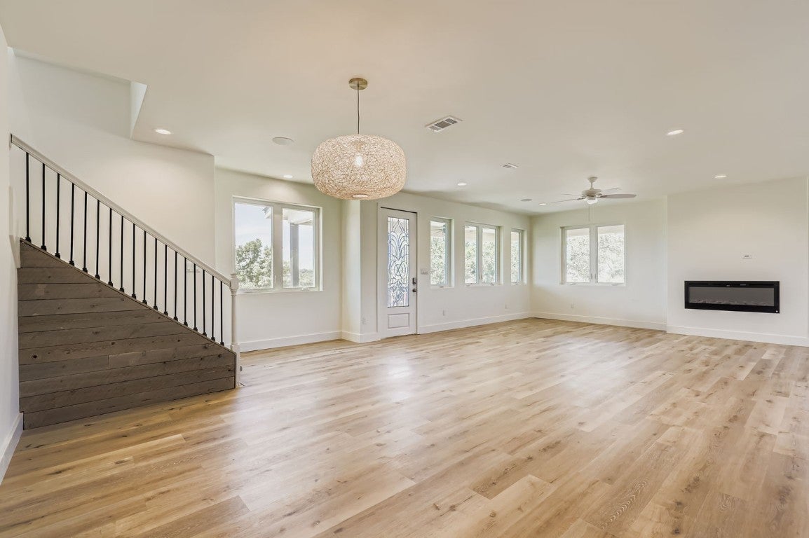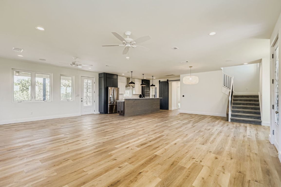 Perched atop a scenic hill in the heart of the Texas Hill Country, this stunning 4-bedroom, 3-bathroom farmhouse offers the perfect blend of rustic charm and modern comfort. Set on 8 acres of natural wooded beauty, the property provides unparalleled privacy, breathtaking views, and endless opportunities to enjoy the great outdoors. Step inside to find an open-concept floorplan bathed in natural light, ideal for both everyday living and entertaining. The spacious kitchen is a chef’s dream, featuring stainless steel appliances, a generous center island, and a walk-in butler’s pantry for added storage and prep space. The thoughtfully designed layout includes a private downstairs mother-in-law suite with a full bathroom. It’s fully handicapped accessible, offering comfort and independence for multi-generational living or guests. Upstairs, you’ll find three additional bedrooms, two full bathrooms, and a versatile loft area perfect for a home office, game room, or additional lounge space. Enjoy tranquil mornings and starlit evenings on the wraparound porch, surrounded by native trees and Hill Country wildlife. Whether you’re looking for a peaceful retreat or a forever family home, this unique property combines space, style, and serenity in one exceptional package.