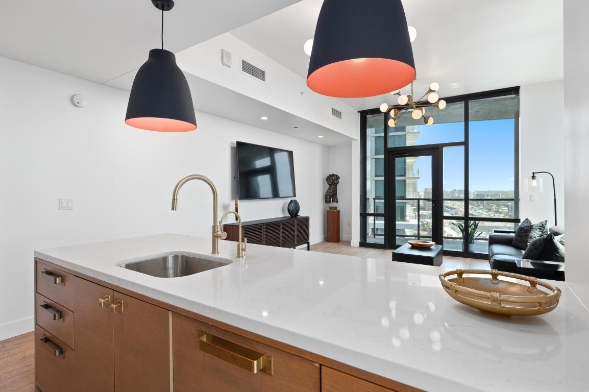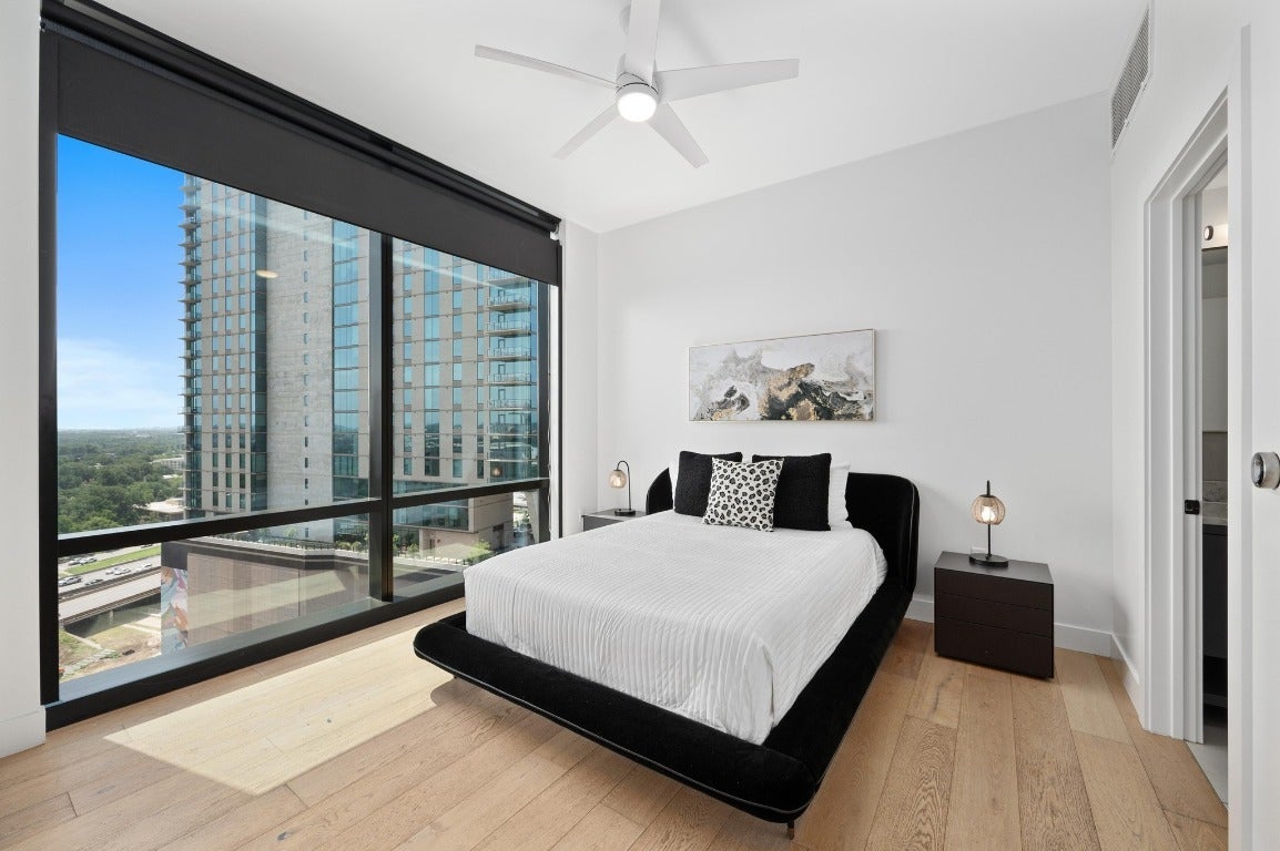 Luxury living, panoramic views, and the vibrant energy of Austin’s Rainey Street district right outside your front door—that’s what you’ll find in this stunning 2-bedroom, 2-bathroom residence at 70 Rainey, one of downtown Austin’s most desirable condo communities. This state-of-the-art unit is move-in ready and available furnished, featuring top-of-the-line finishes and appliances, custom pendant lighting in the living room, blackout power shades in the main bedroom, a private terrace, refrigerator, washer and dryer, and a reserved parking spot. 70 Rainey is incredibly dog-friendly and offers world-class amenities including a 24/7 concierge, fully equipped fitness center, clubhouse, 72-foot infinity pool with hot tub and cabanas, movie theater, yoga sun deck, outdoor green space, and even a fenced dog park. Live in the heart of it all, just steps from dining, shopping, and the Lady Bird Lake Hike and Bike Trail. This is downtown Austin living at its finest.