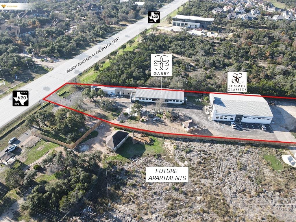 Gold Tier Real Estate is thrilled to present 9900 RR 620, a FOR SALE or FOR LEASE opportunity in Austin’s thriving commercial corridor. This property features two modern retail buildings, totaling 14,085 square feet on 1.292 acres, fully renovated in 2021 with high-end finishes. Buyers are required to purchase both buildings, while tenants have the flexibility to lease one or both buildings. Strategically located with direct access and prominent signage on RR 620, the property benefits from high visibility and substantial traffic. Situated in the Austin ETJ, it offers versatile zoning for diverse tenant uses. The current occupant, Gabby & Summer Classics, a luxury furniture retailer, will vacate in January 2026. Adjacent to the site, an under construction Class A mid-rise apartment complex promises a steady customer base for future retailers, enhancing the property’s long-term value. Located in an affluent area with high median income, this property is ideal for premium businesses seeking a prestigious address. **The broker makes no warranties regarding the property details provided. Prospective purchasers are advised to conduct independent due diligence to verify all information.**